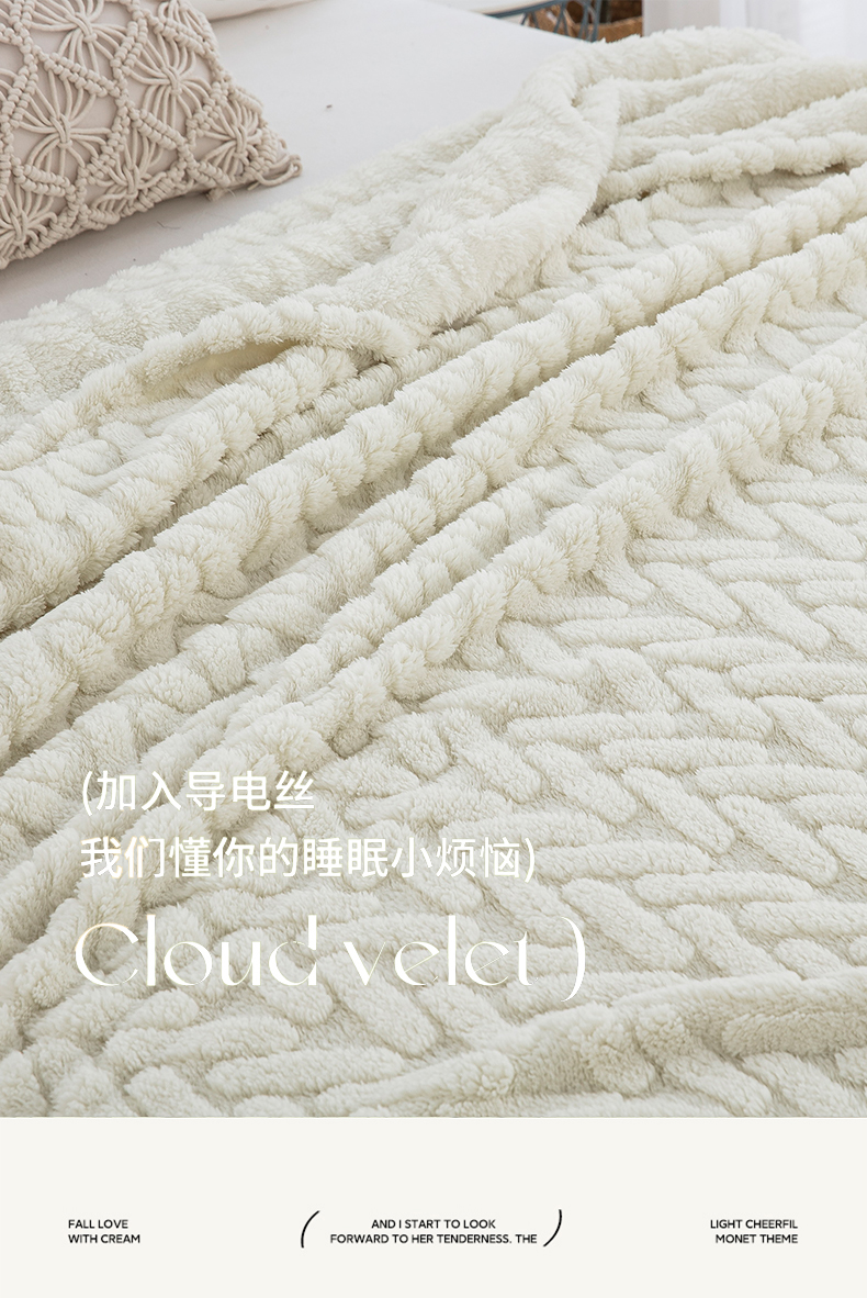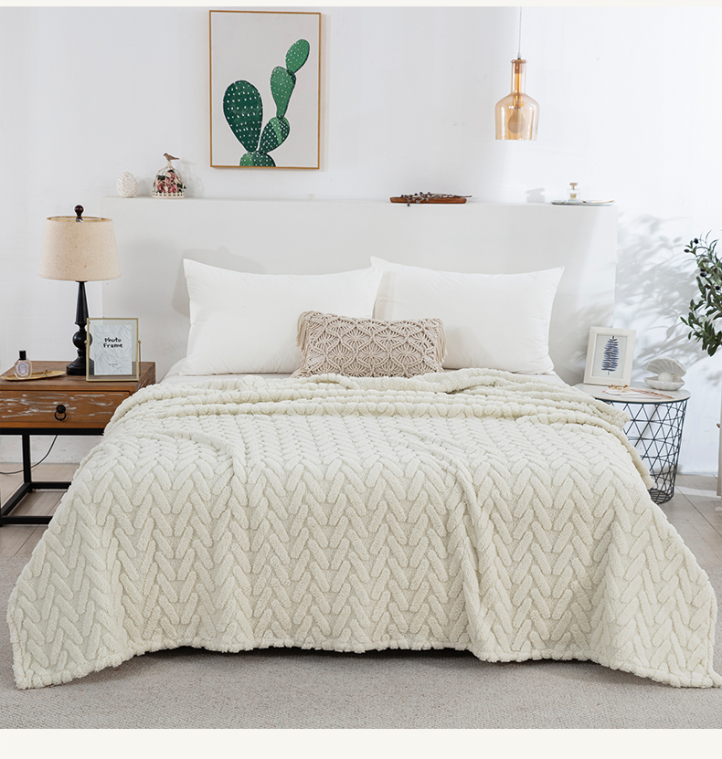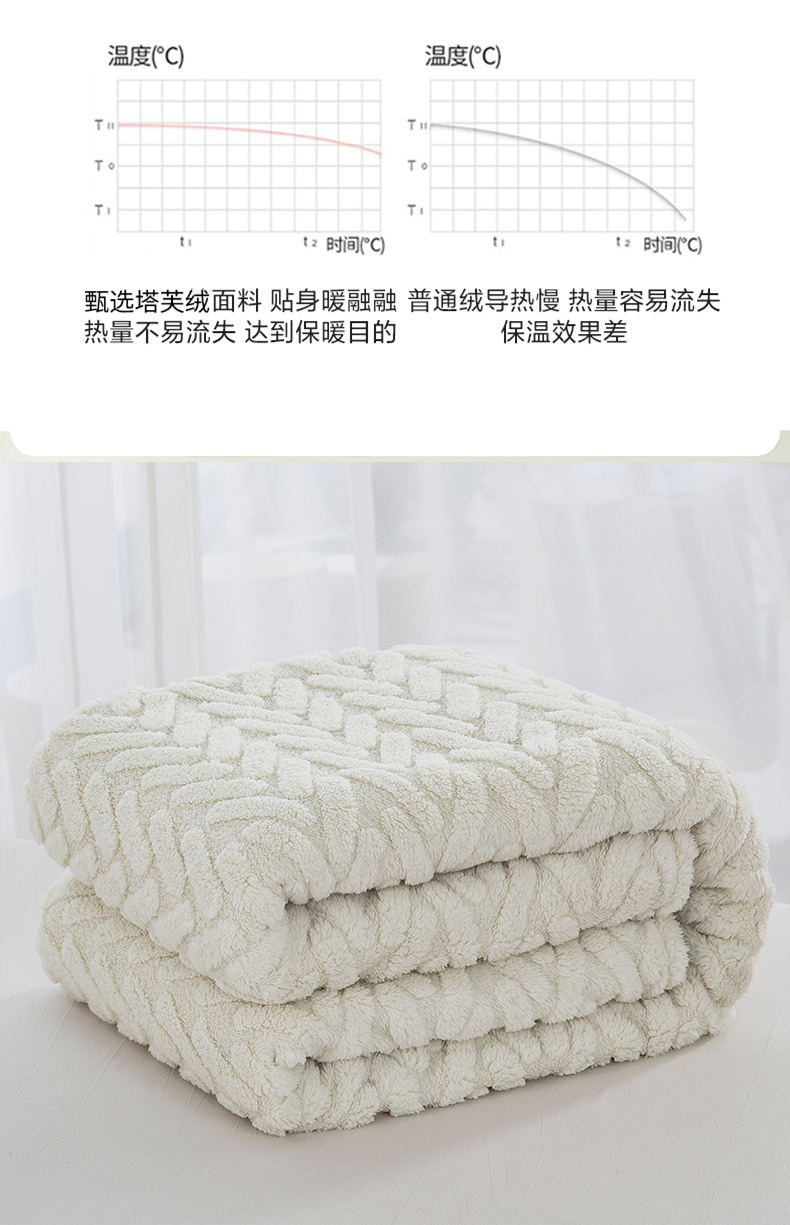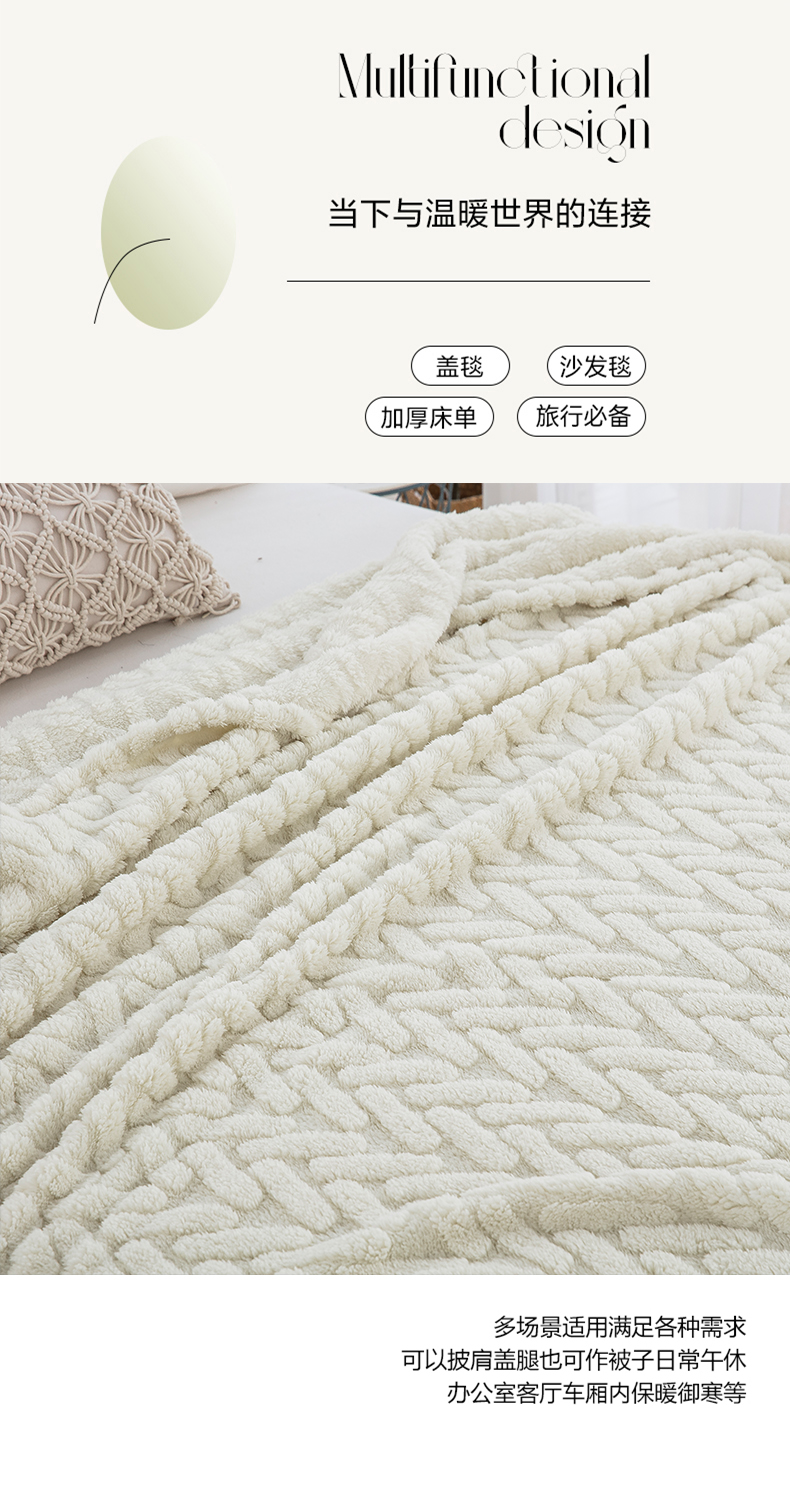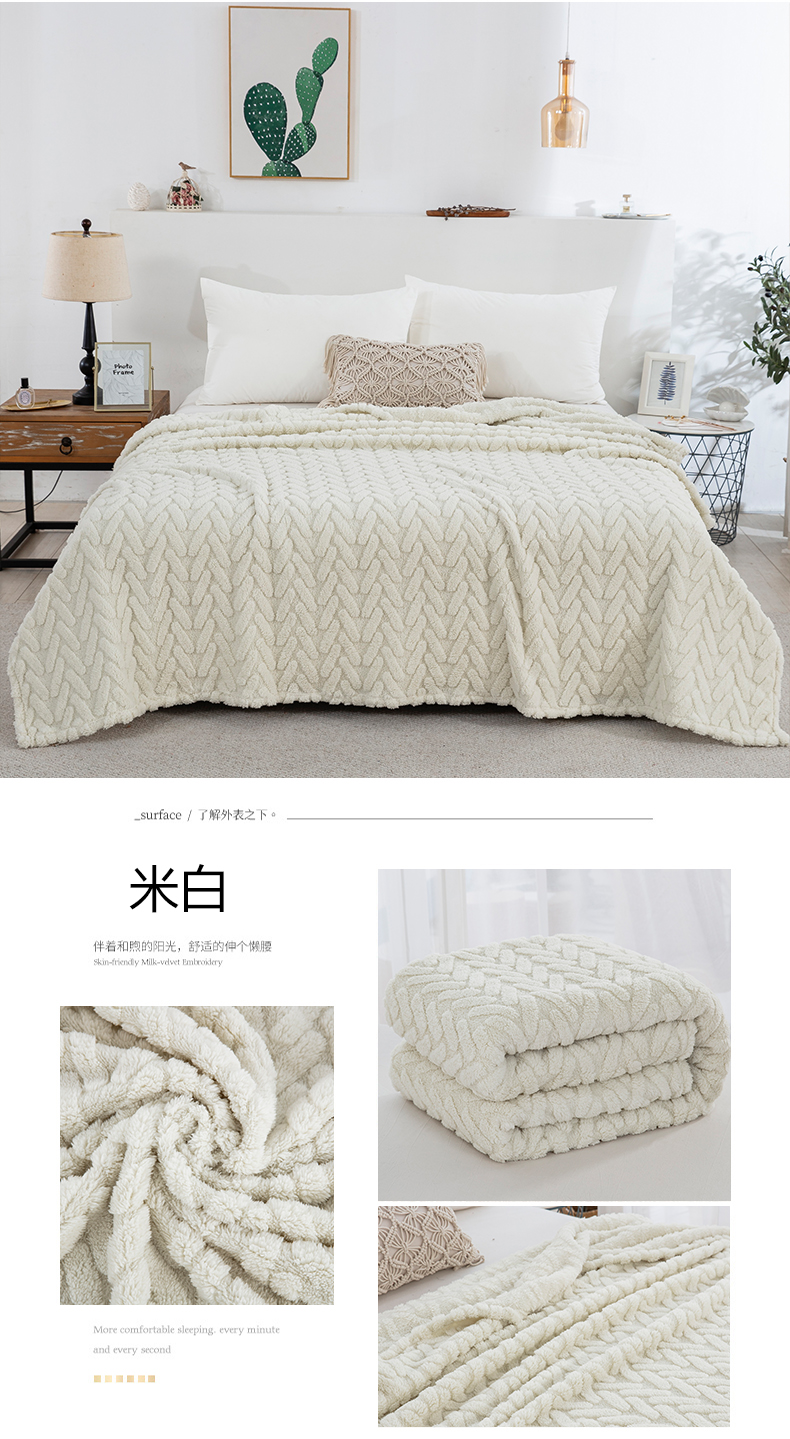 一左一右 2024秋冬新款高克重单层双面提花塔芙绒毛毯舒棉绒毯多功能毯子外贸跨境电商 米白
