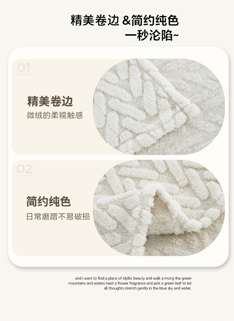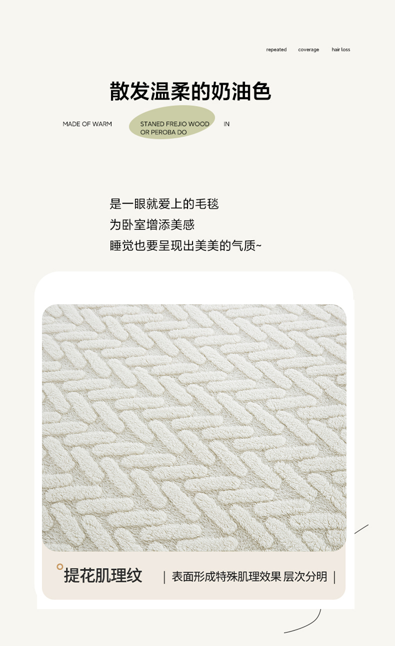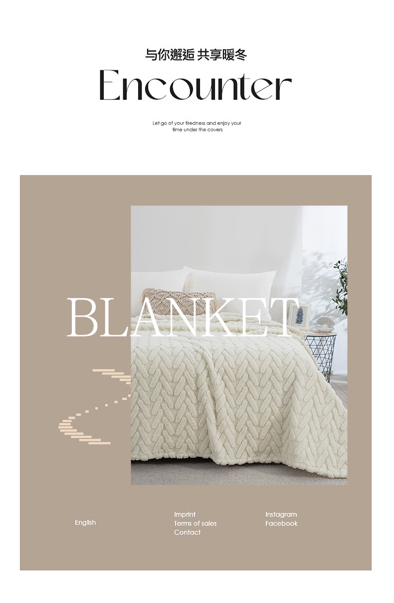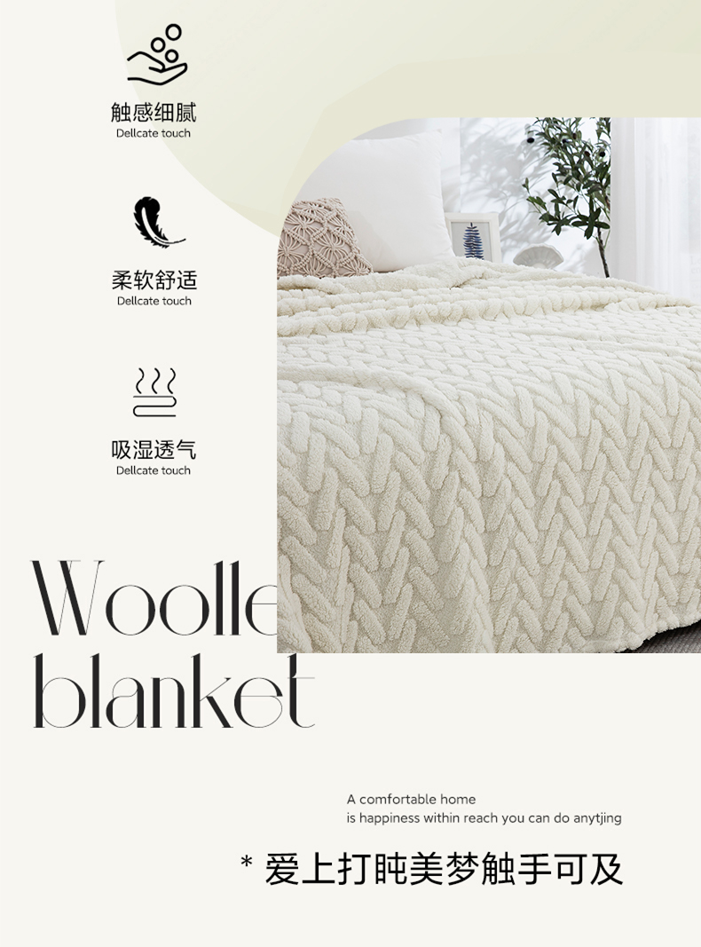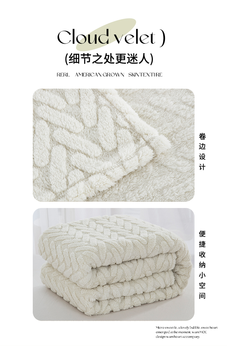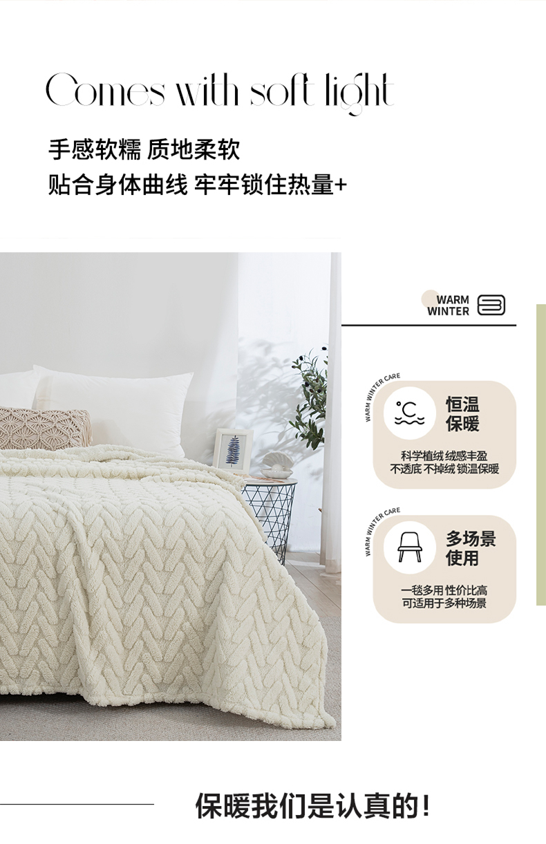 一左一右 2024秋冬新款高克重单层双面提花塔芙绒毛毯舒棉绒毯多功能毯子外贸跨境电商 米白