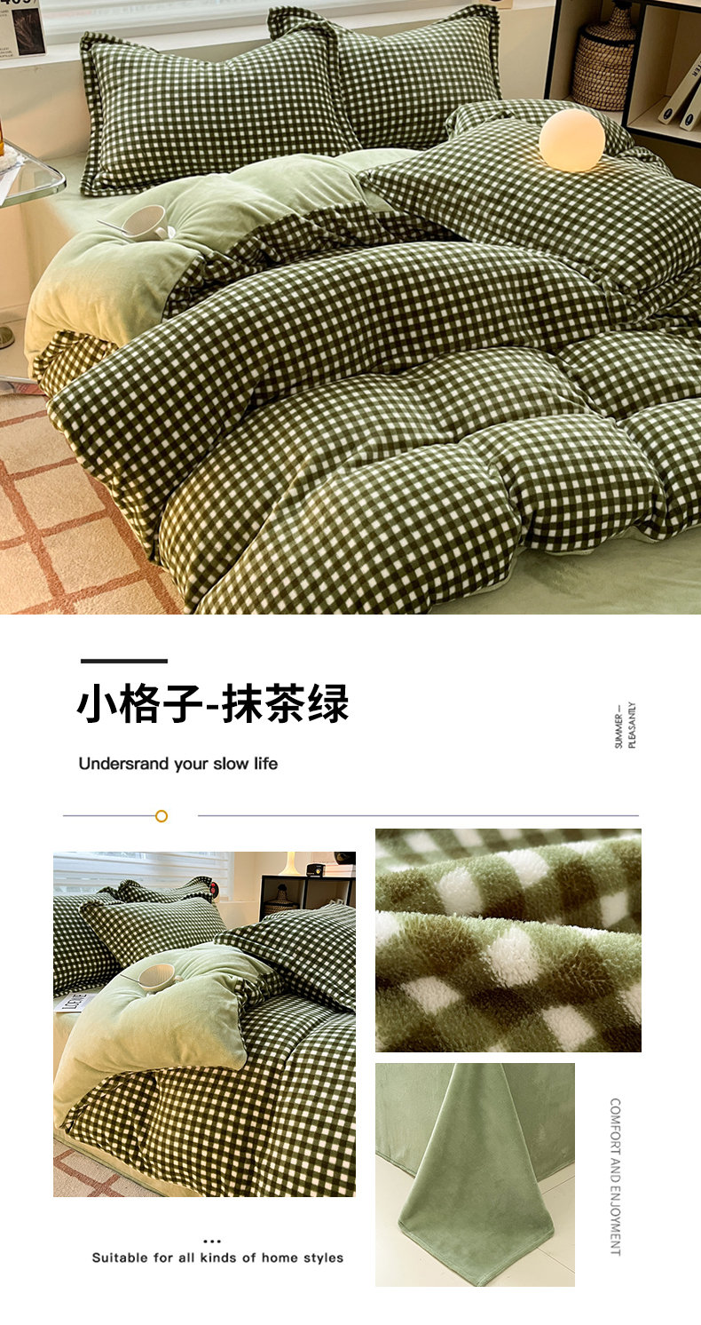 商品名称:启程家纺 2024新款无印风A类牛奶绒四件套 小格子-抹茶绿