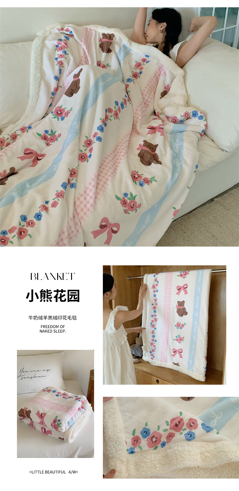 商品名称:桃喜 2024新款亲肤舒适牛奶绒羊羔绒毛毯 小熊花园