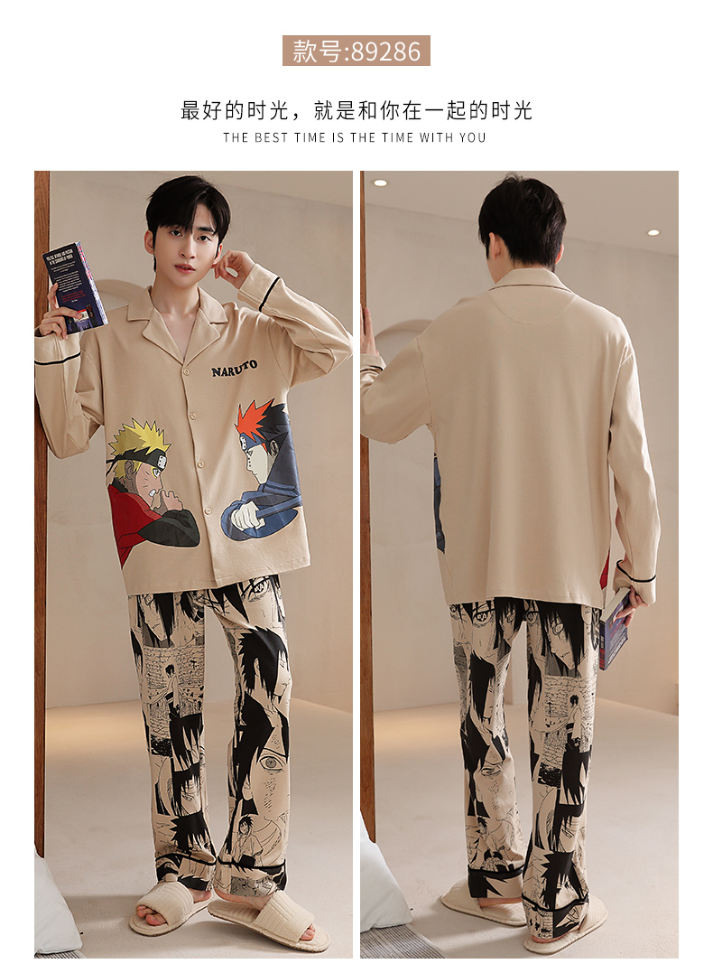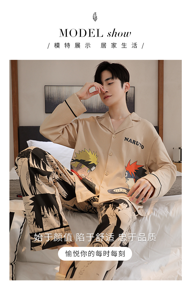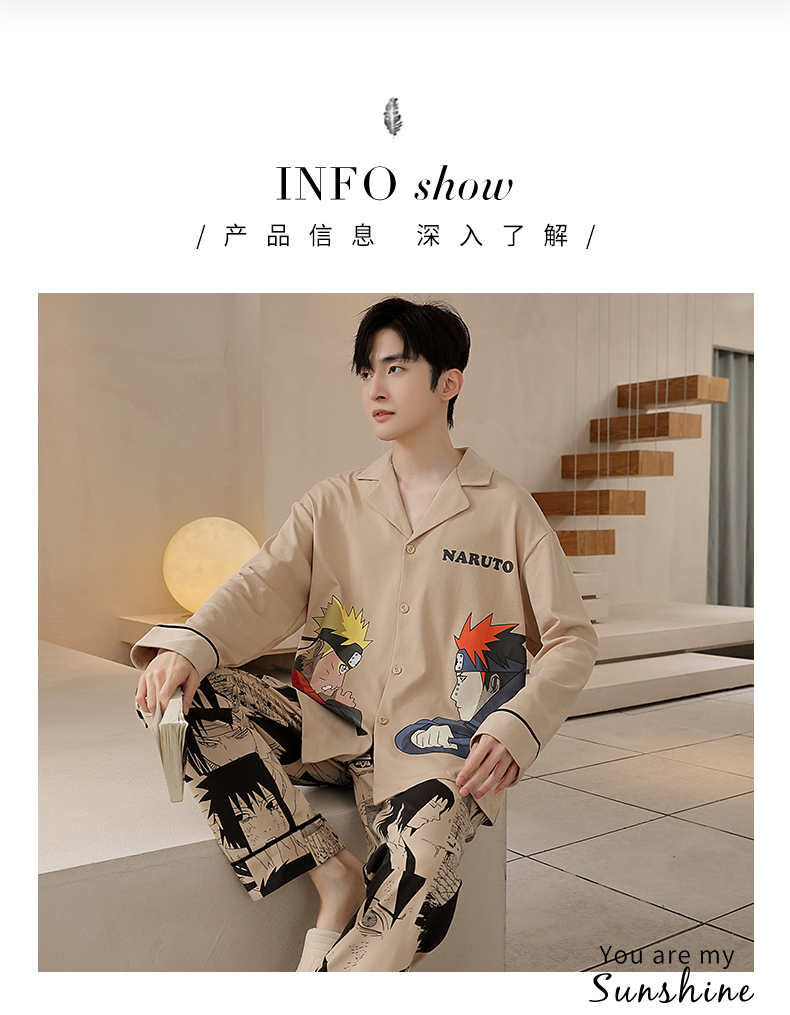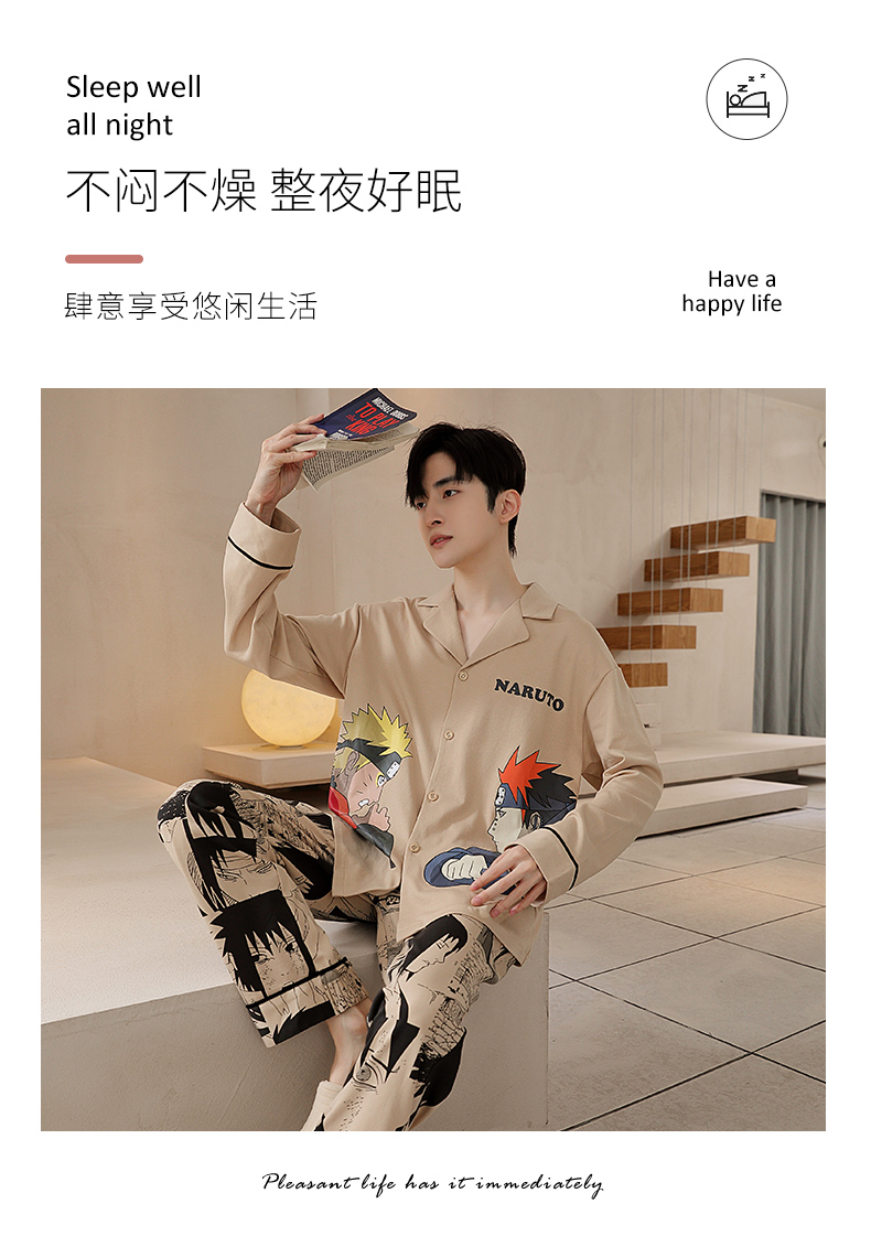 商品名称:春秋季新款纯棉休闲简约睡衣高级质量家居服夏季男士宽松舒适睡衣翻领 89286浅黄