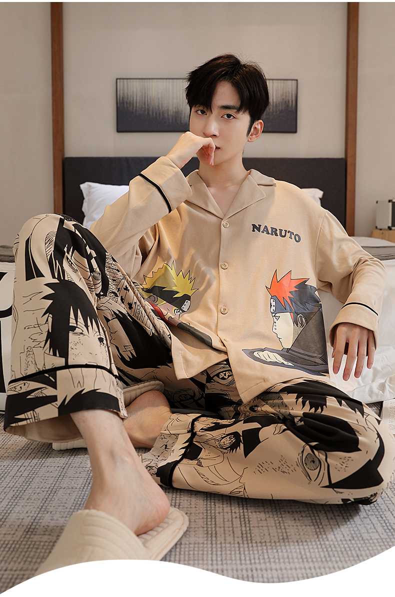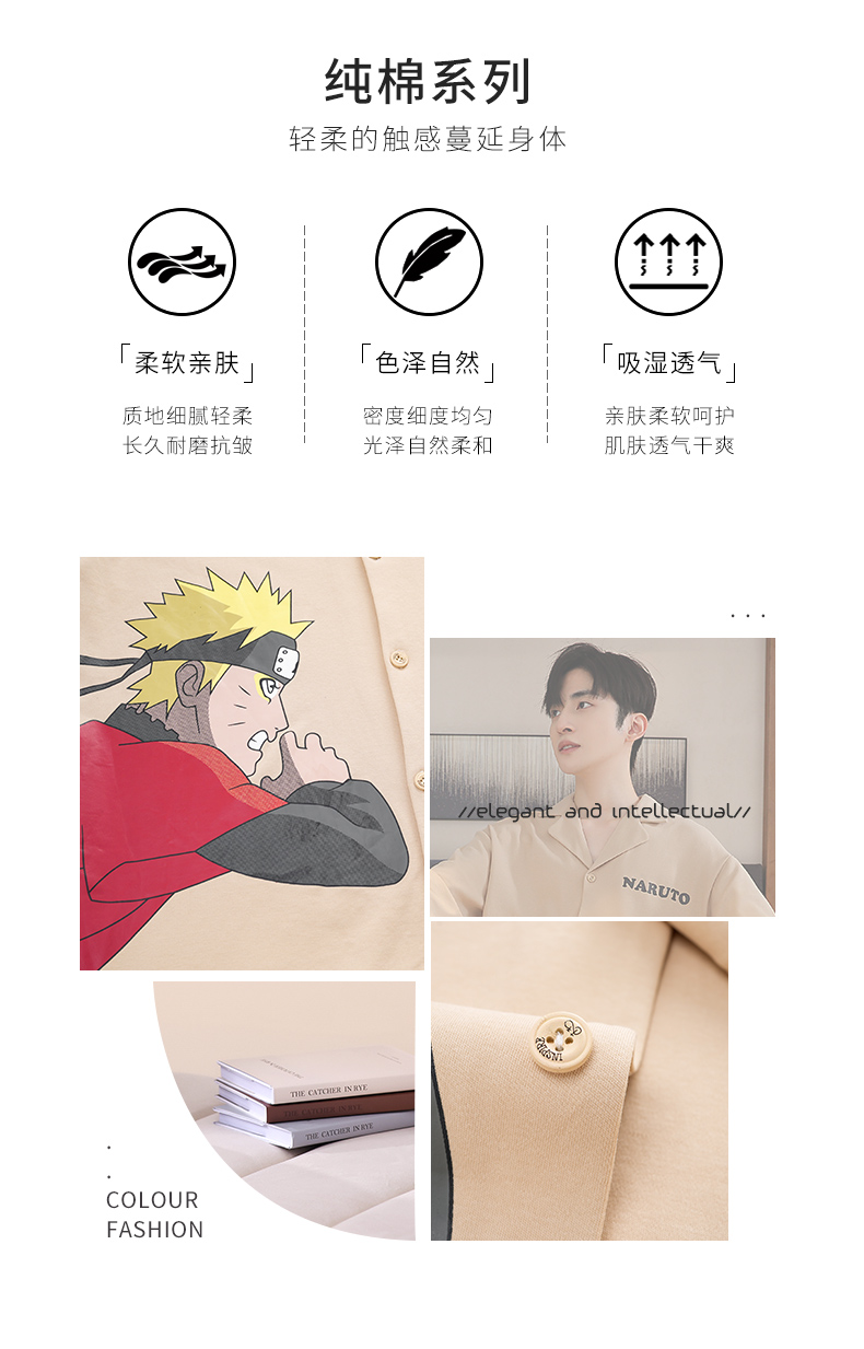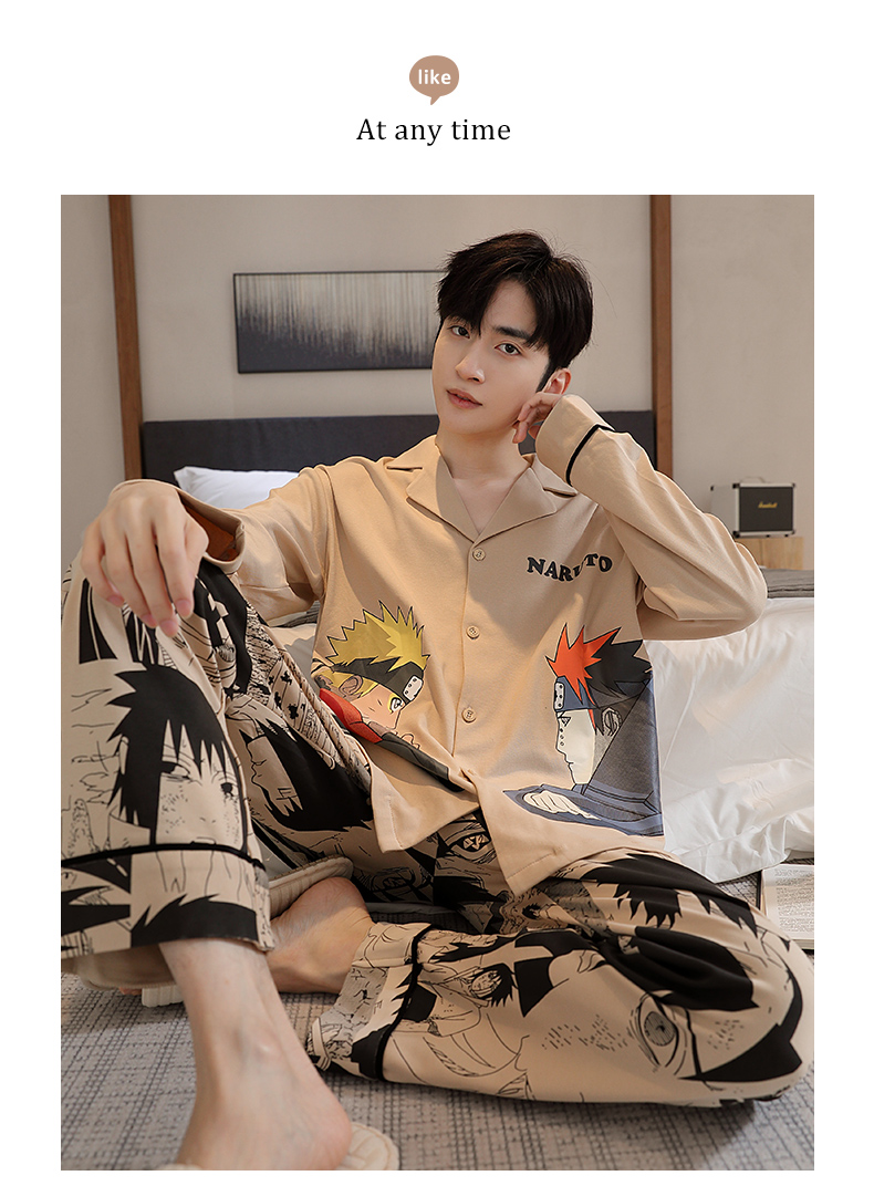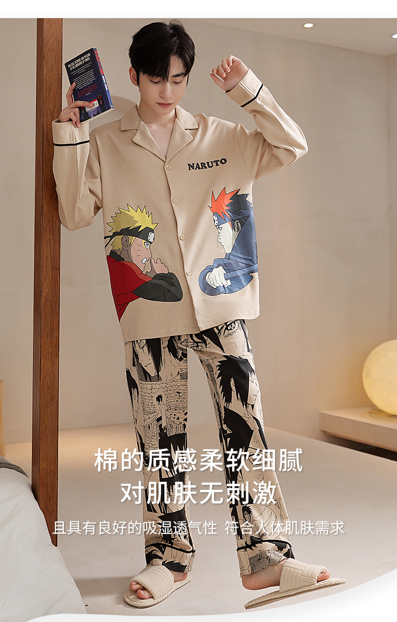 商品名称:春秋季新款纯棉休闲简约睡衣高级质量家居服夏季男士宽松舒适睡衣翻领 89286浅黄