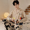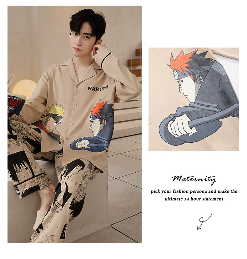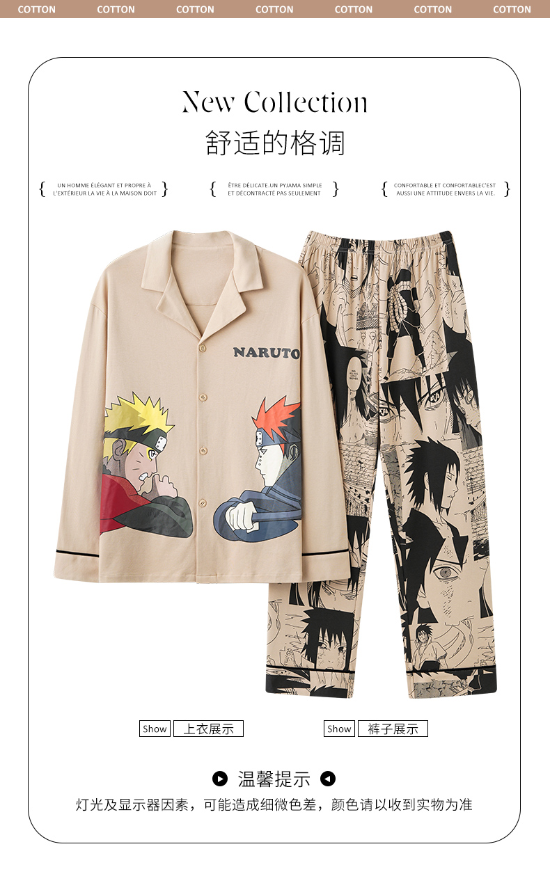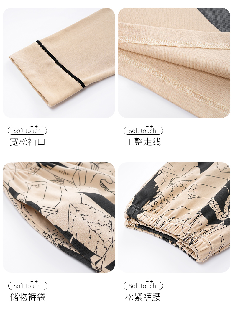 (总)洛兰沙家居馆 2025新款情侣款全棉双层男女家居服简约睡衣套装长袖长裤格子简约风舒适款,男士莫奈花园长袖长裤套装-卡其色,女士莫奈花园长袖长裤套装-卡其色