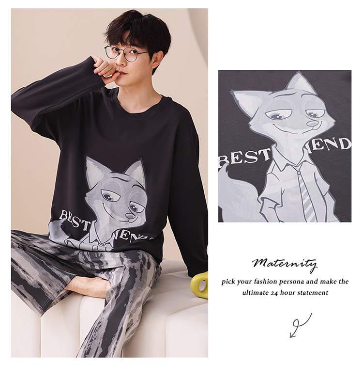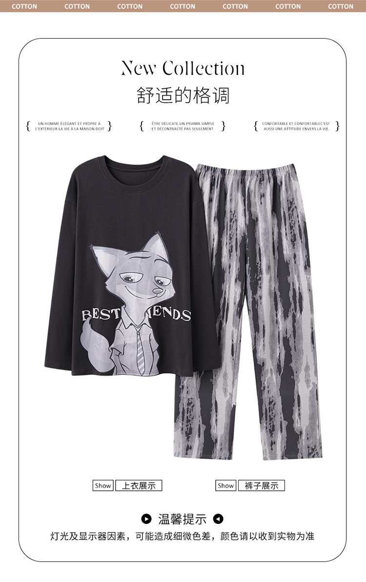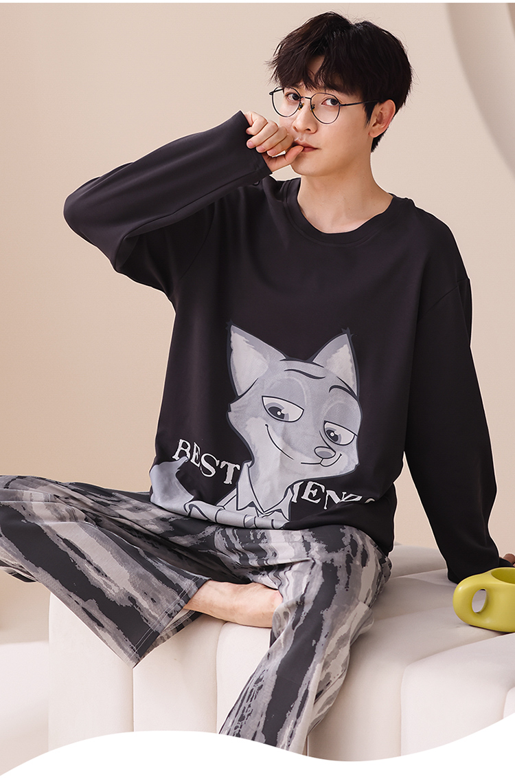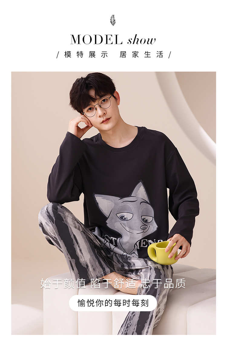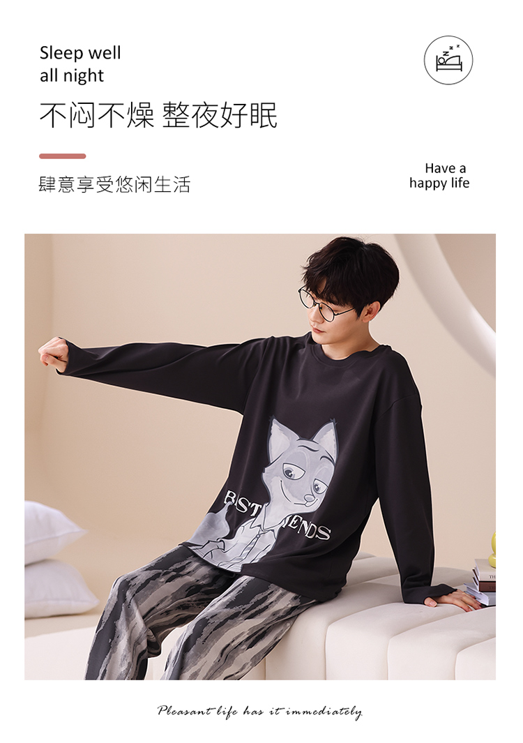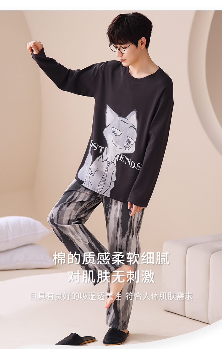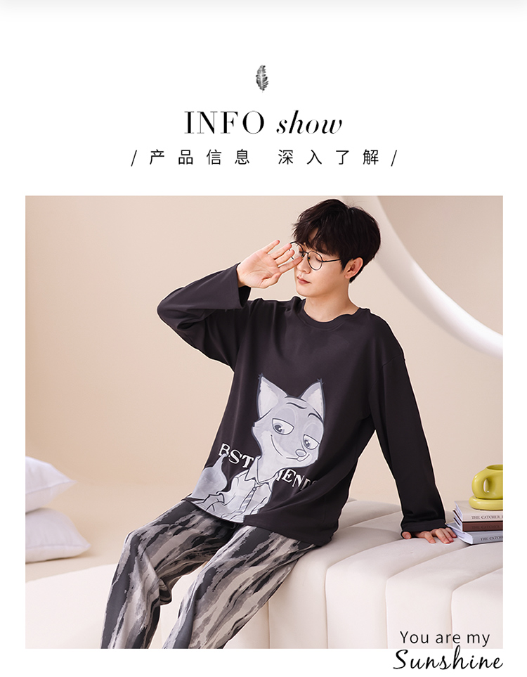 商品名称:春秋季纯棉圆领睡衣男士卡通长袖家居服夏季青少年休闲可外穿套装 666男