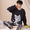 春秋季纯棉圆领睡衣男士卡通长袖家居服夏季青少年休闲可外穿套装 666男