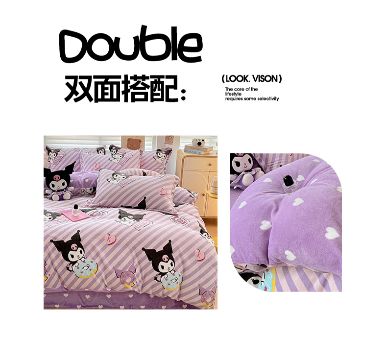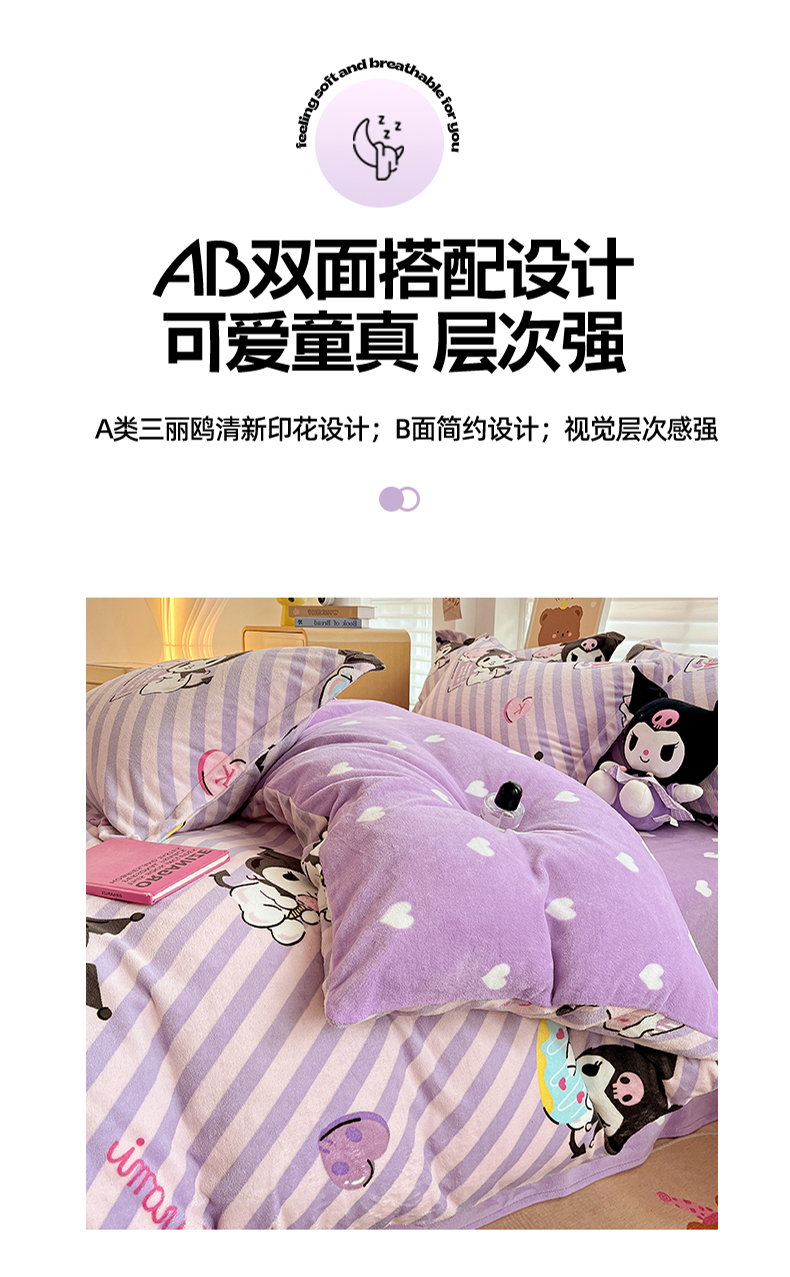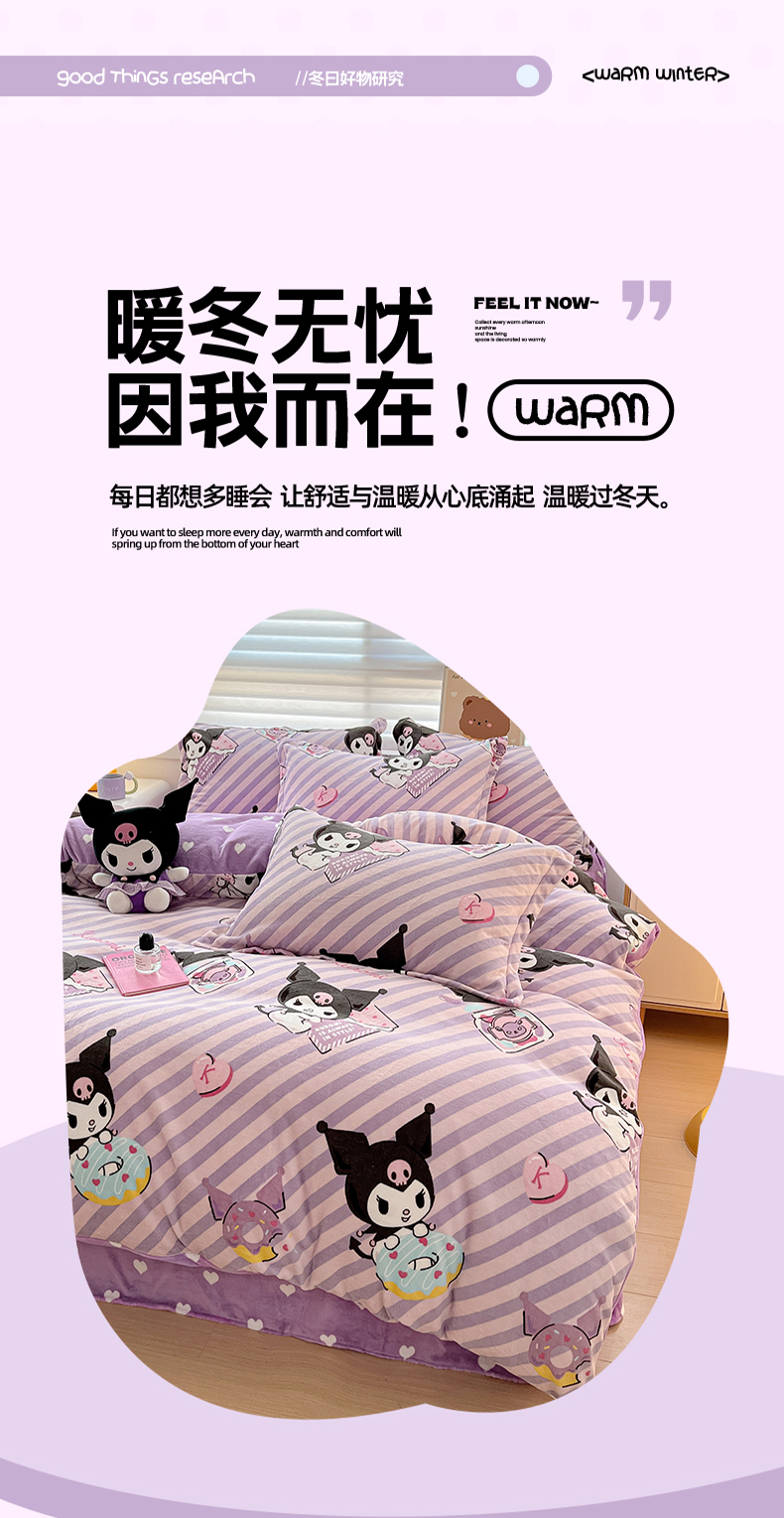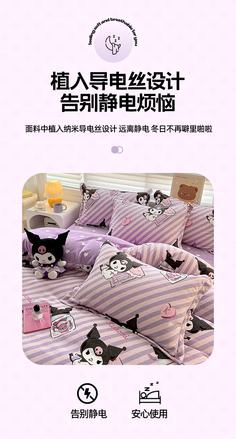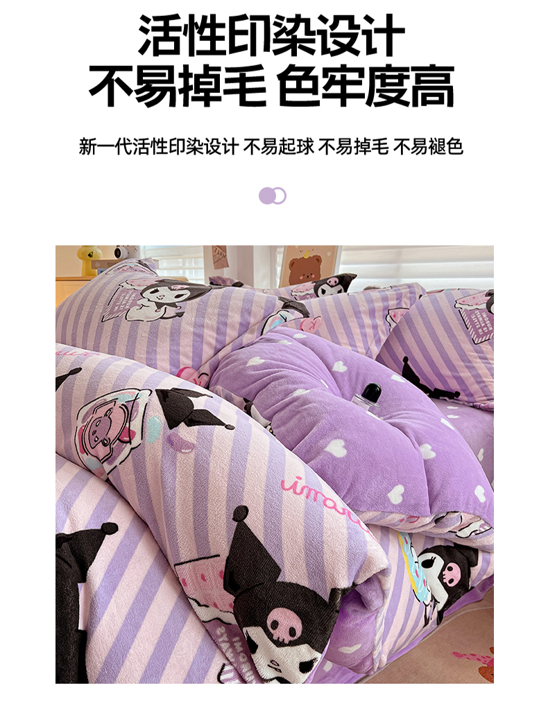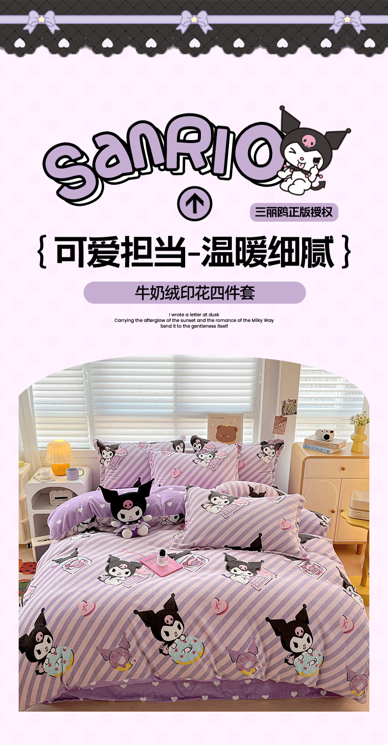当前位置: 91家纺网 > 商品网购 > 床品套件 > 四件套 > 牛奶绒四件套 > KT猫直营店 2024新款三丽鸥库洛米牛奶绒四件套 贪吃库洛米