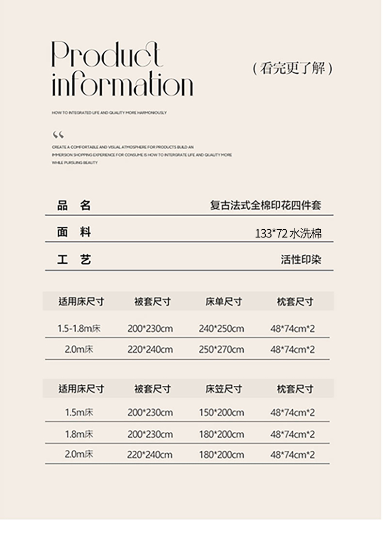 商品名称:FORTWO家纺原创设计(FOR TWO家纺) 2024新款复古法式全棉印花四件套系列 小春野