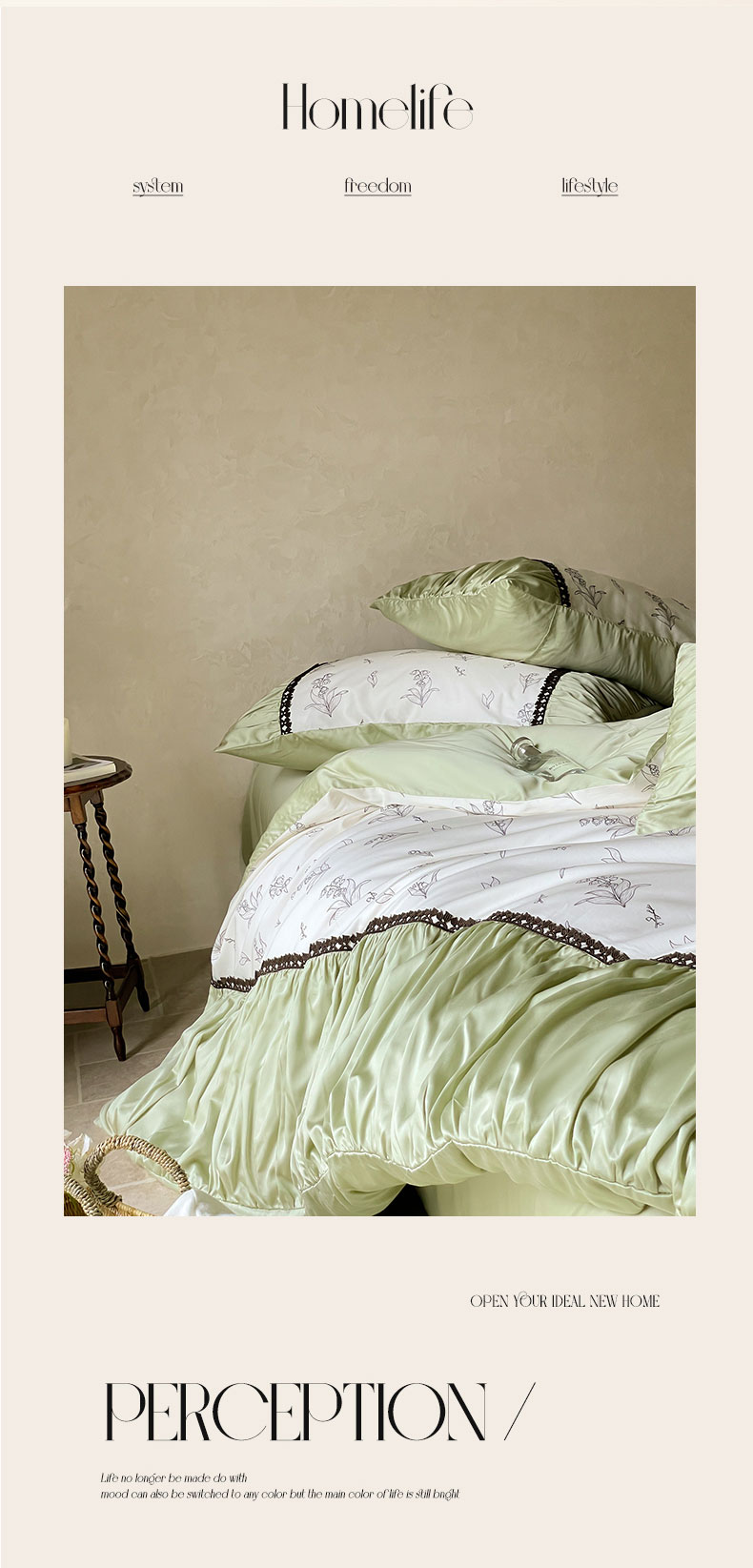 (总)FORTWO家纺原创设计(FOR TWO家纺) 2026新款50长绒棉印花+绣花荷叶大花边系列四件套 会员-20(券前)基础价不低于中号418元,大号458元 床笠加10元,花未眠-粉,花未眠-绿,花未眠-米黄