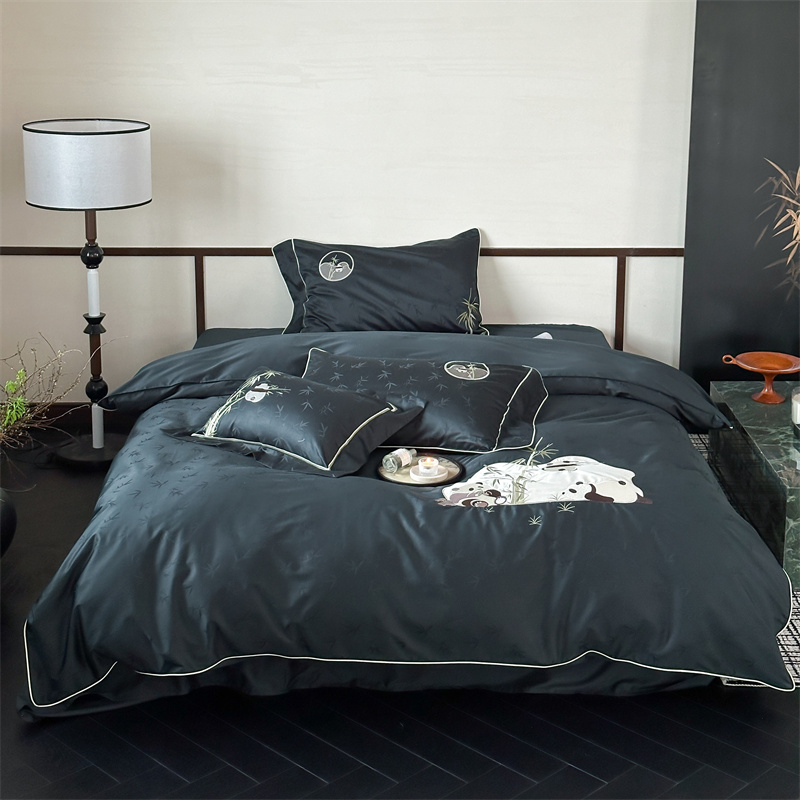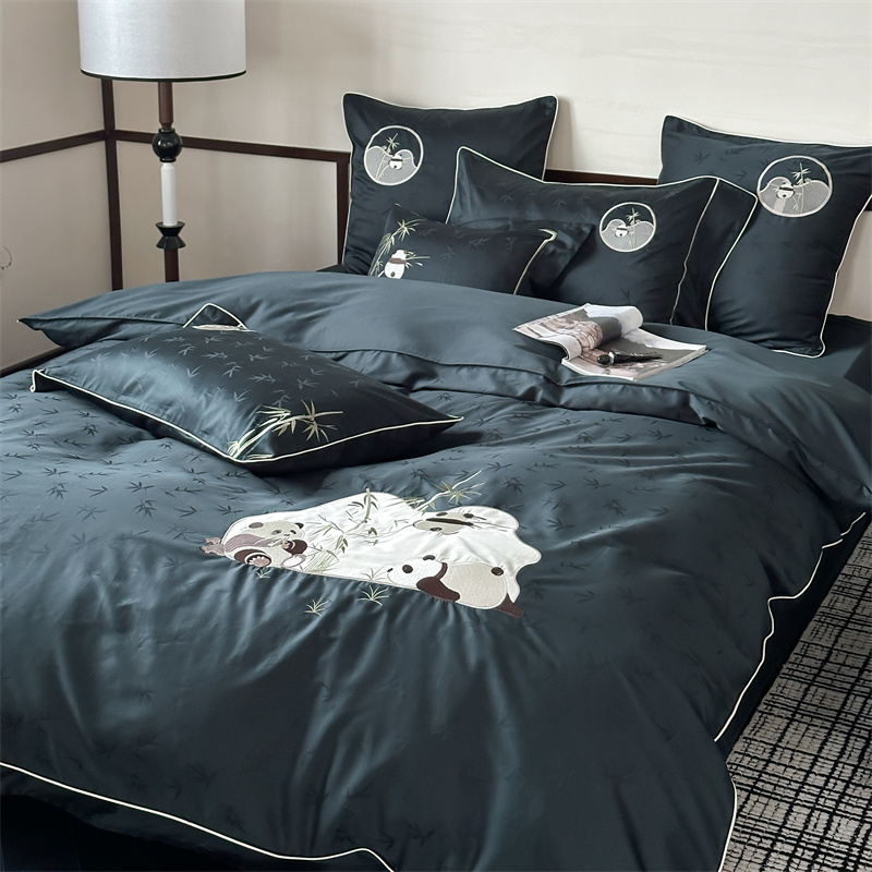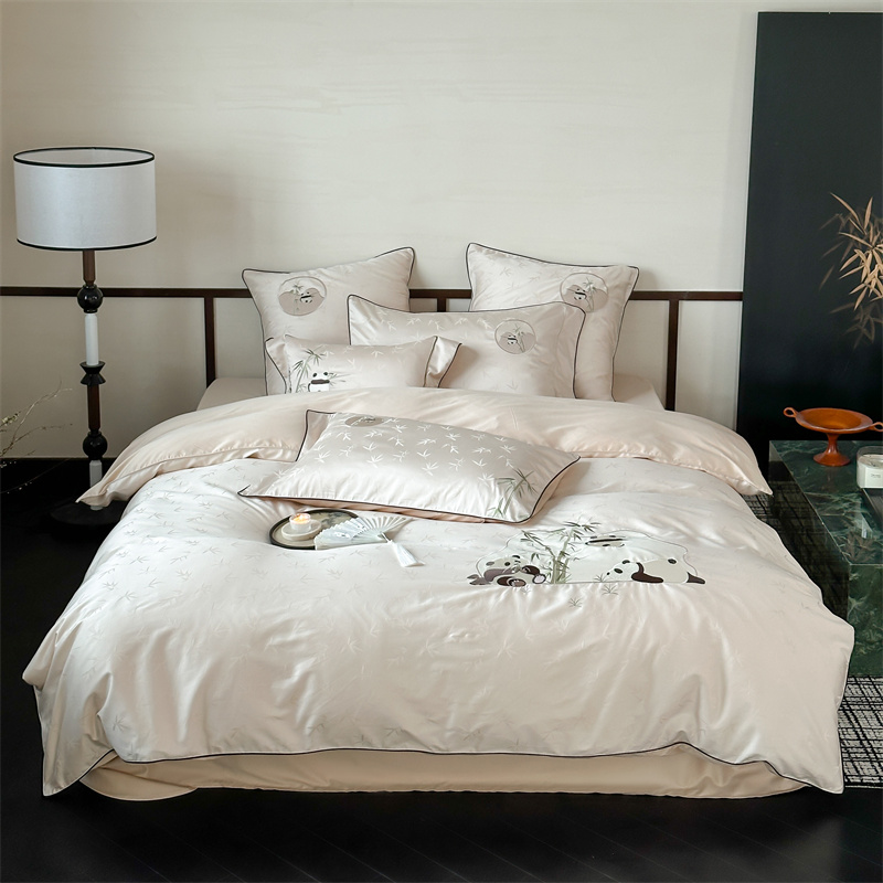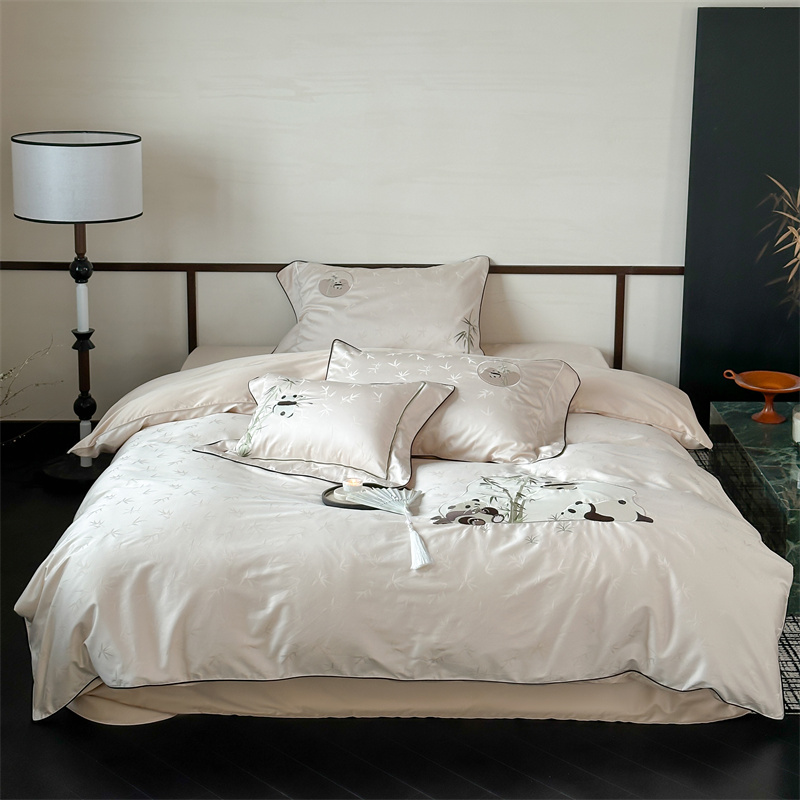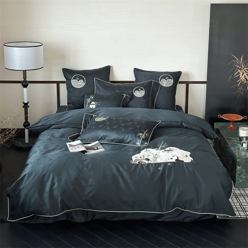 (总)西西家居 2024新款高定国风新中式提花四件套-抱竹熊猫(送含芯抱枕)