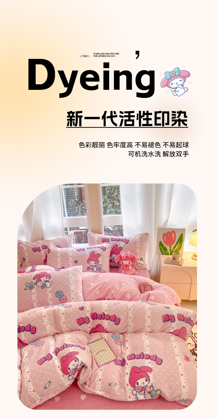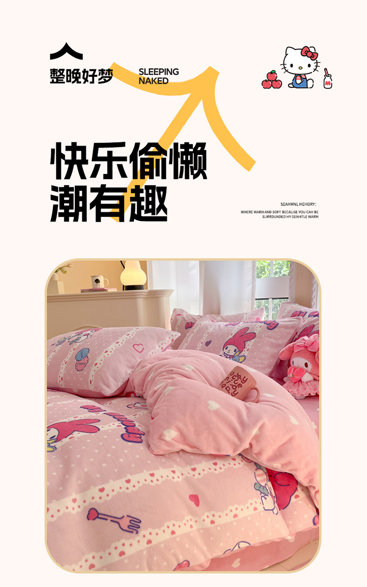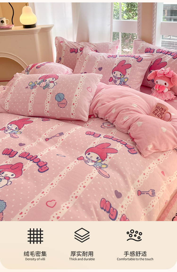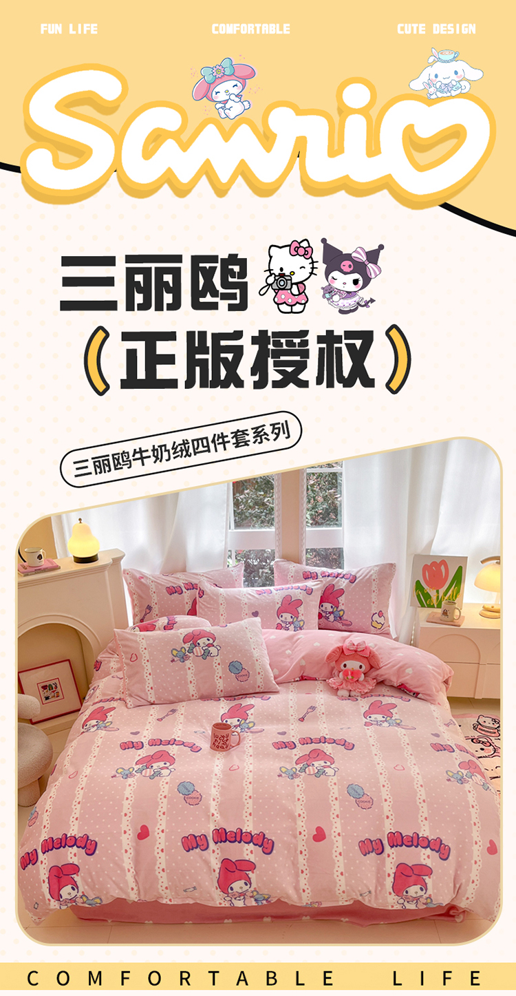 当前位置: 91家纺网 > 商品网购 > 床品套件 > 四件套 > 牛奶绒四件套 > 2024新款三丽鸥牛奶绒小版四件套 牛奶绒小版-贪吃美乐蒂