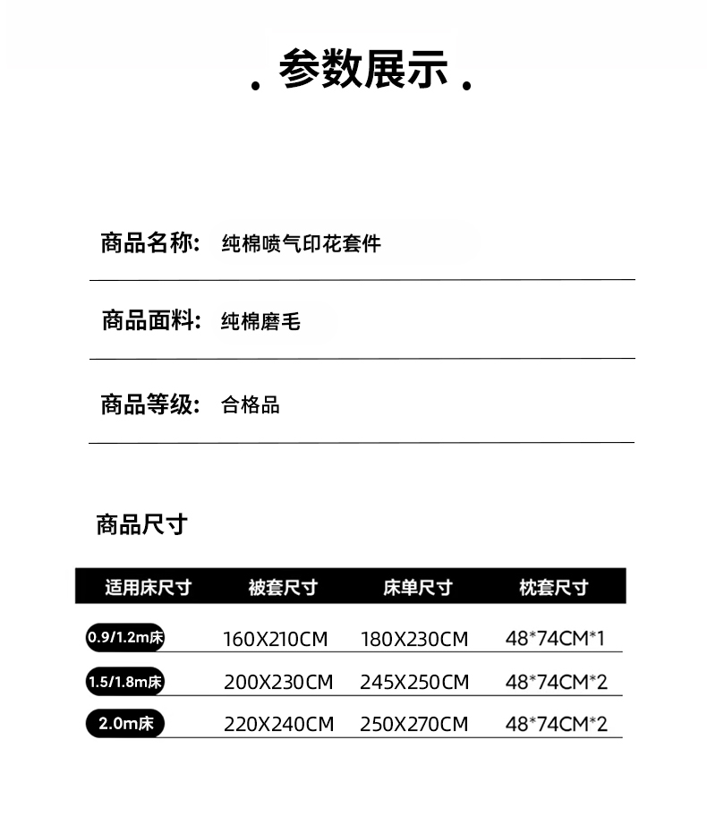 0.9m床笠三件套被套160*210 | ¥78.00 |
