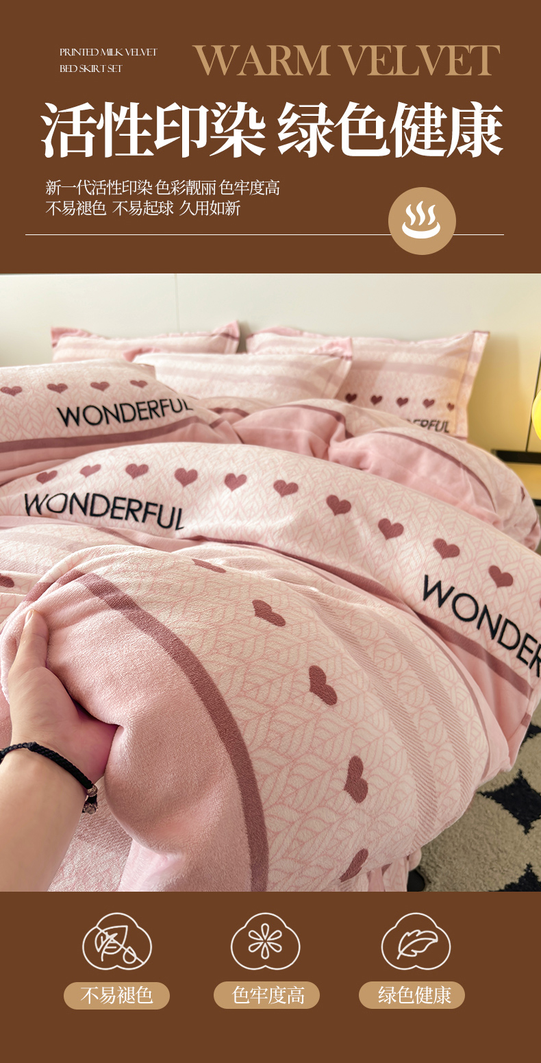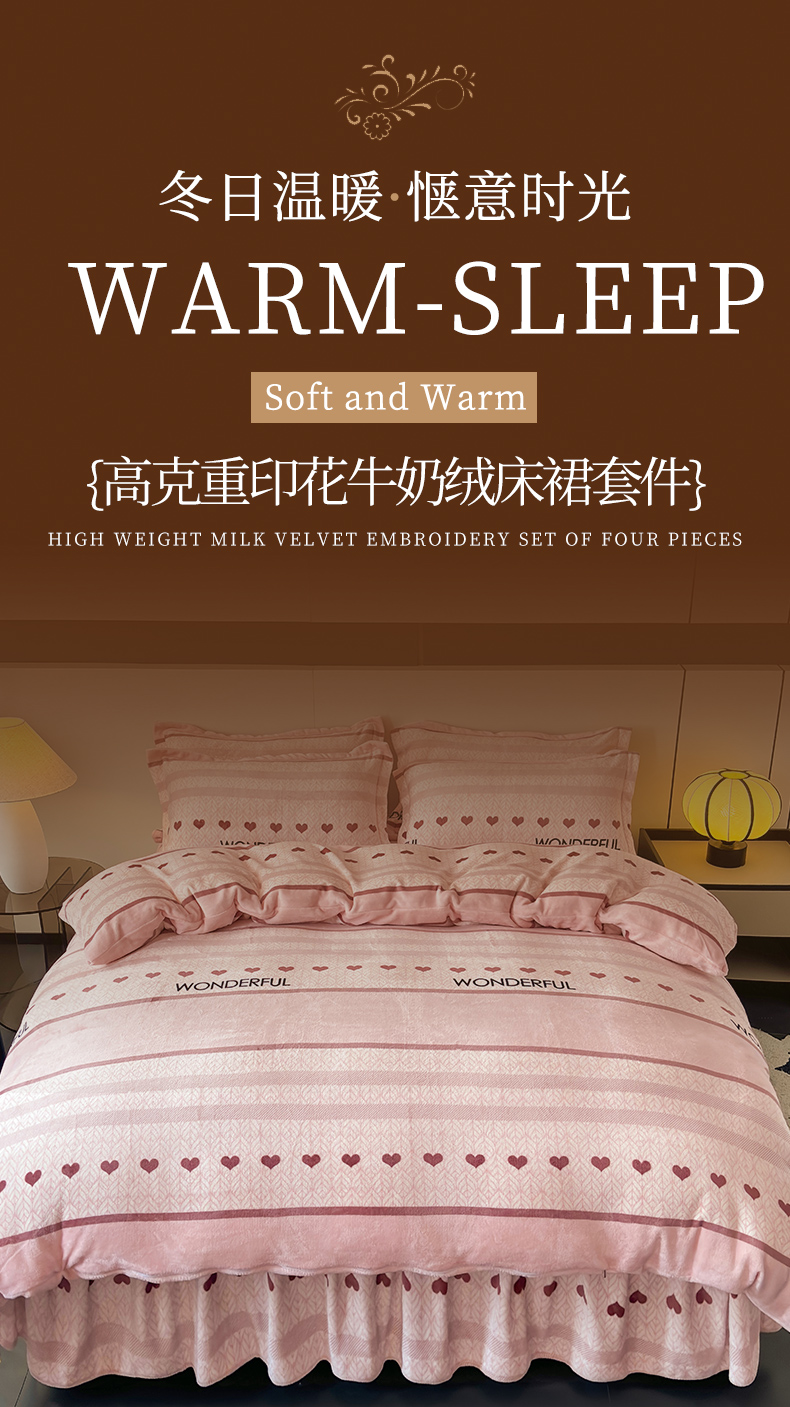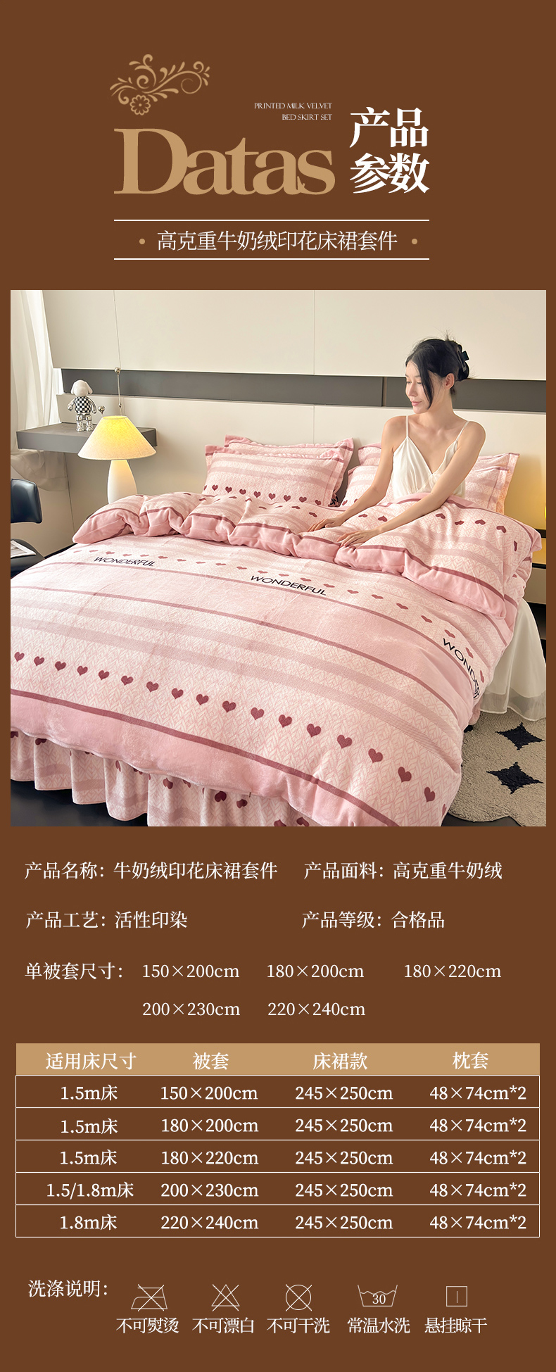 当前位置: 91家纺网 > 商品网购 > 床品套件 > 四件套 > 牛奶绒四件套 > 董韵家纺 2025新款高克重全消光牛奶绒法莱绒金貂绒印花单品被套床裙四件套(提供买家秀)心向往之