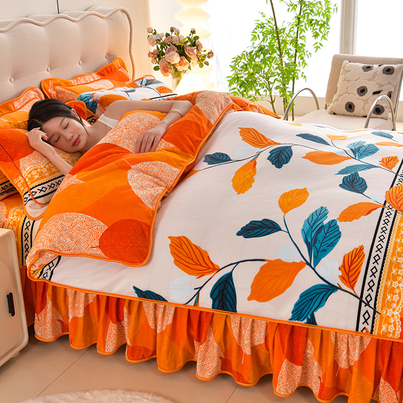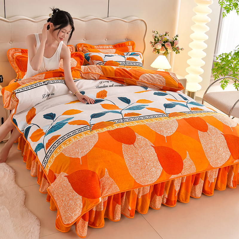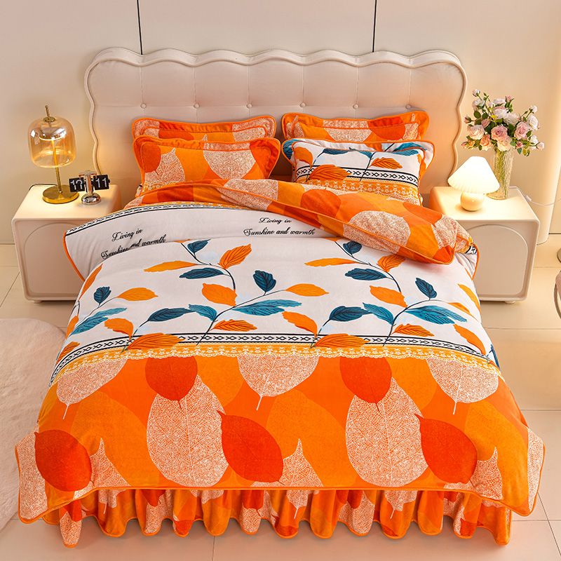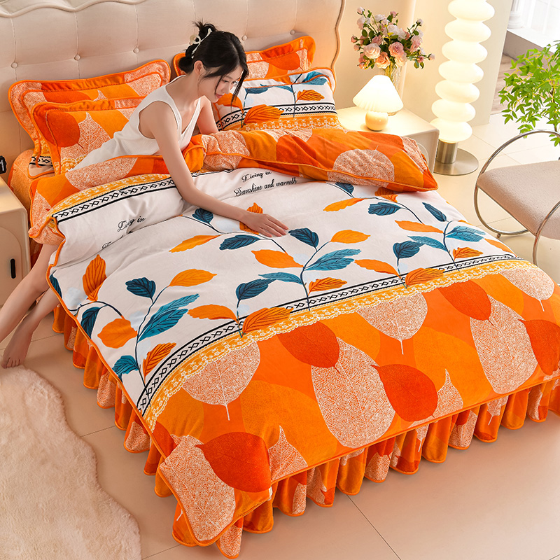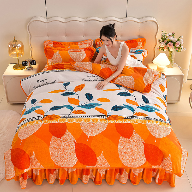 梦莱情纺2024新款8.5斤牛奶绒四件套日产12000套一叶知秋