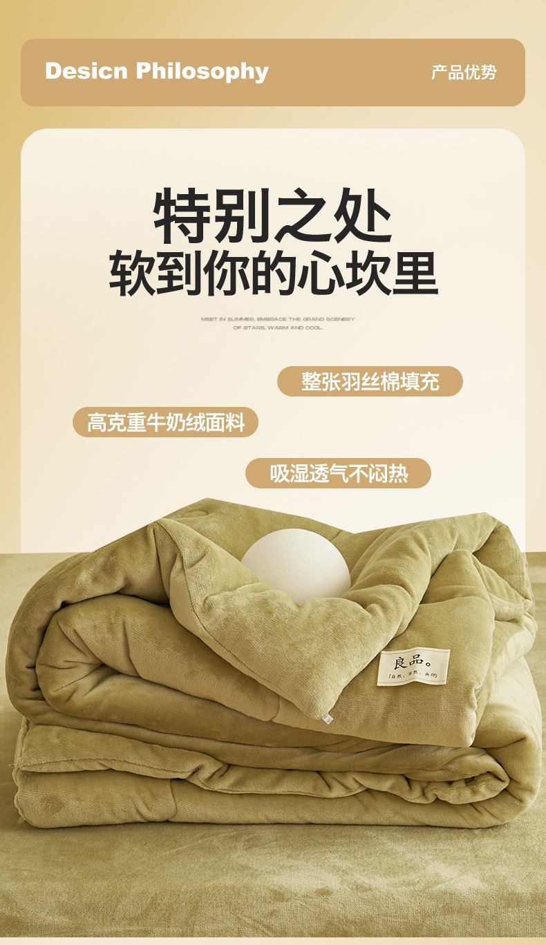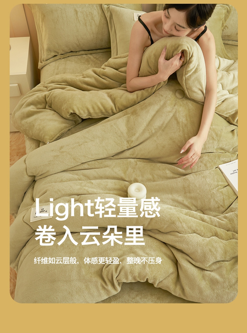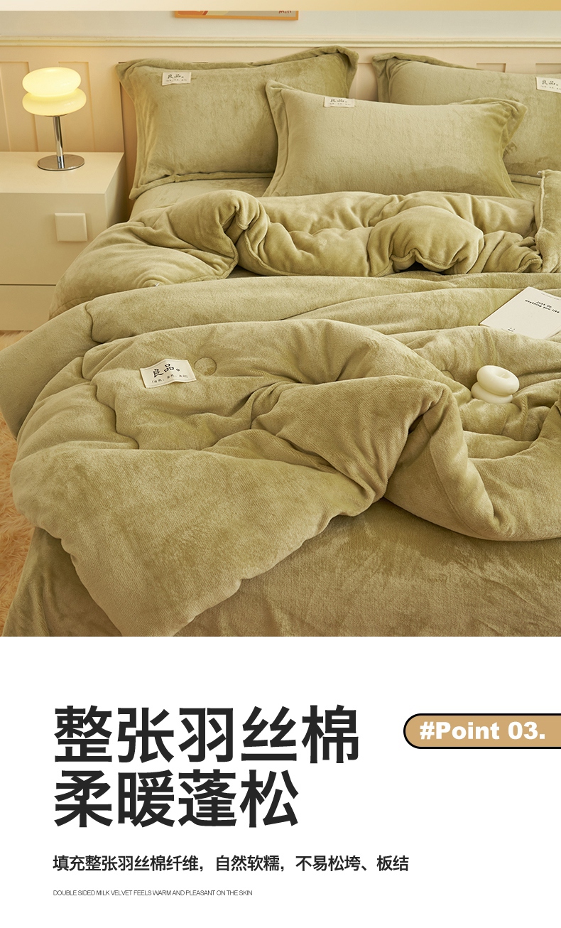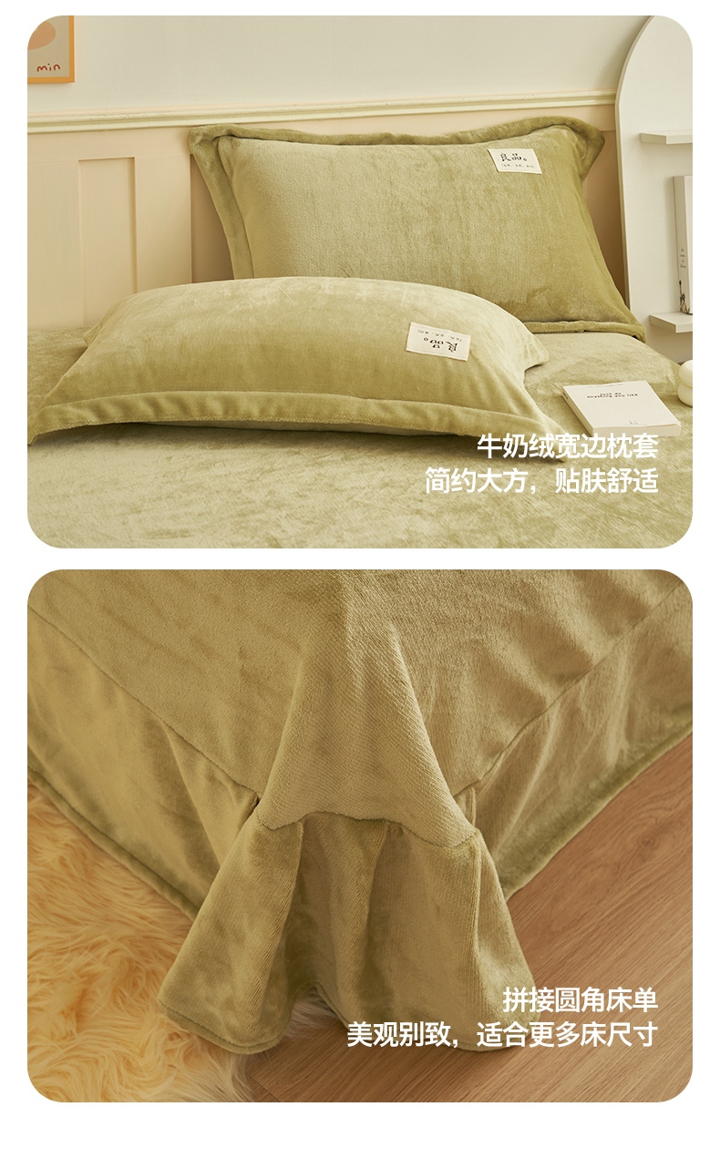 • 91家纺网 家纺一手货源 找家纺 2024新款保暖舒适牛奶绒冬被四件套 果绿