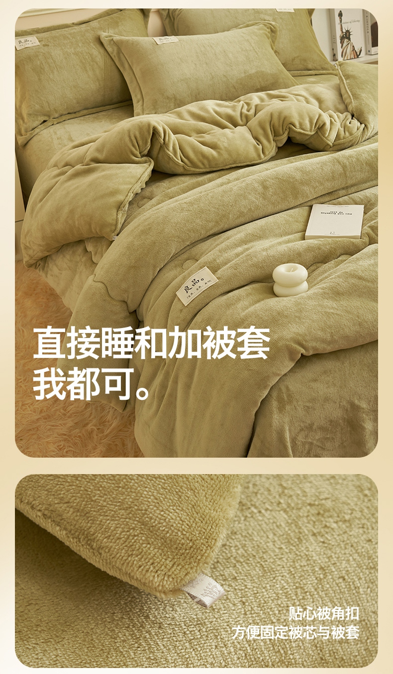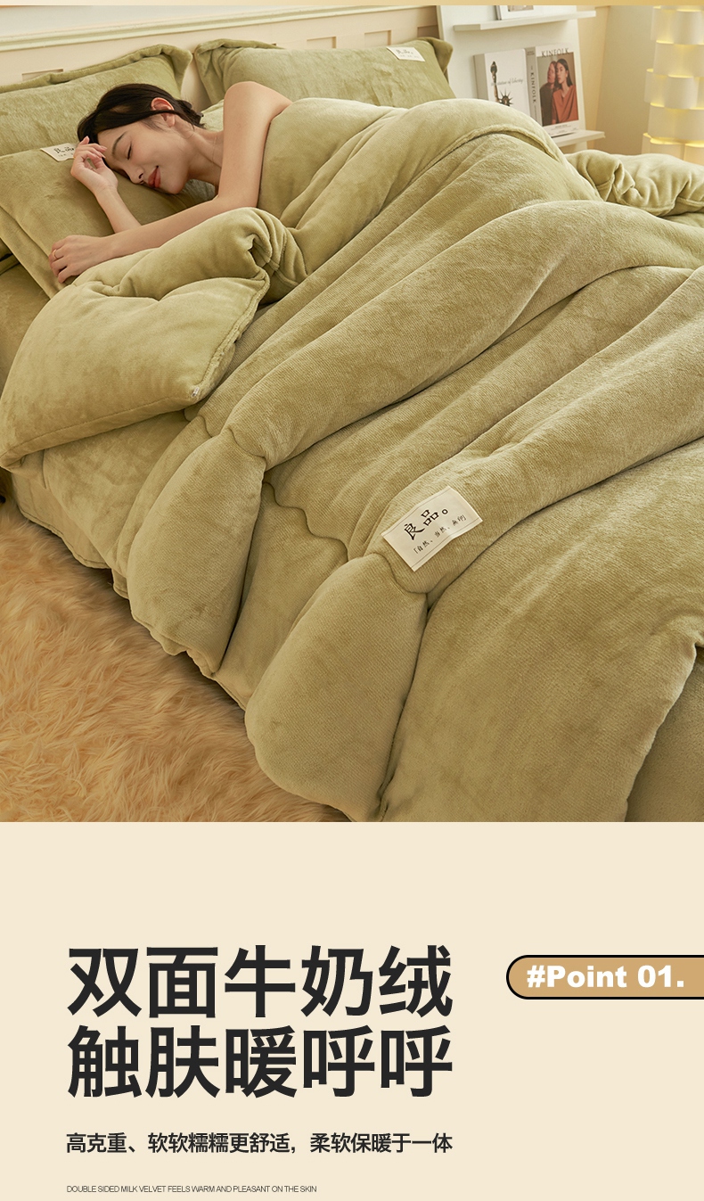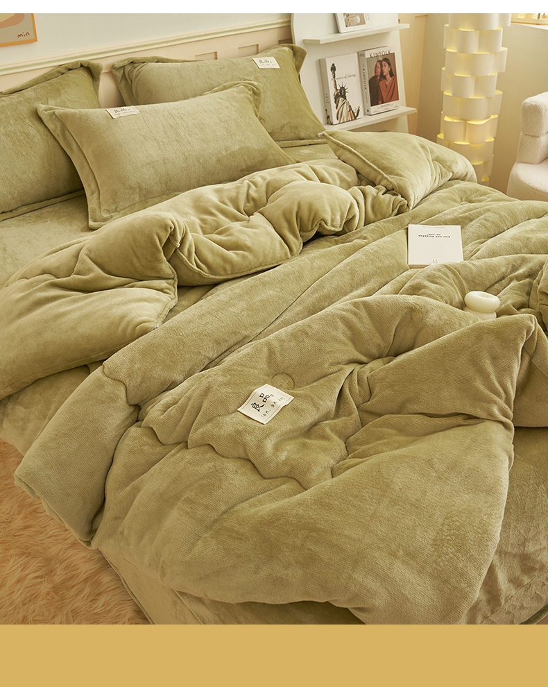 2024新款保暖舒适牛奶绒冬被四件套 果绿