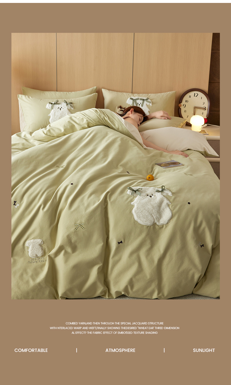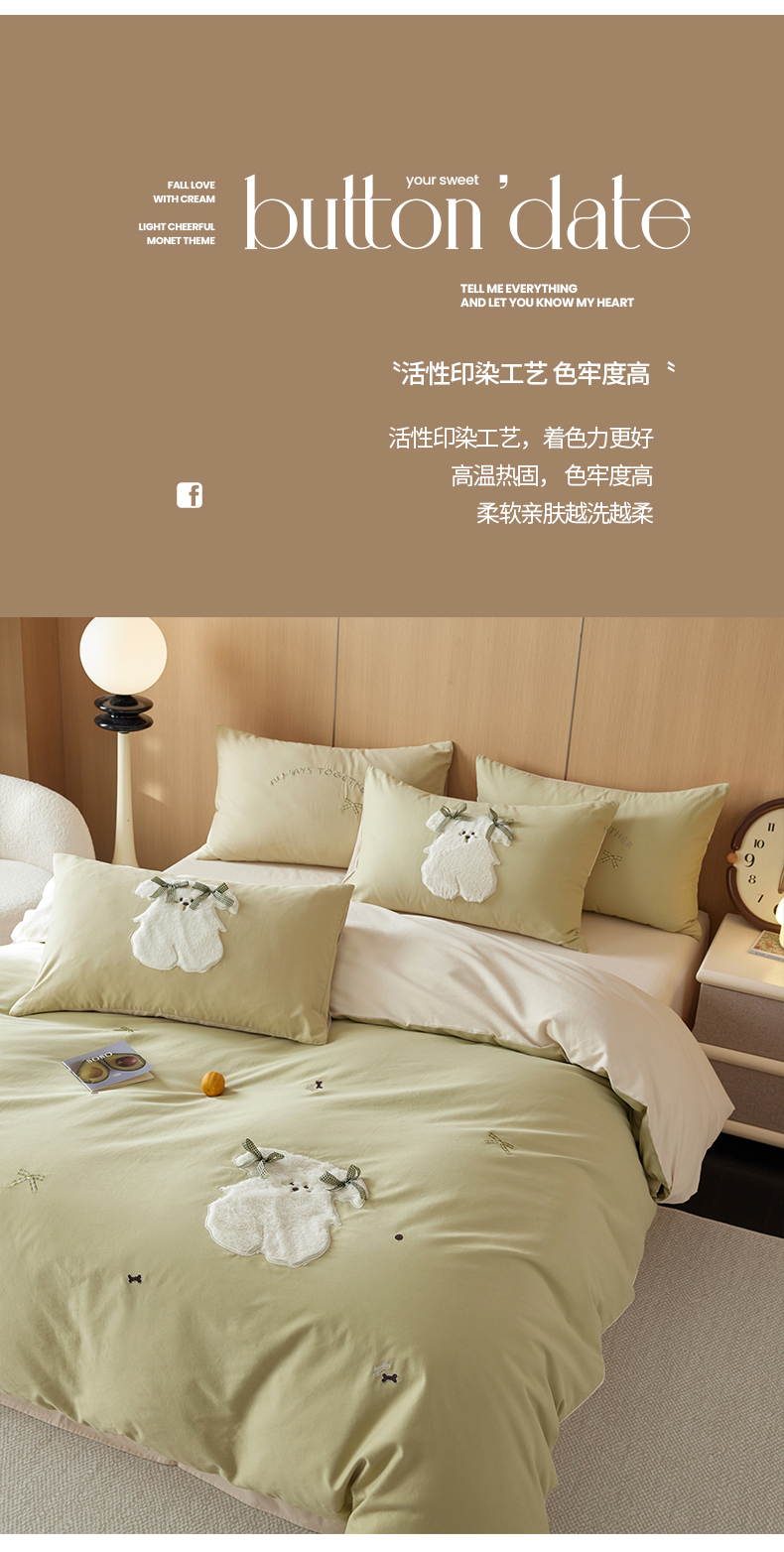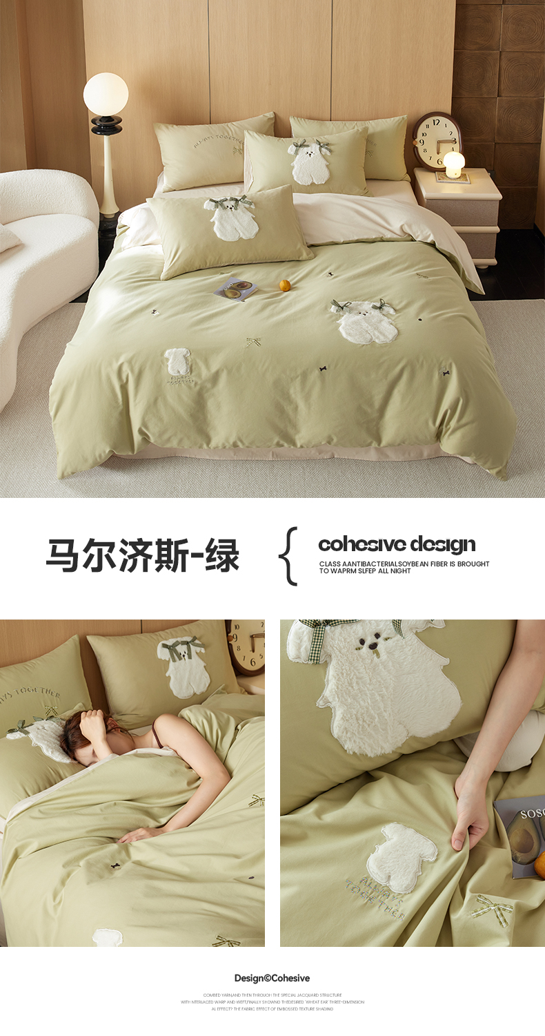 当前位置: 91家纺网 > 商品网购 > 床品套件 > 四件套 > 毛巾绣四件套 > 简纯主义 2025新款100S全棉磨毛毛巾绣甜甜系列四件套 马尔济斯-绿