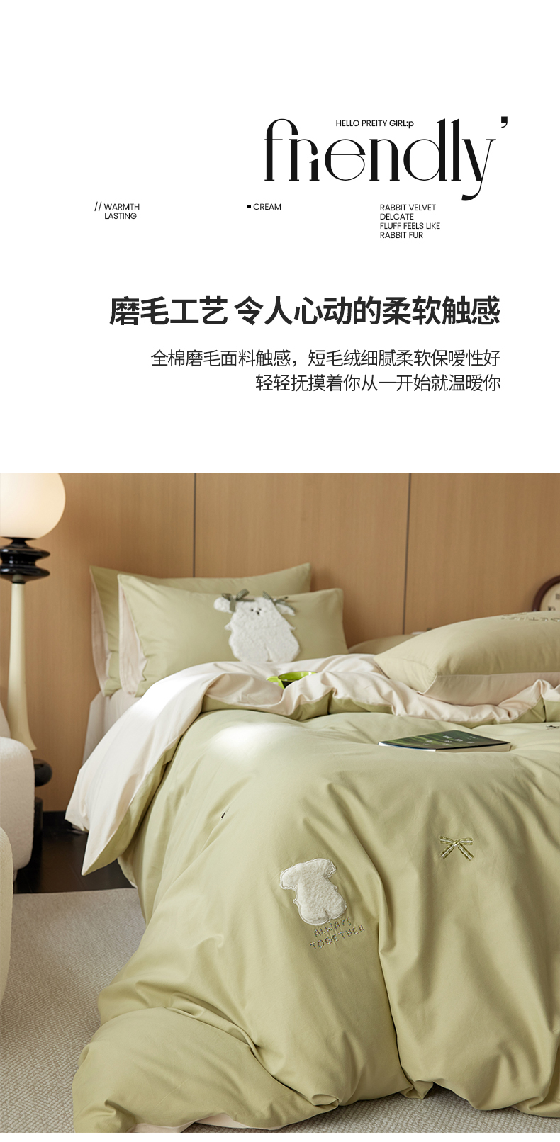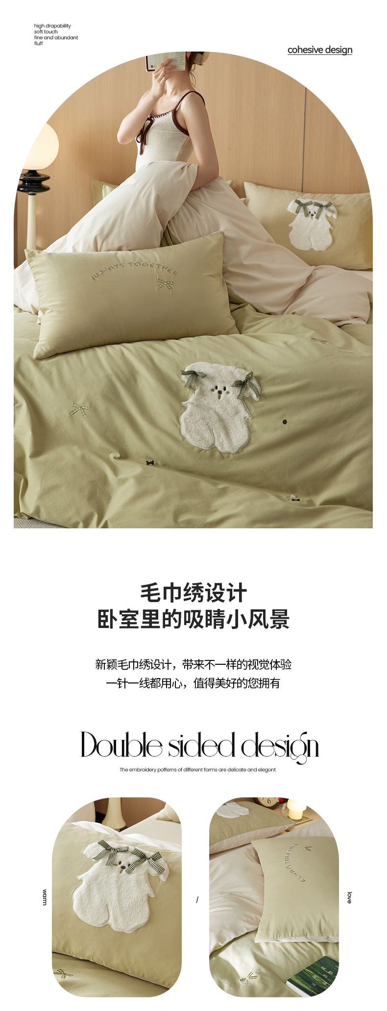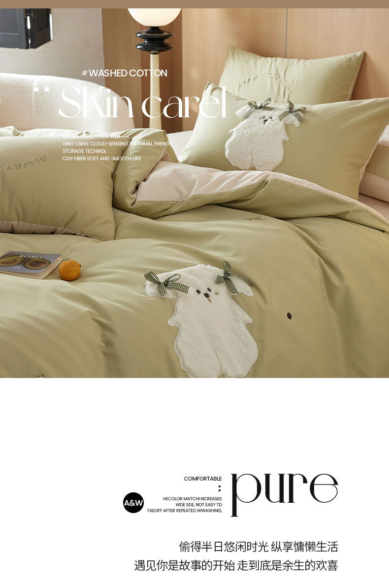 当前位置: 91家纺网 > 商品网购 > 床品套件 > 四件套 > 毛巾绣四件套 > 简纯主义 2025新款100S全棉磨毛毛巾绣甜甜系列四件套 马尔济斯-绿