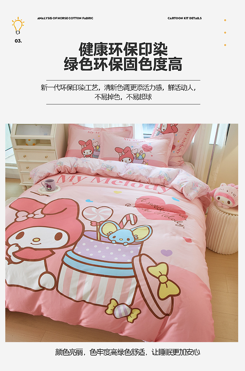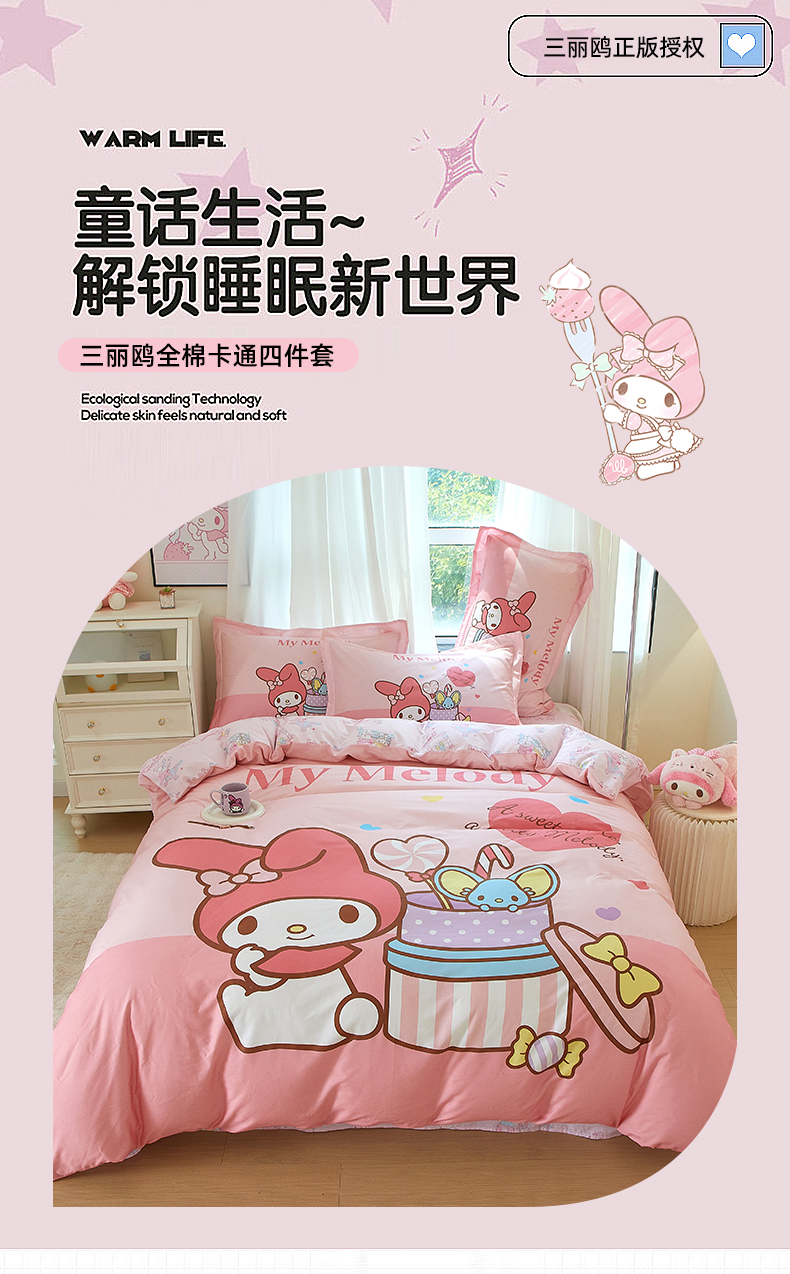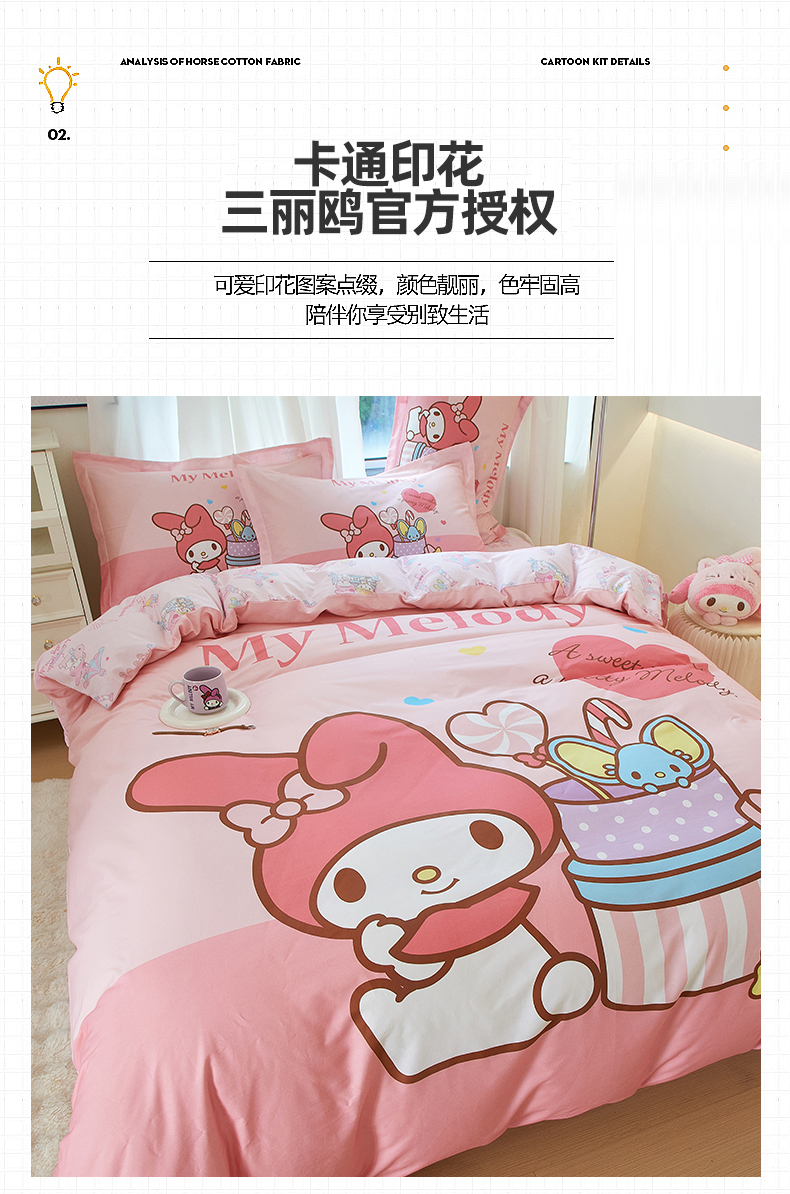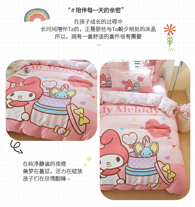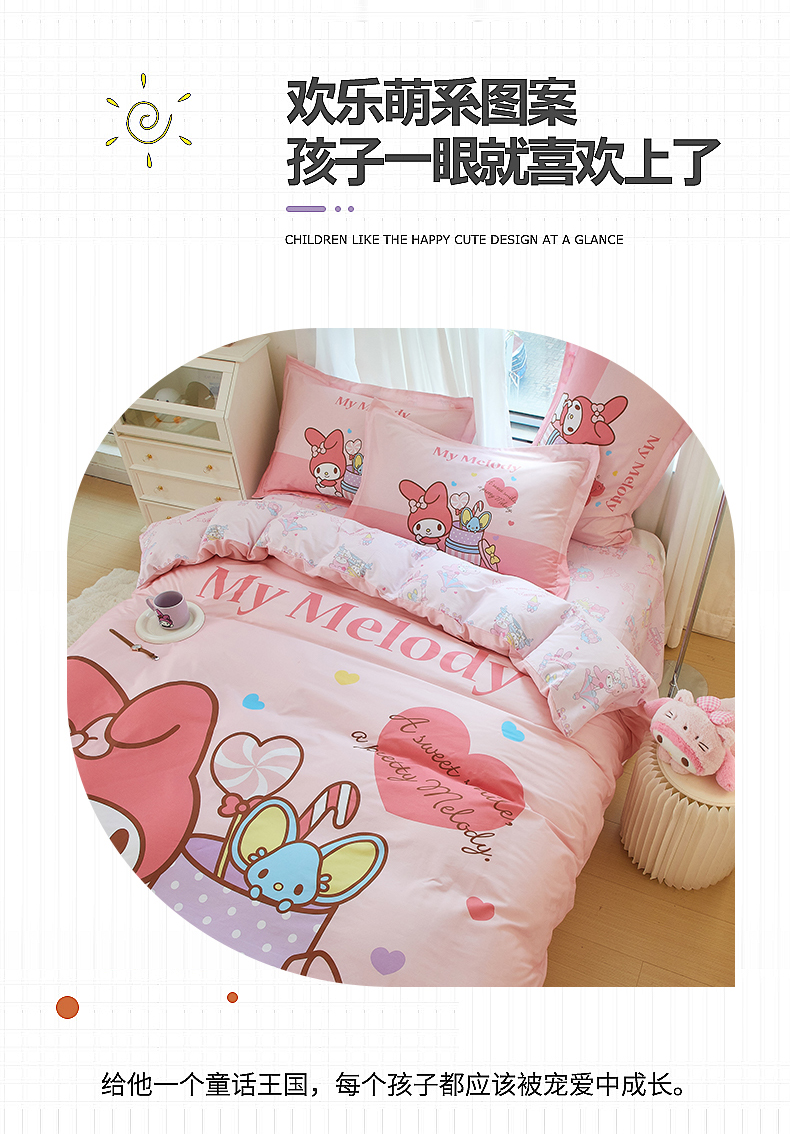 商品名称:蘭菲家纺 2024新款全棉大版卡通三丽鸥四件套 收礼物