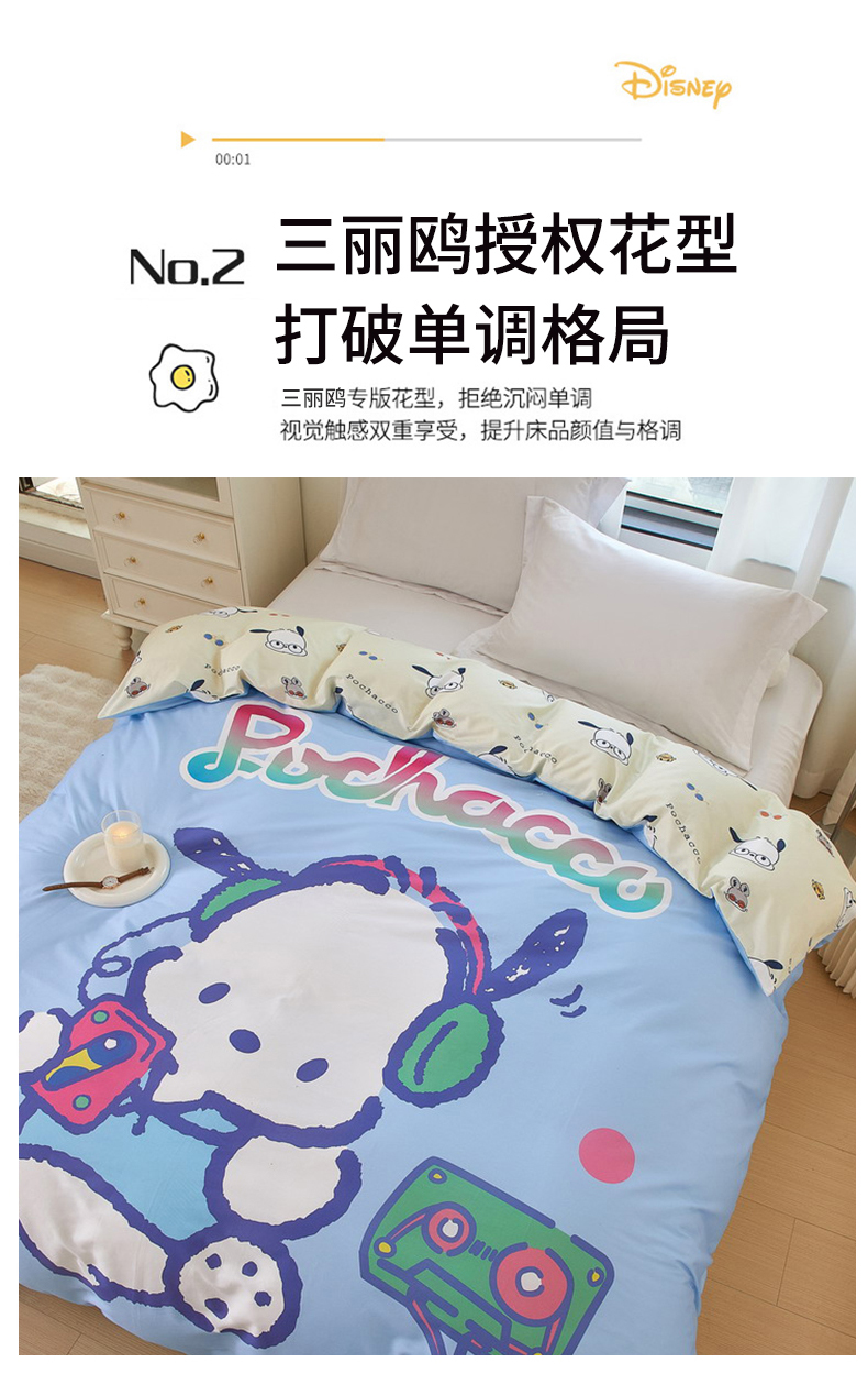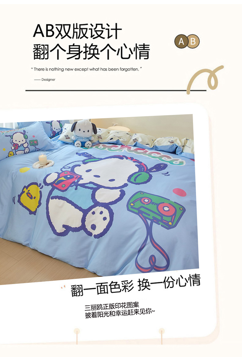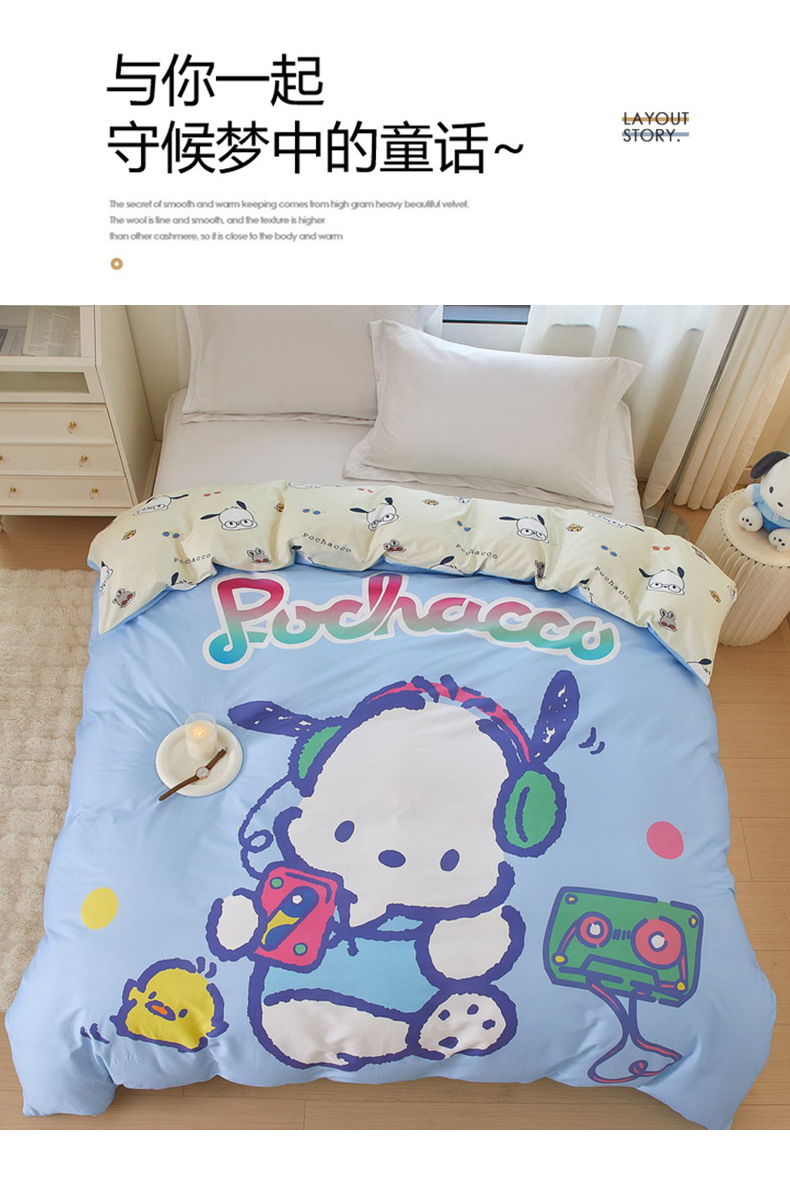 商品名称:蘭菲家纺 2024新款全棉大版卡通三丽鸥单品被套 恰恰舞步