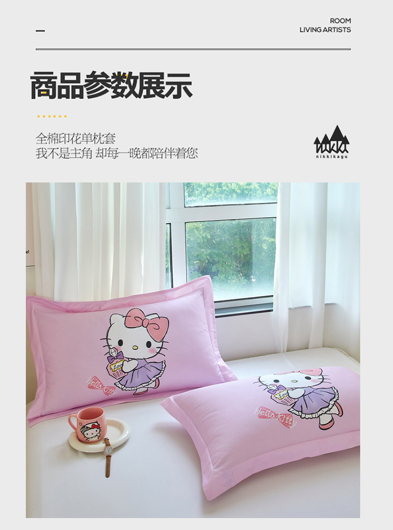 商品名称:蘭菲家纺 2024新款全棉大版卡通三丽鸥单品枕套 咪咪