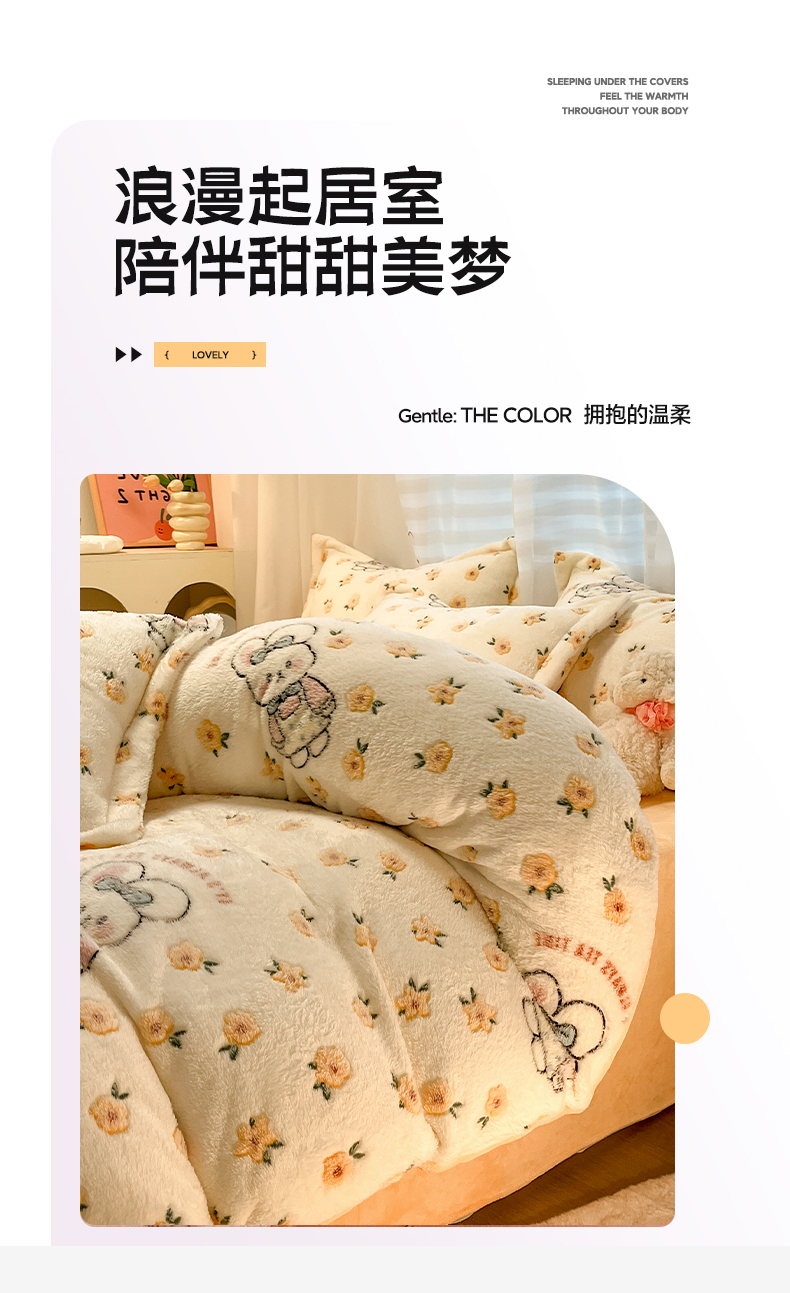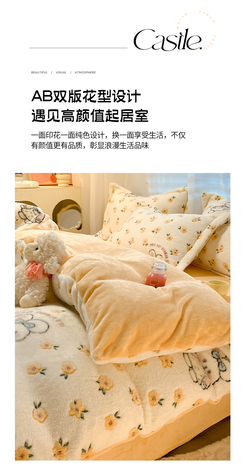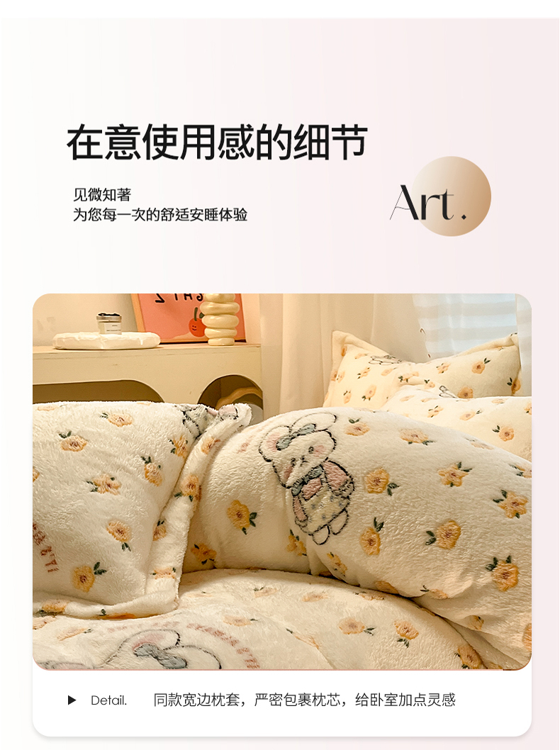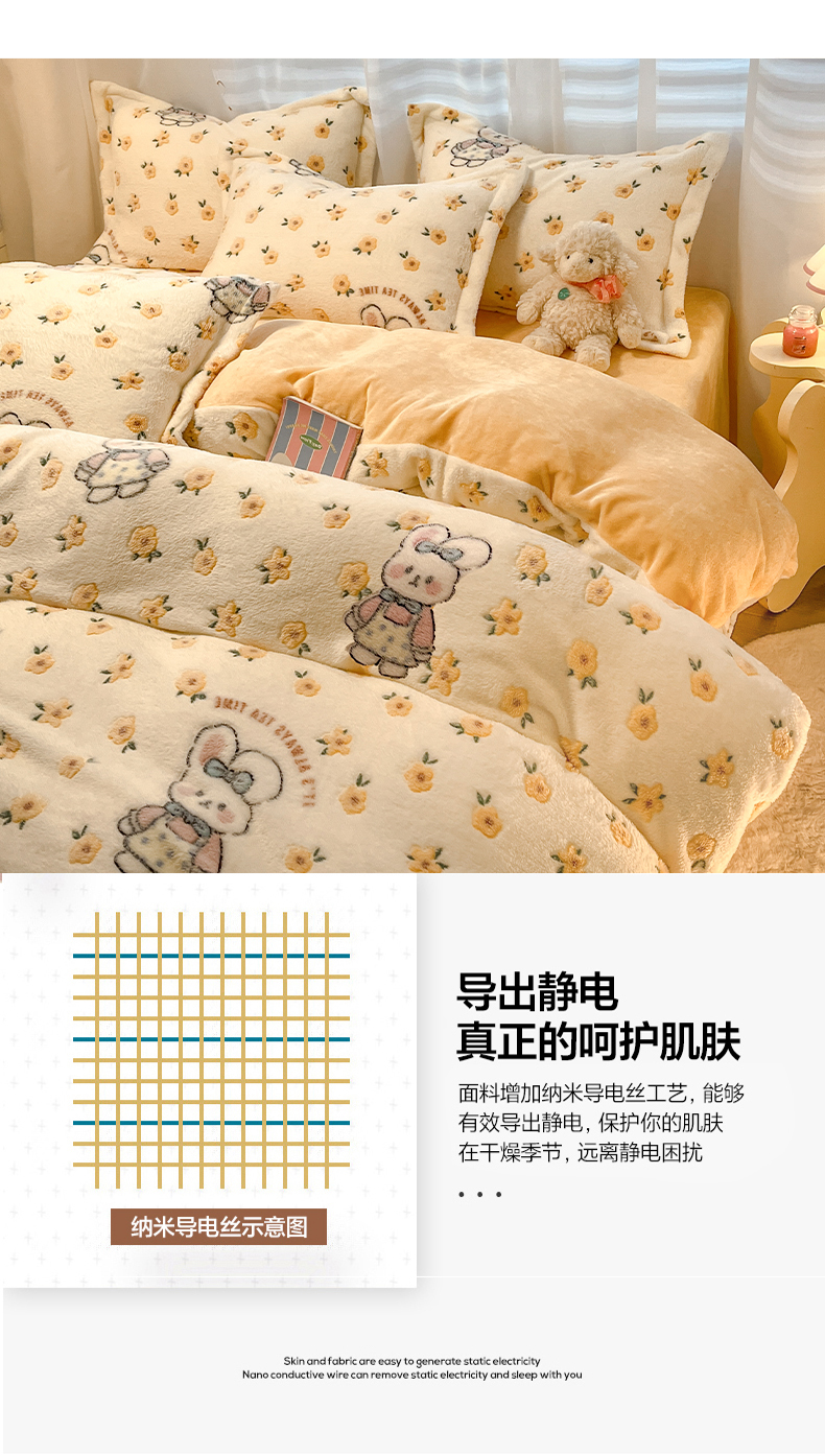 当前位置: 91家纺网 > 商品网购 > 床品套件 > 四件套 > 其它四件套 > 韩巢家纺 2024新款加厚雪花绒印花四件套-风格一(提供卖家秀) 田园兔(黄)