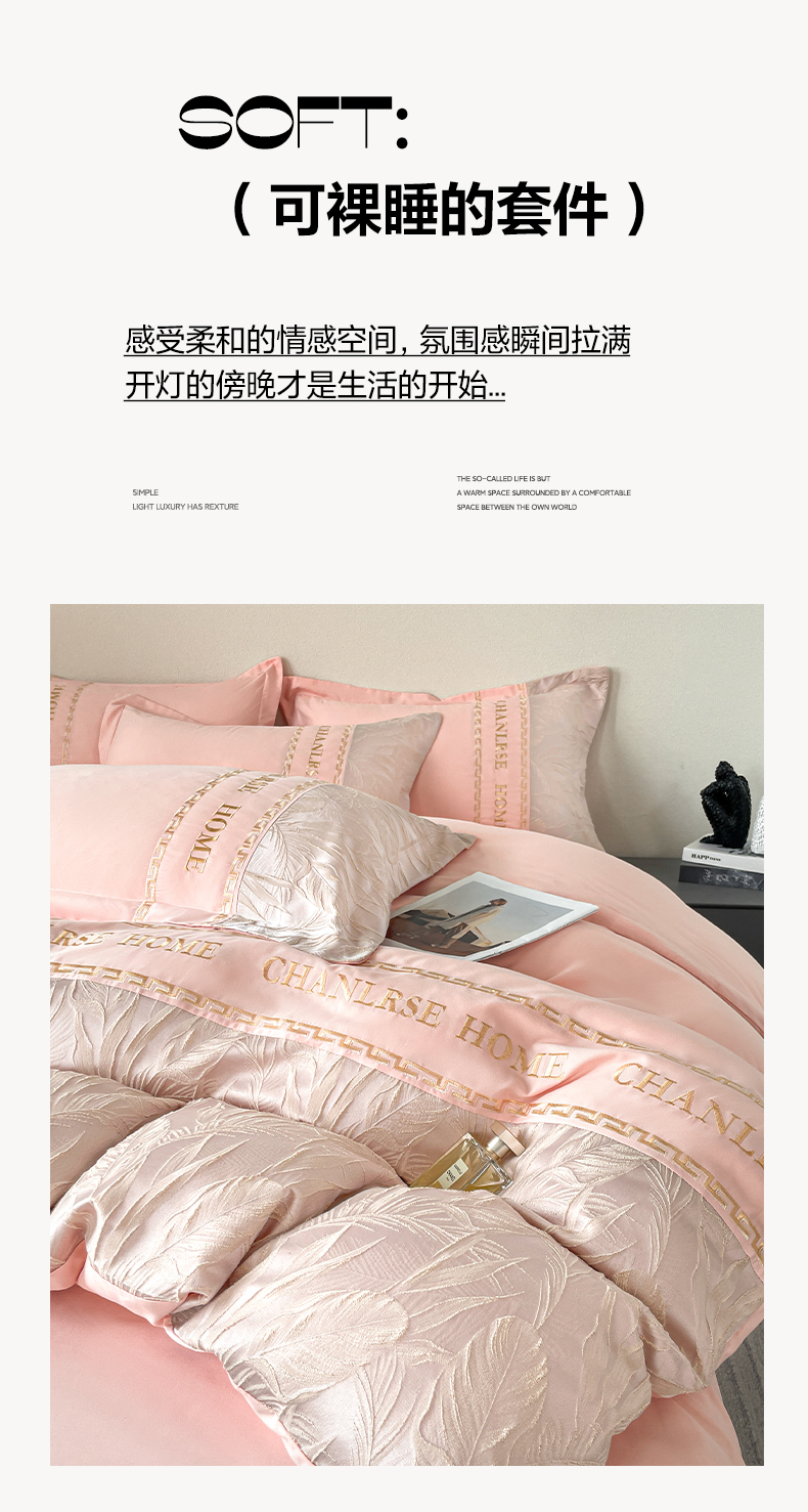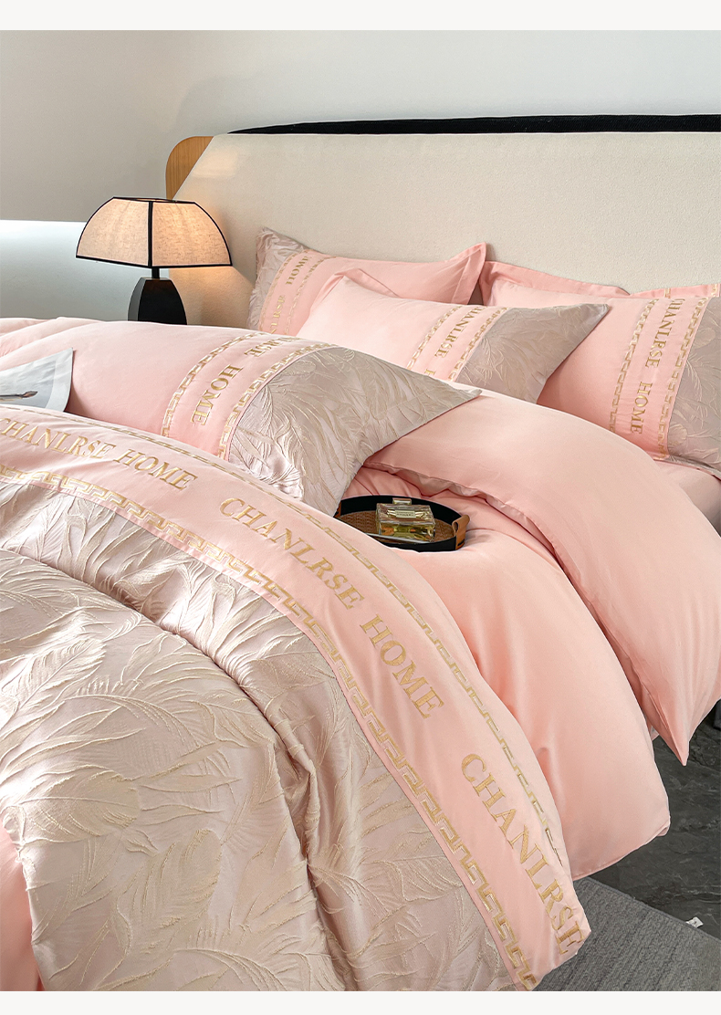 花愿(原花纪) 2025新款水洗棉立体浮雕提花拼色四件套-艾米娅 樱花粉