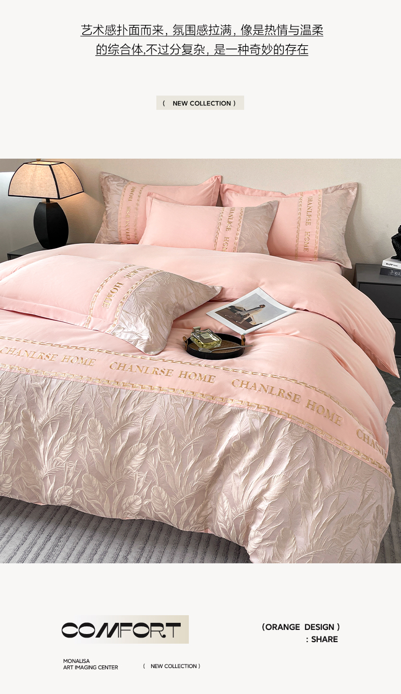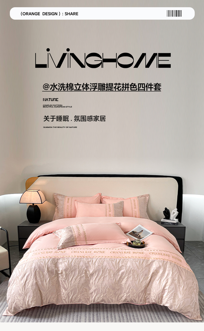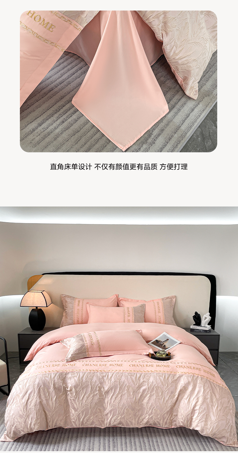 商品名称:花愿(原花纪) 2025新款水洗棉立体浮雕提花拼色四件套-艾米娅 樱花粉
