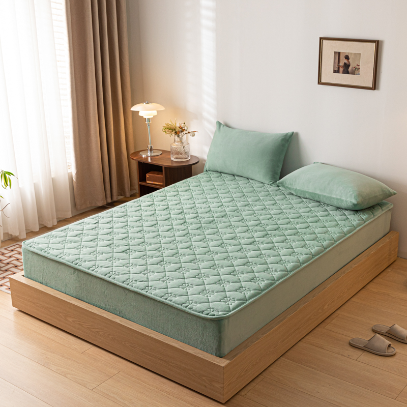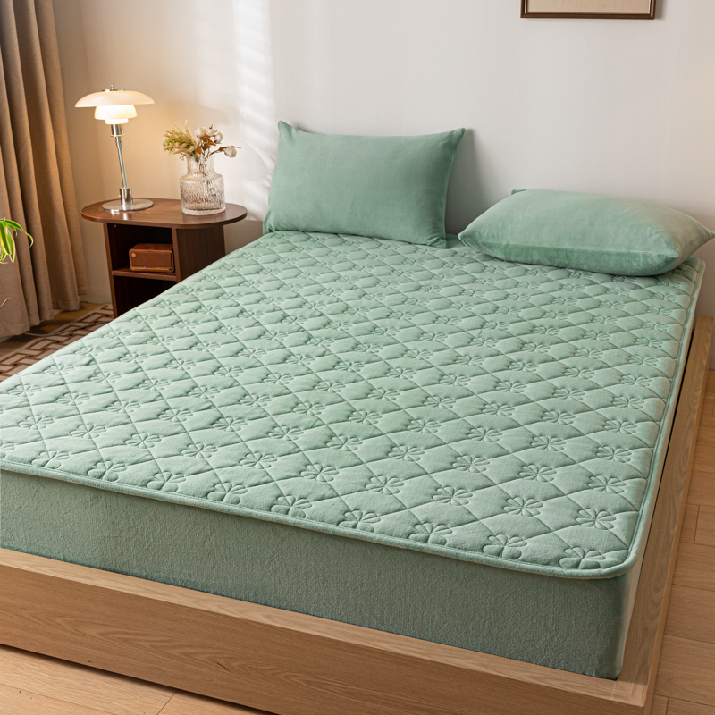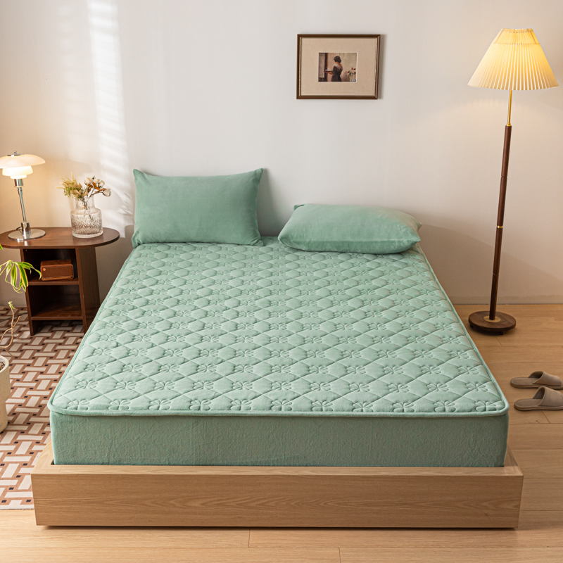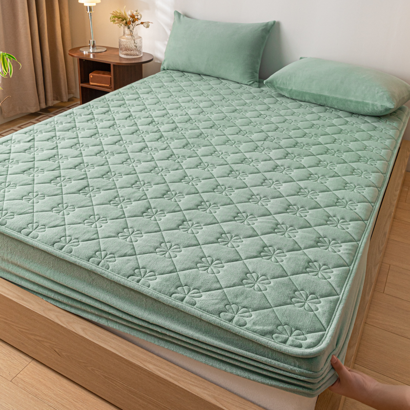 梵克保罗 2024新款牛奶绒夹棉床笠-四叶草 四叶草-水墨绿