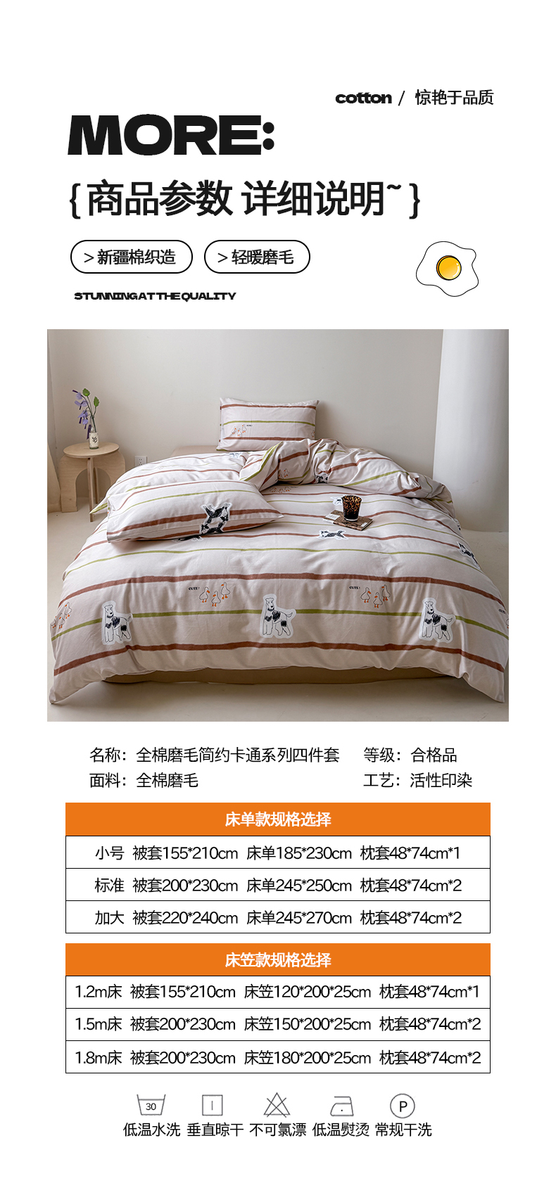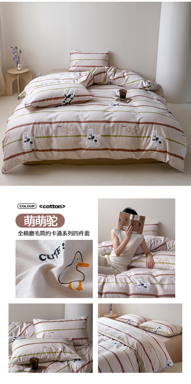 当前位置: 91家纺网 > 商品网购 > 床品套件 > 四件套 > 全棉普通四件套 > 窝米 2024新款全棉磨毛简约卡通系列四件套 萌萌驼