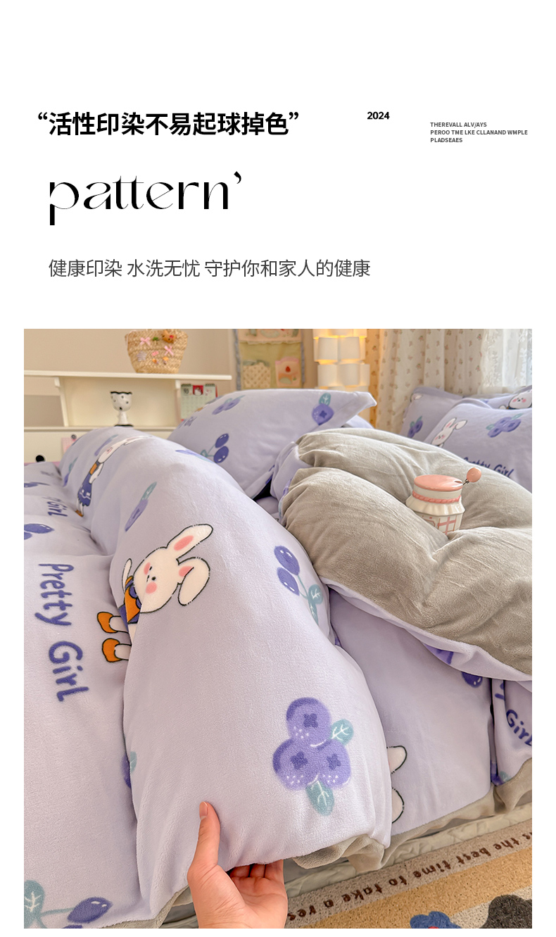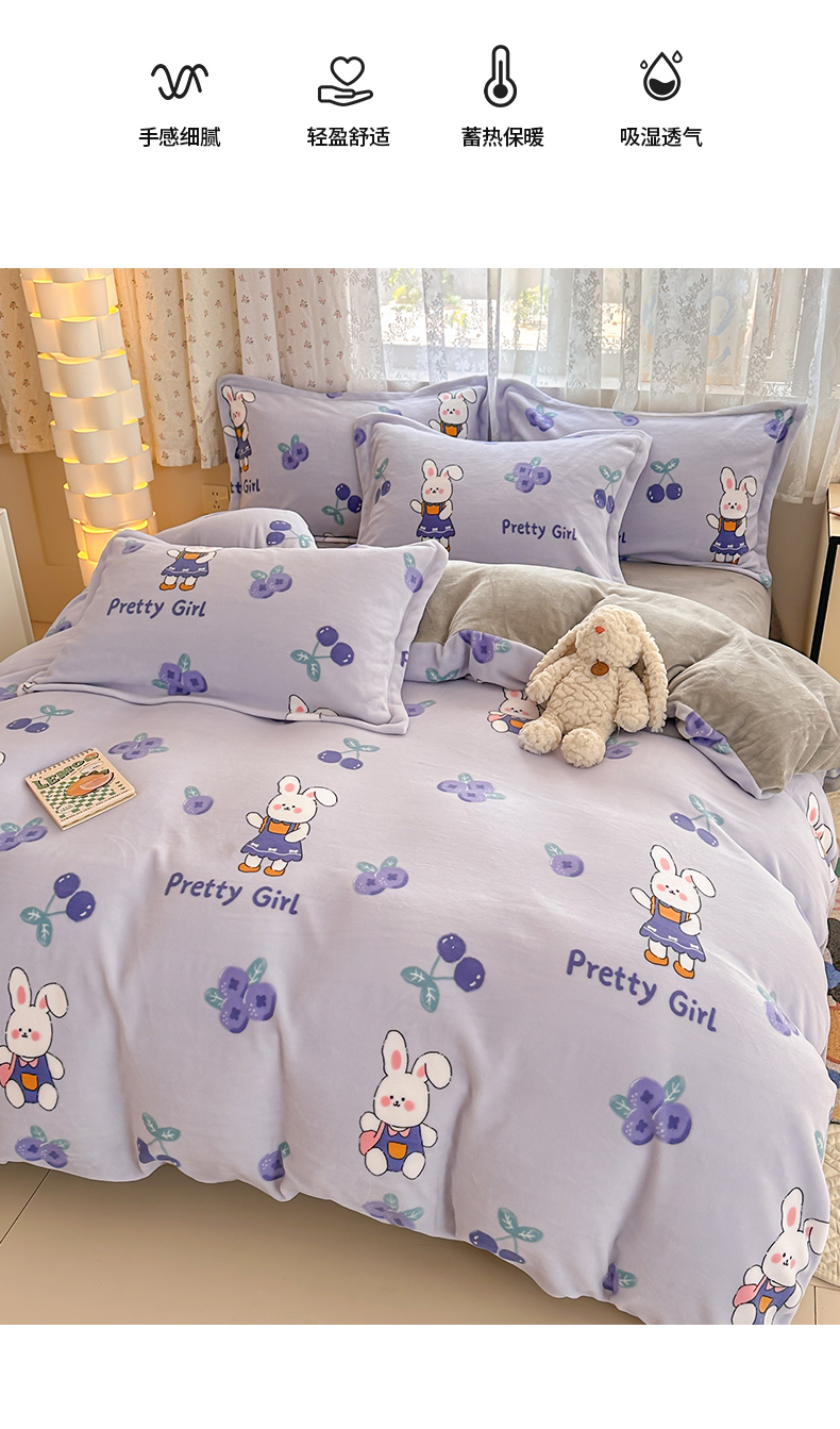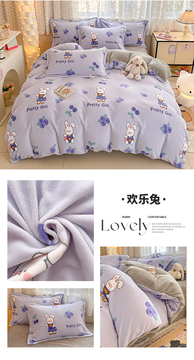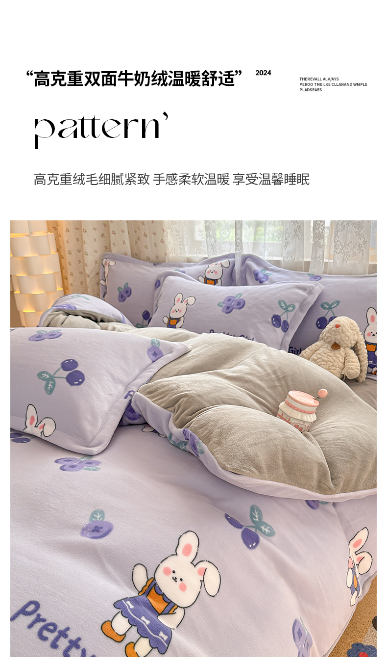 当前位置: 91家纺网 > 商品网购 > 床品套件 > 四件套 > 牛奶绒四件套 > 全季家居 2024新款A类小清新印花牛奶绒高克重加厚保暖四件套 欢乐兔