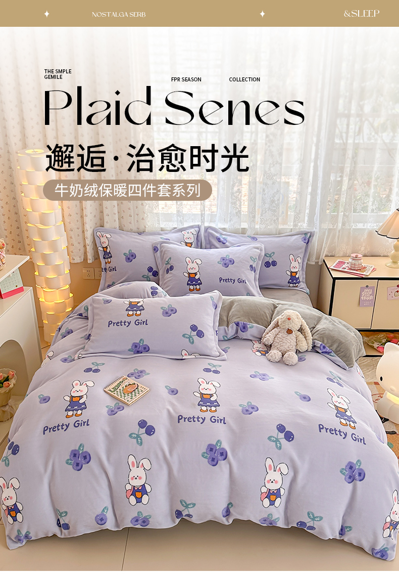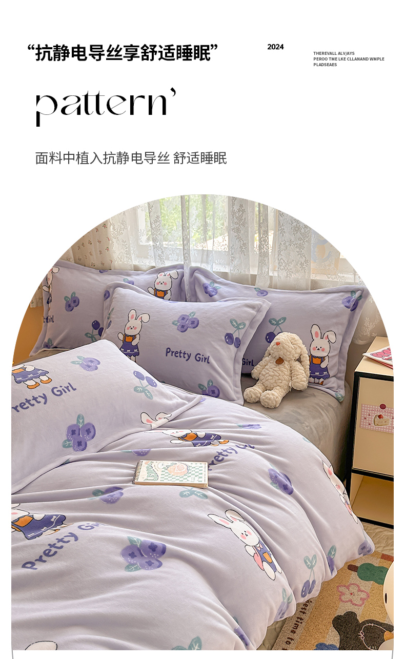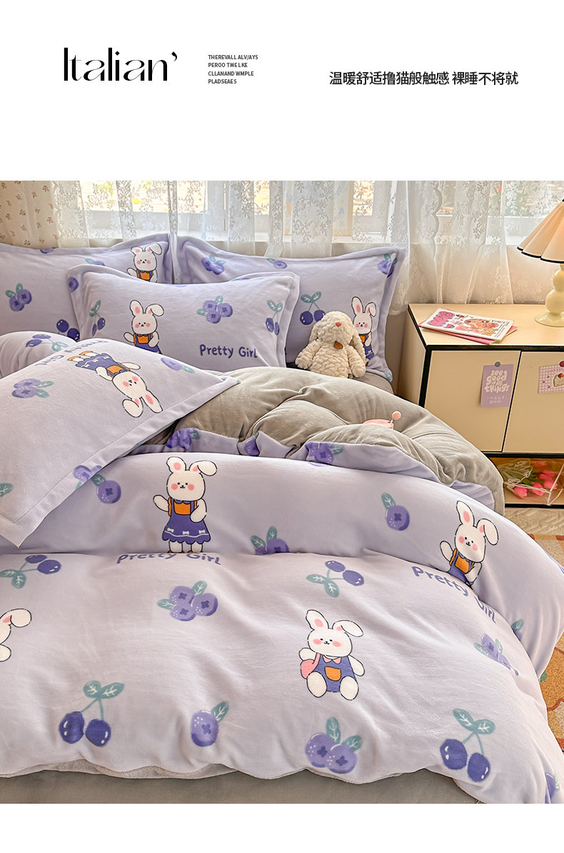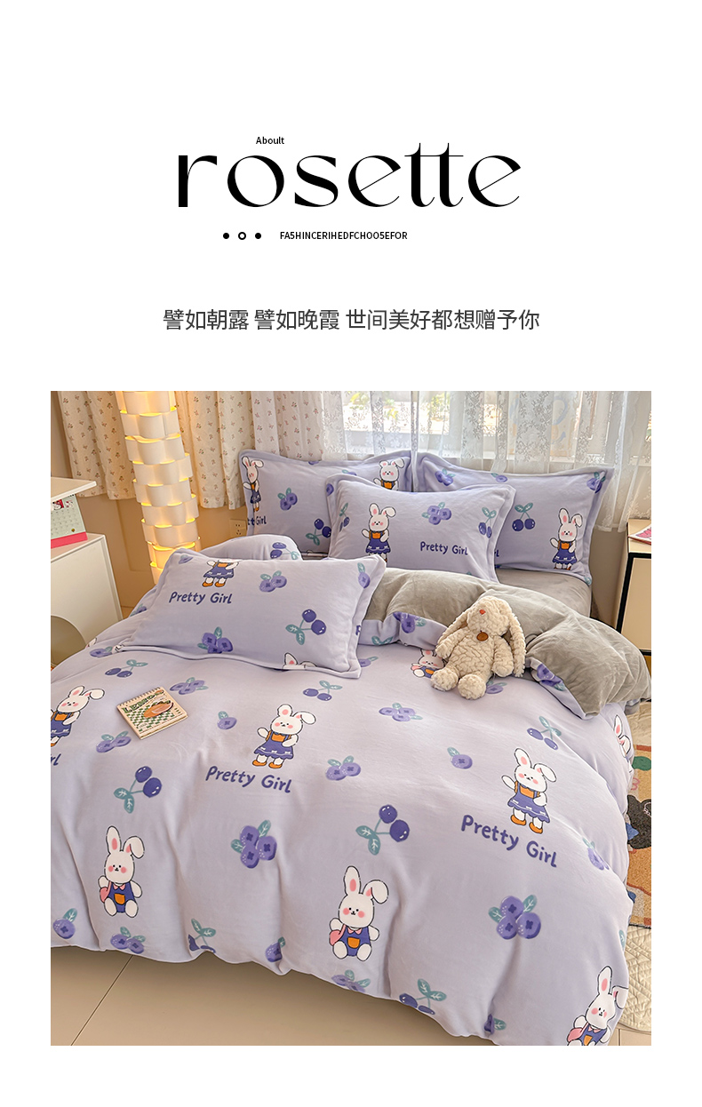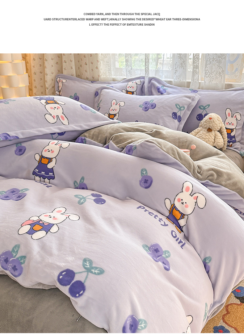 当前位置: 91家纺网 > 商品网购 > 床品套件 > 四件套 > 牛奶绒四件套 > 全季家居 2024新款A类小清新印花牛奶绒高克重加厚保暖四件套 欢乐兔
