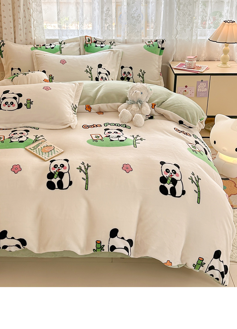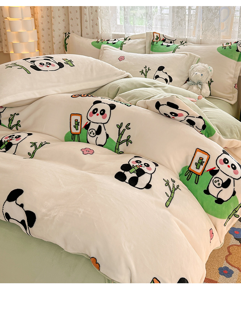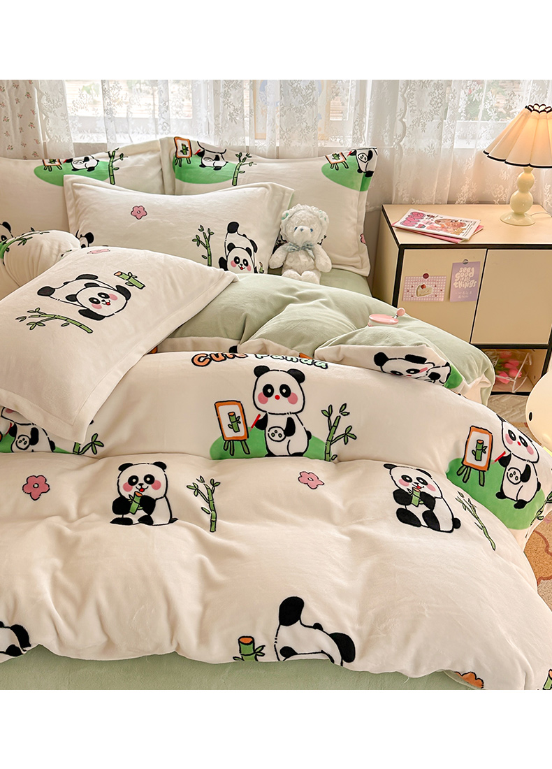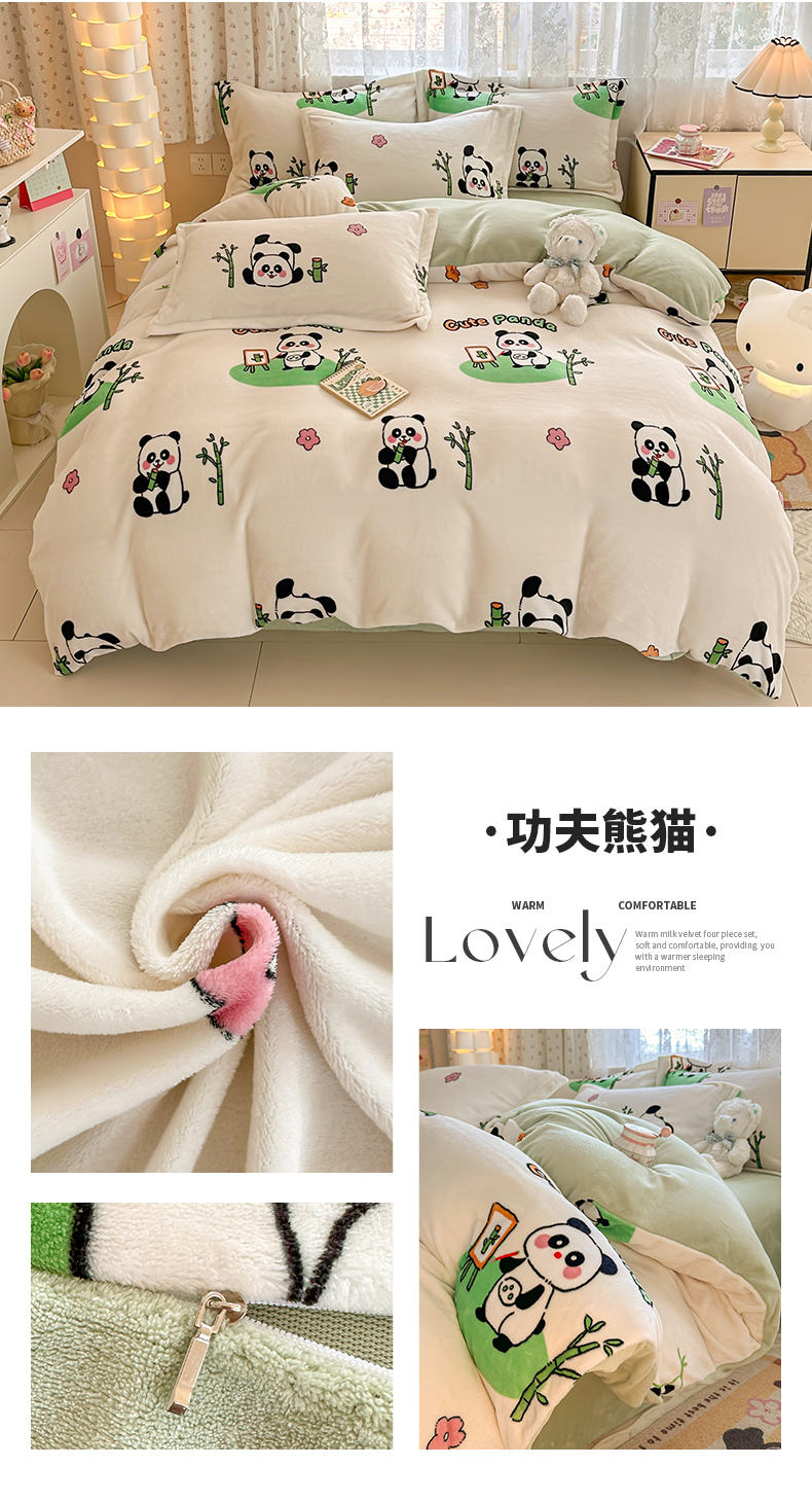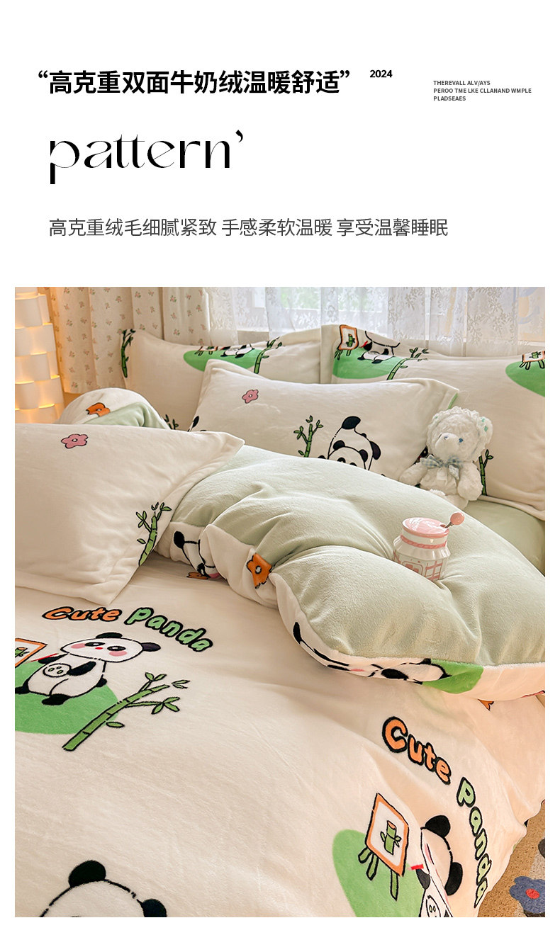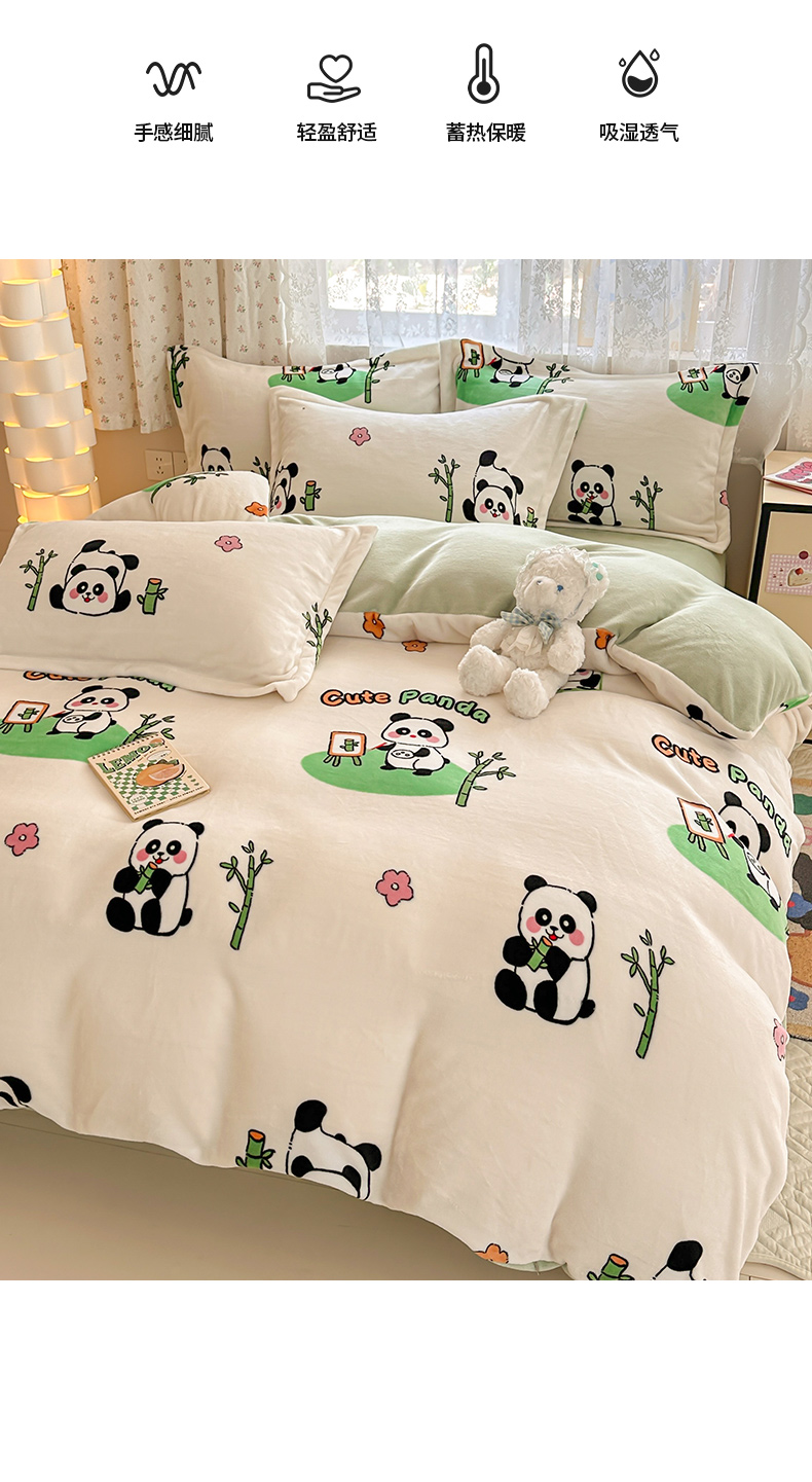 商品名称:全季家居 2024新款A类小清新印花牛奶绒高克重加厚保暖被套单件 功夫熊猫