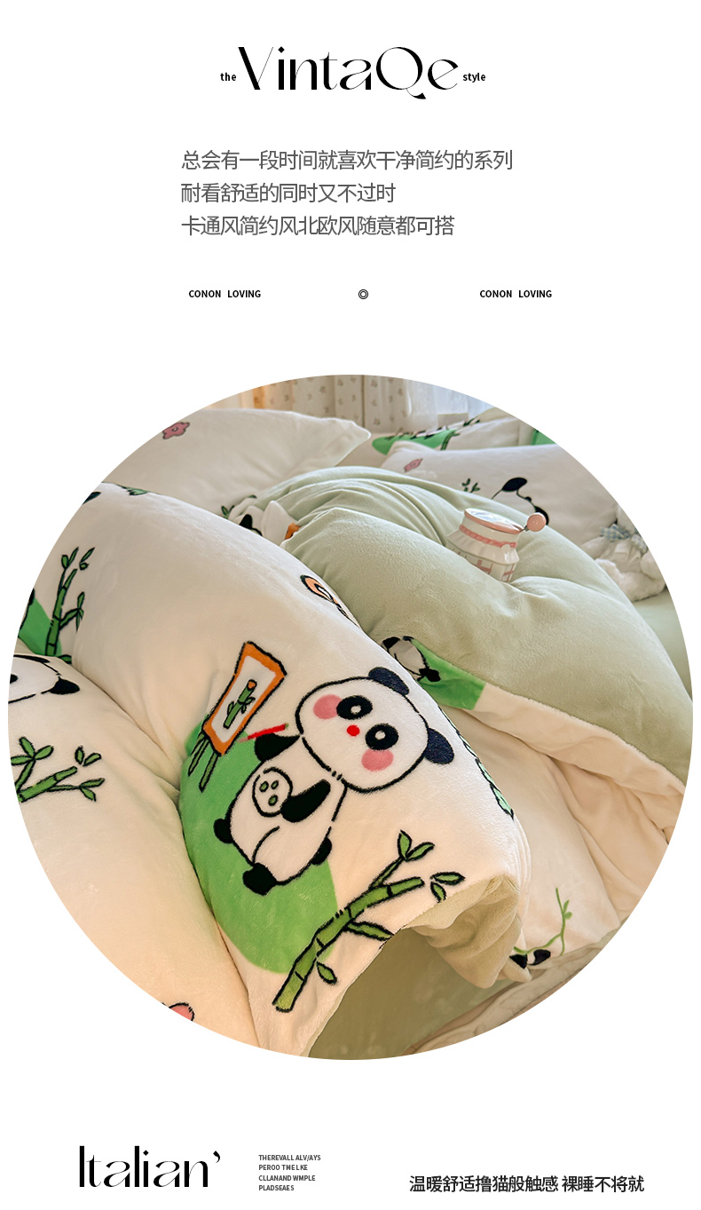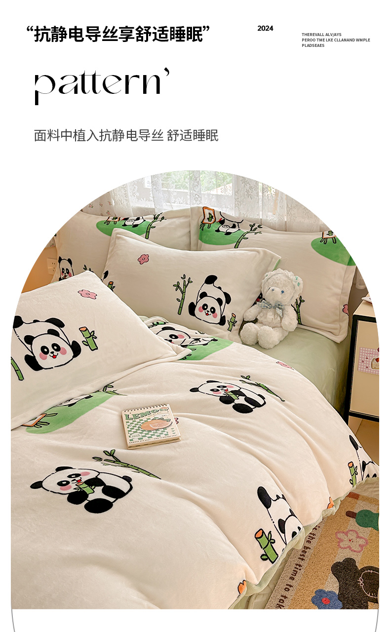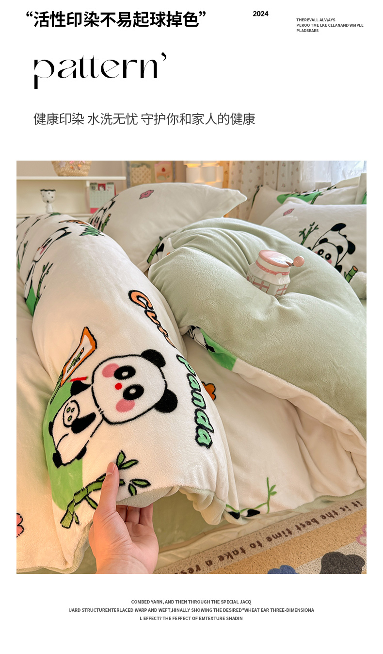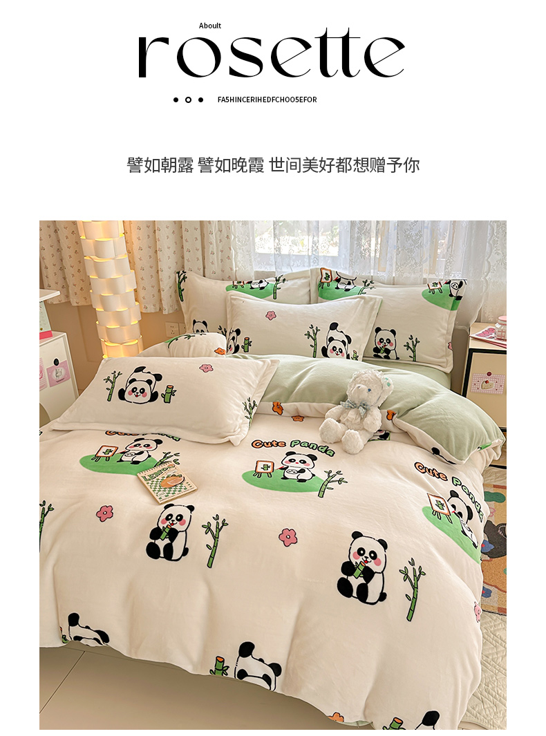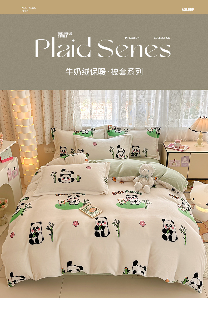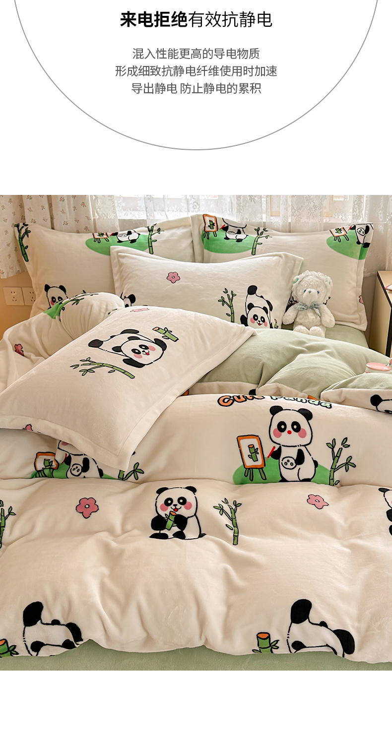 商品名称:全季家居 2024新款A类小清新印花牛奶绒高克重加厚保暖被套单件 功夫熊猫
