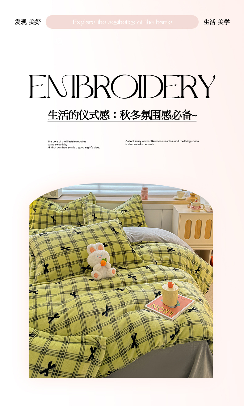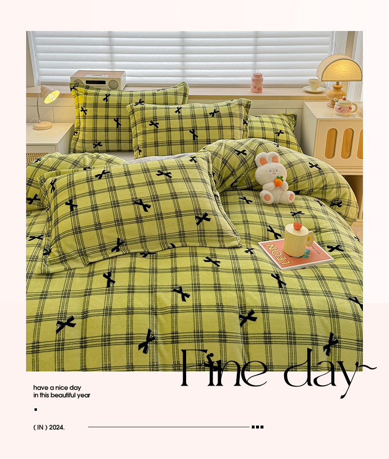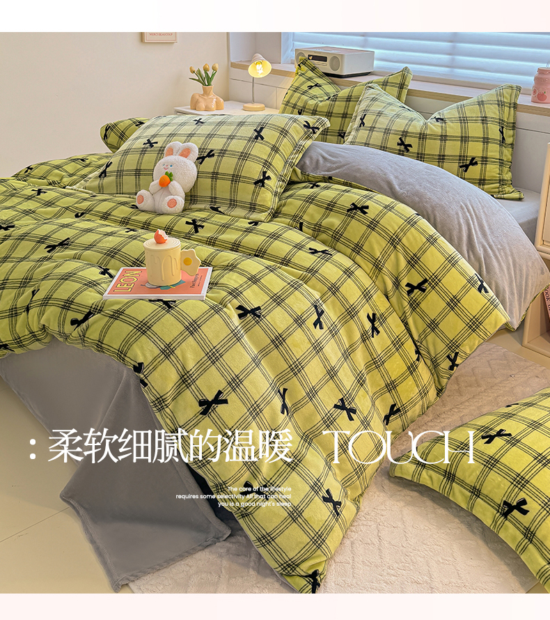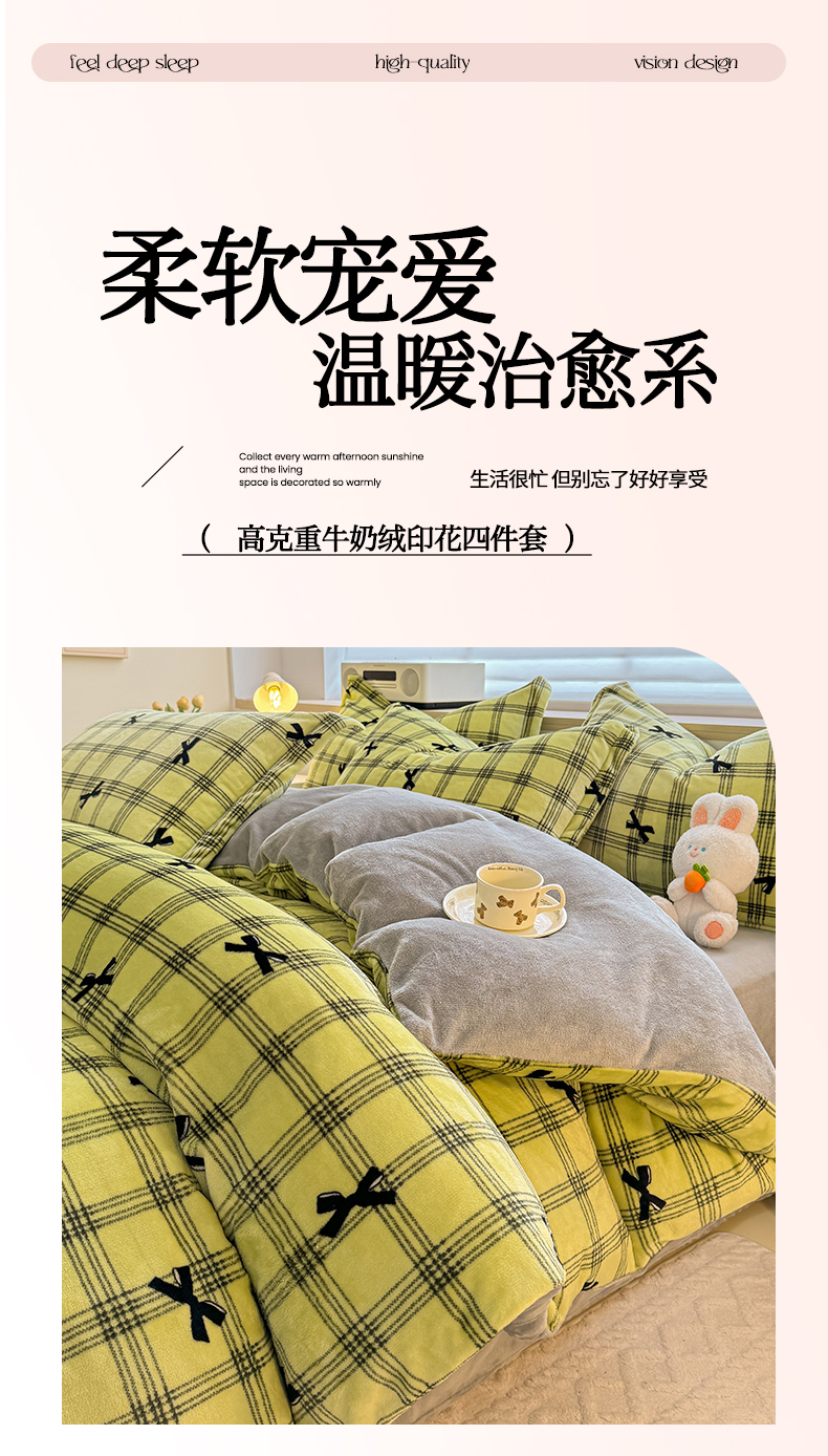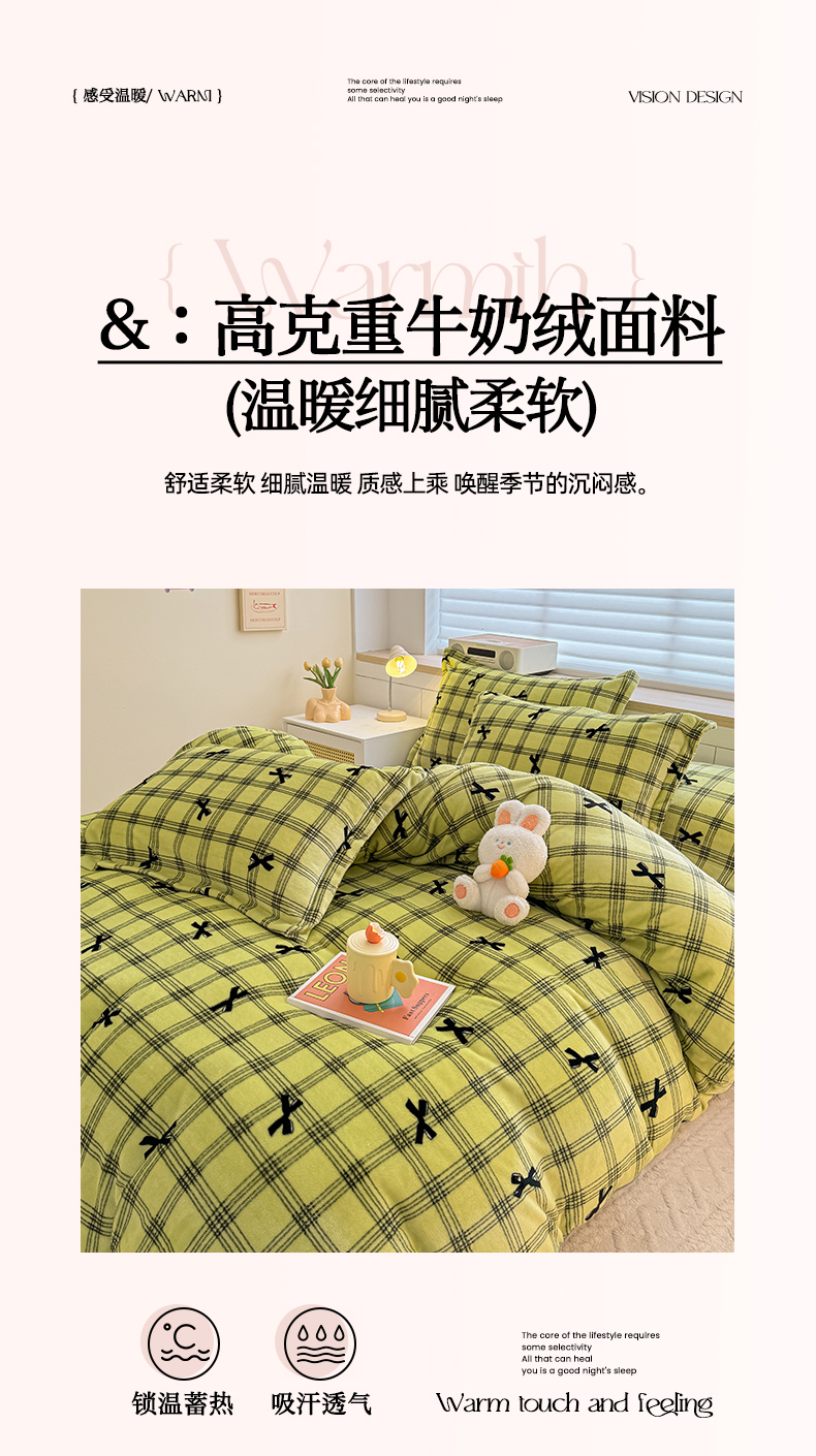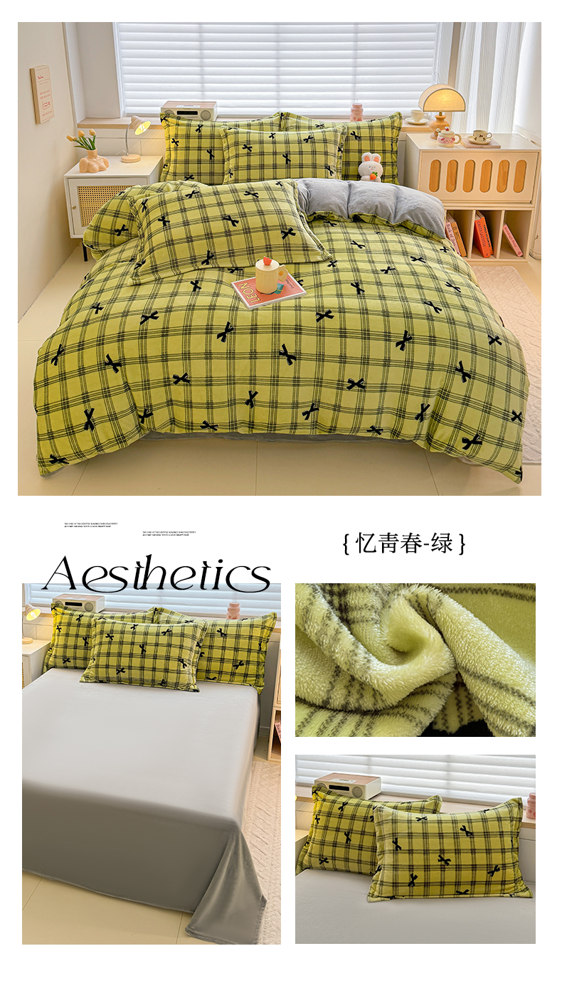 当前位置: 91家纺网 > 商品网购 > 床品套件 > 四件套 > 牛奶绒四件套 > 妖妖家纺 2024新款高克重200克印花牛奶绒四件套 忆青春-绿