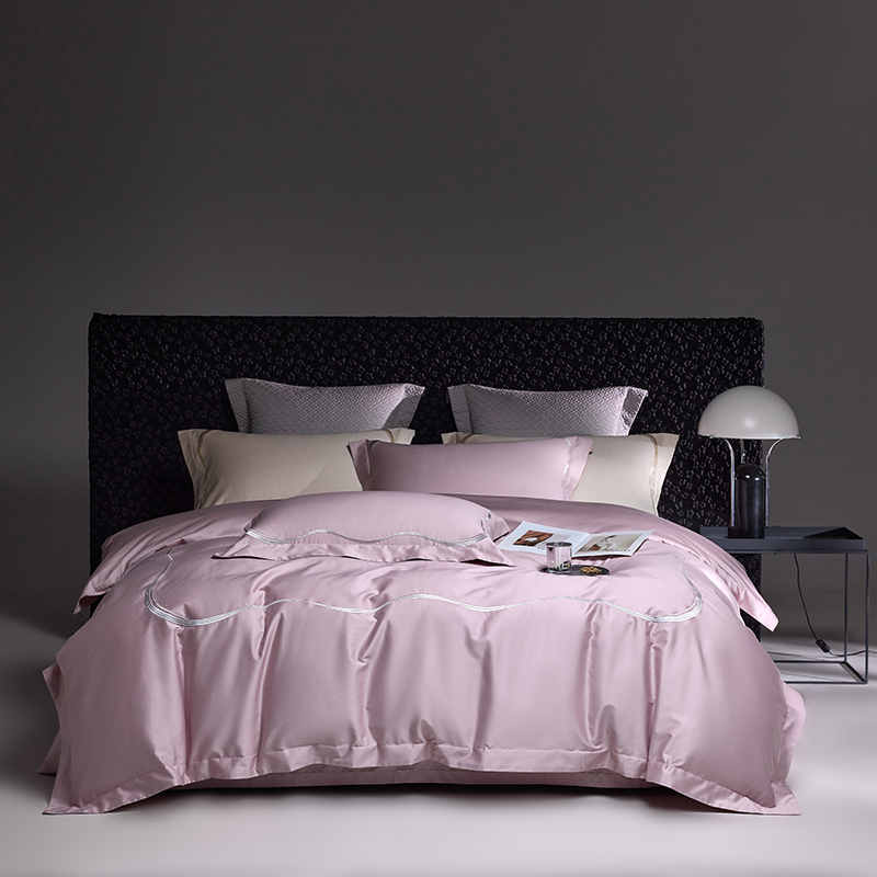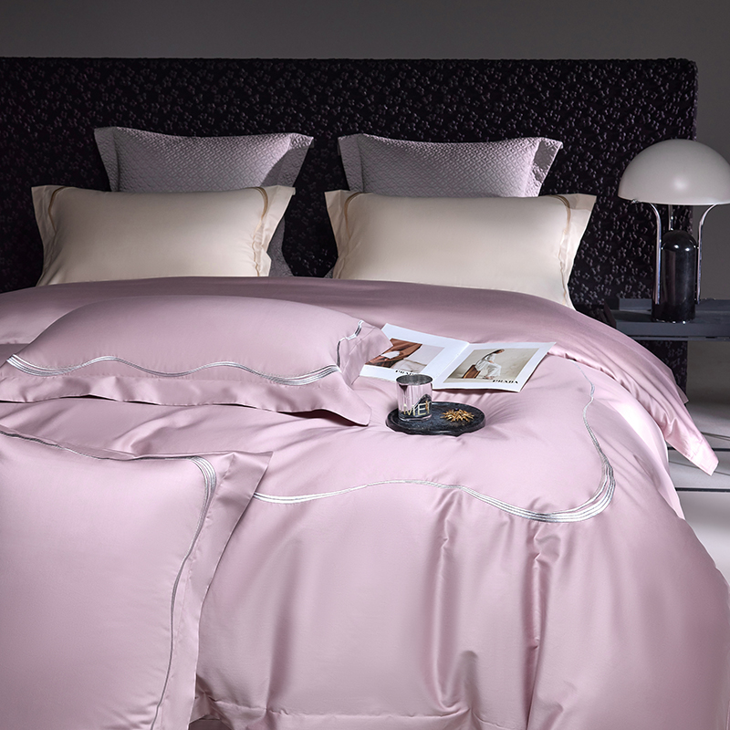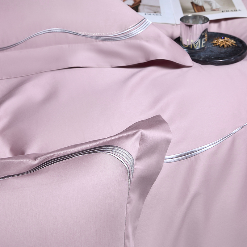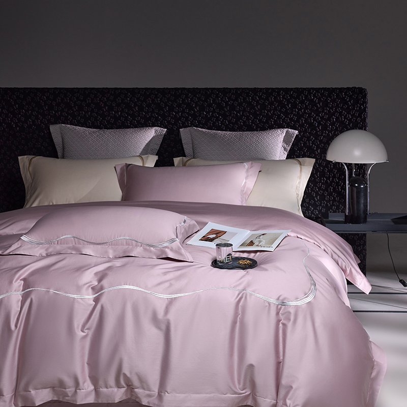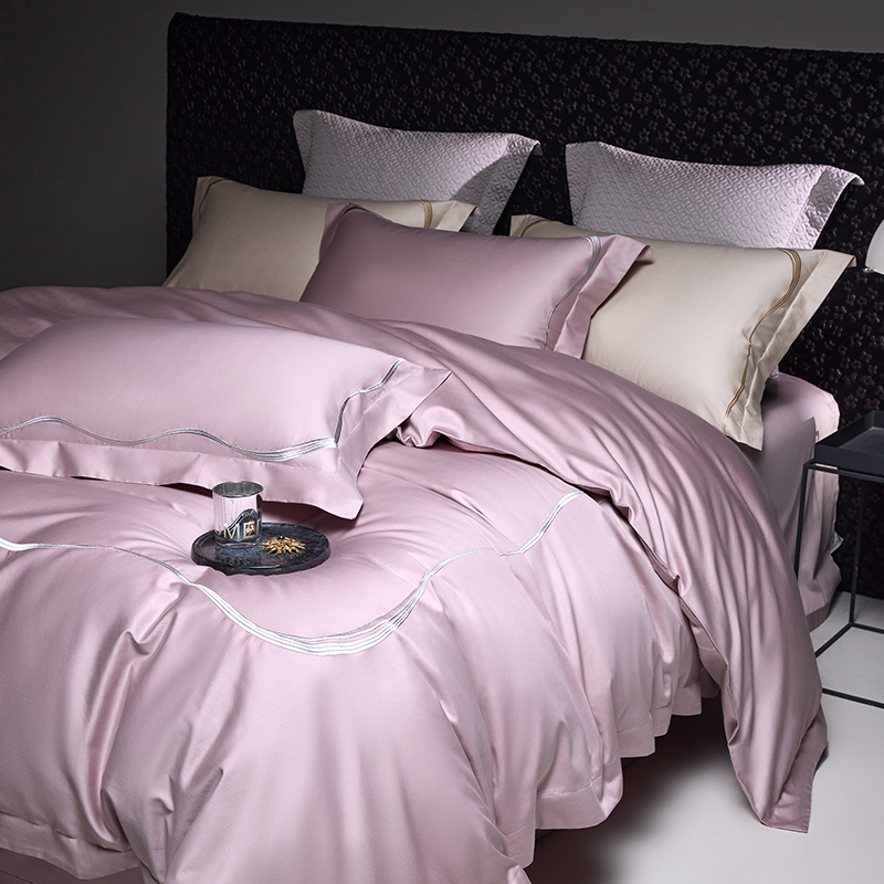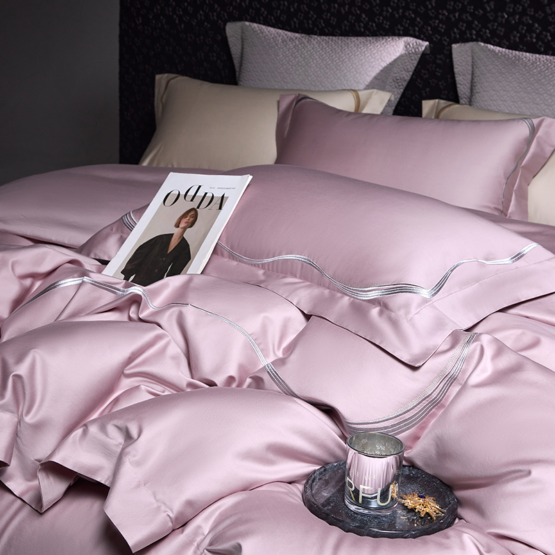 商品名称:时亿家居 2024新款100支长绒棉刺绣款四件套-比利时 比利时 乌梅粉