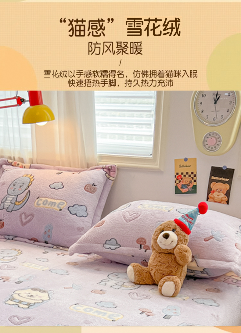 韩巢家纺 2024新款雪花绒枕套一对装 童趣乐园
