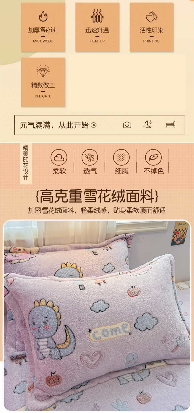商品名称:韩巢家纺 2024新款雪花绒枕套一对装 童趣乐园