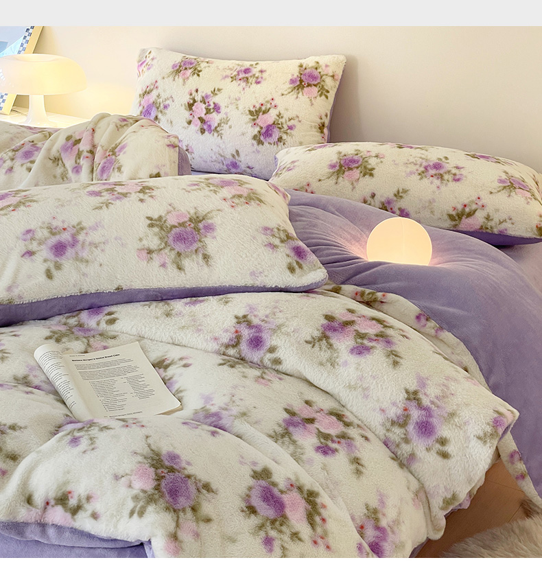 安哆啦家纺 2024新款ins风高克重兔毛绒四件套 花团锦簇
