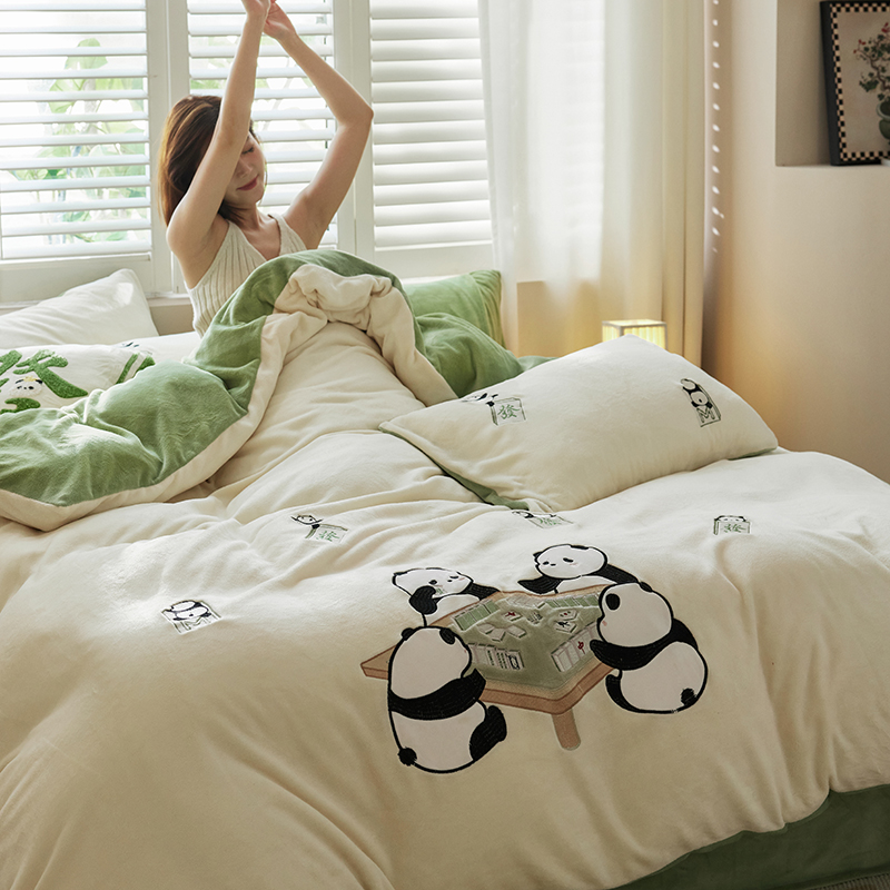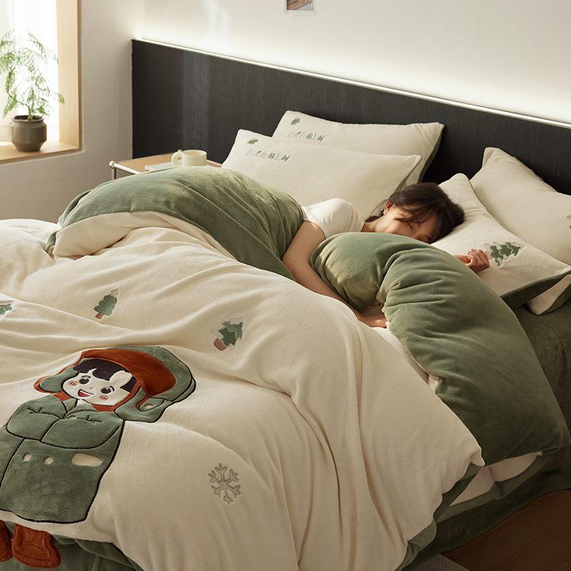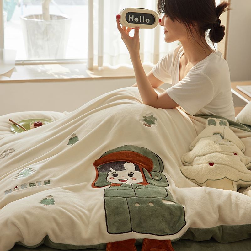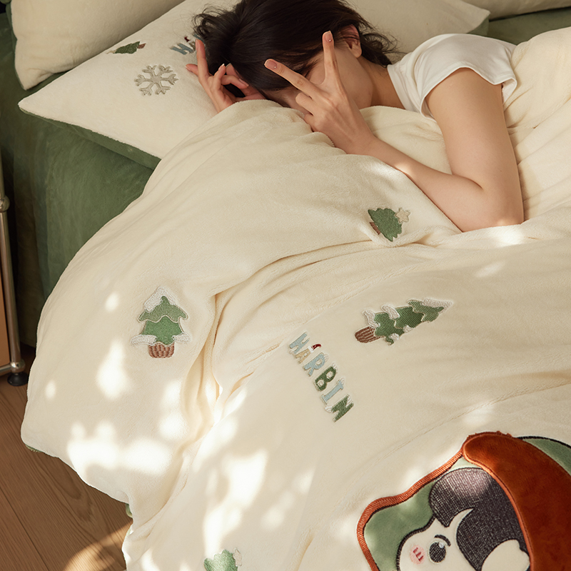 2024新款牛奶绒立体贴布绣四件套 绒绒圣诞树