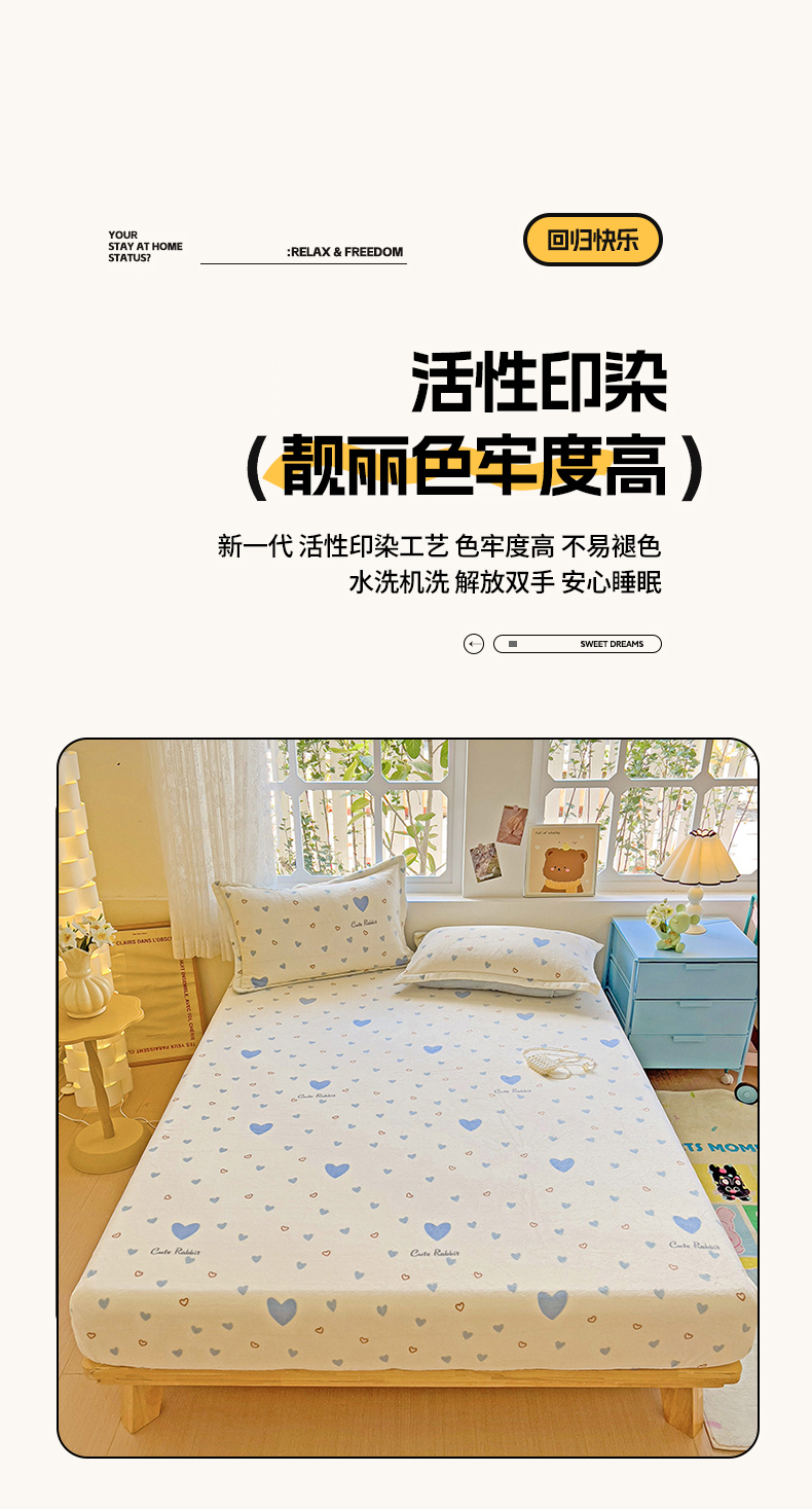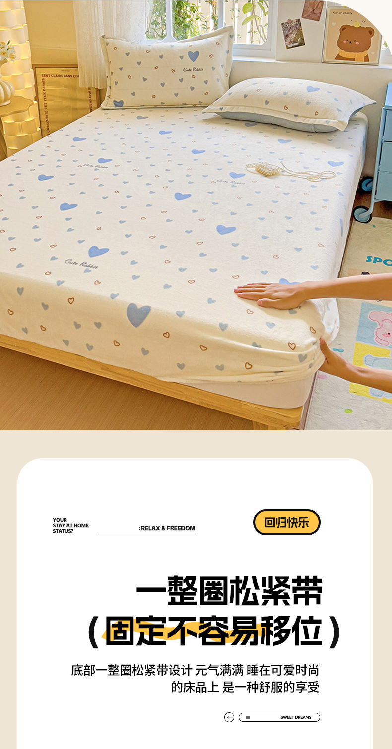 卡普二店 2024新款牛奶绒印花单床笠 满心欢喜