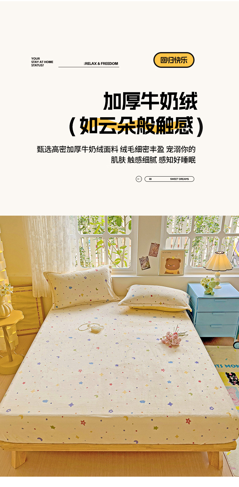 卡普二店 2024新款牛奶绒印花单床笠 童话星空