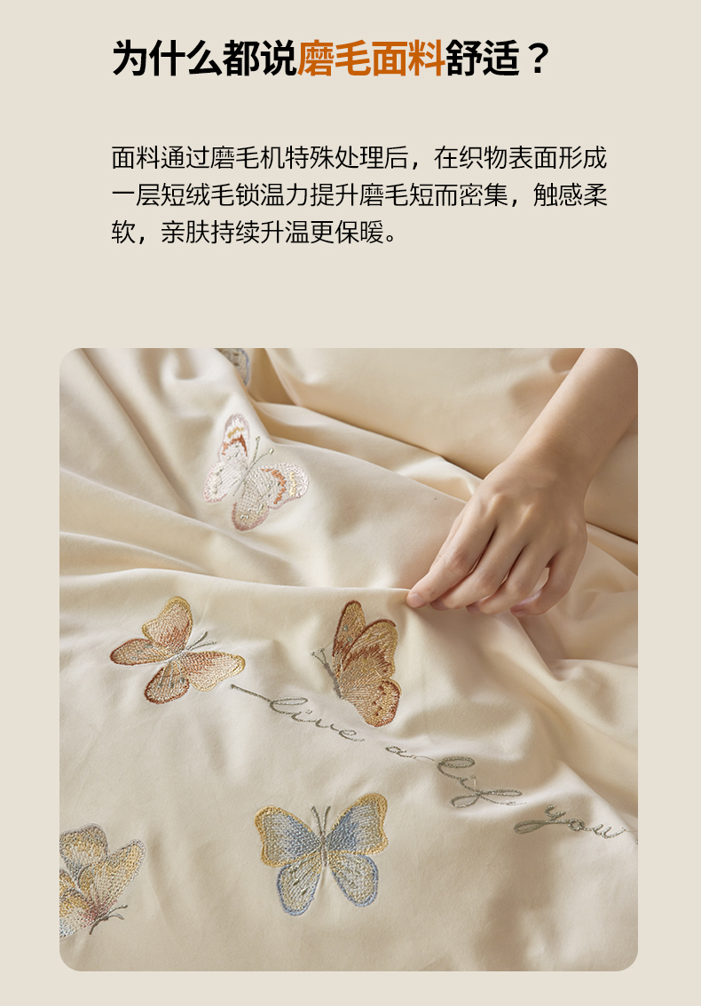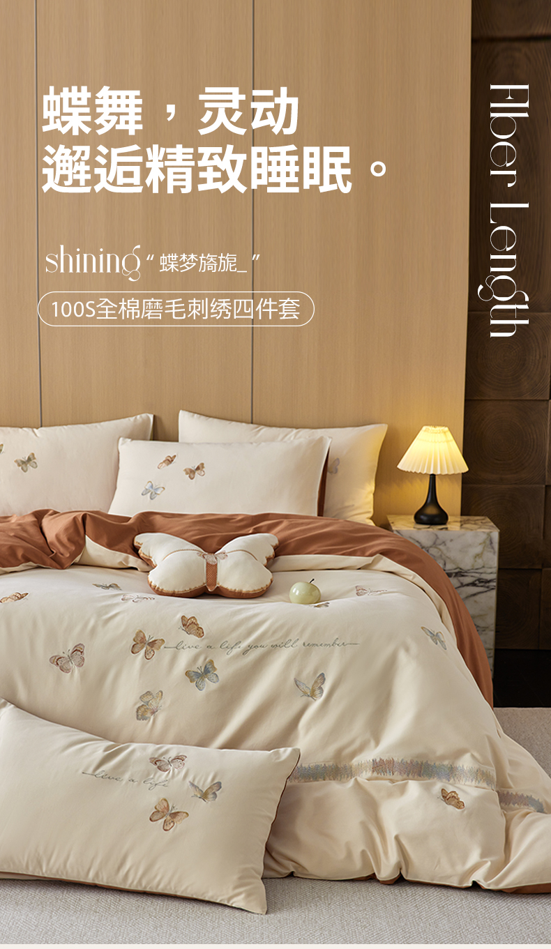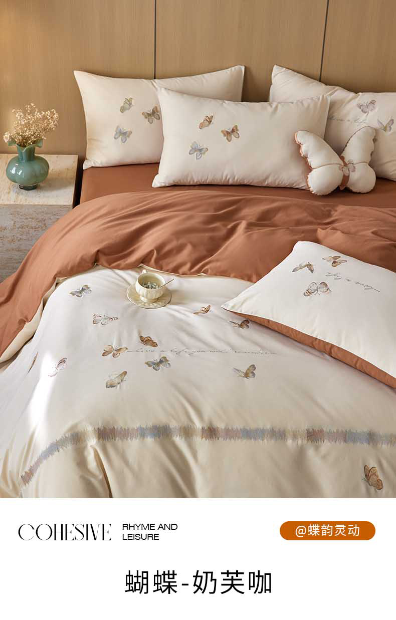 当前位置: 91家纺网 > 商品网购 > 床品套件 > 四件套 > 全棉普通四件套 > 2024新款60s全棉磨毛蝴蝶绣花四件套 蝴蝶-奶芙咖