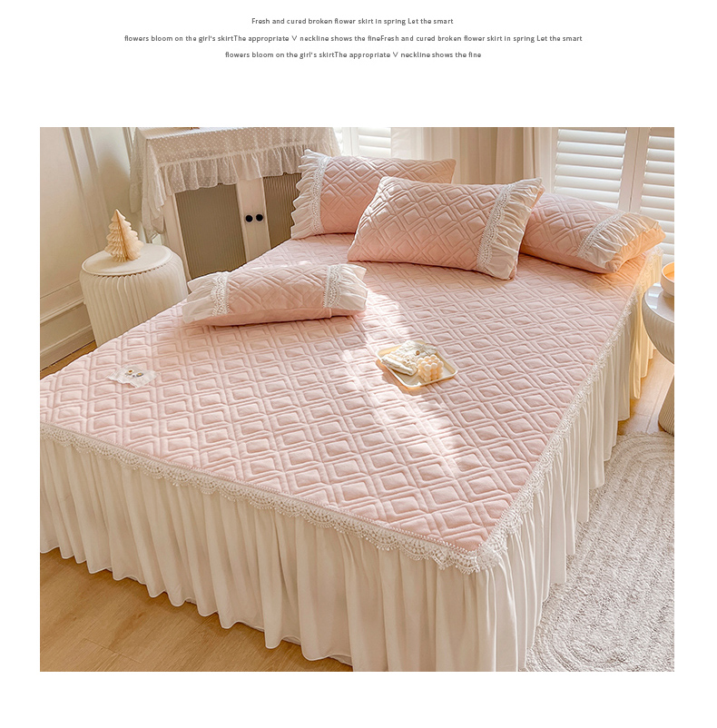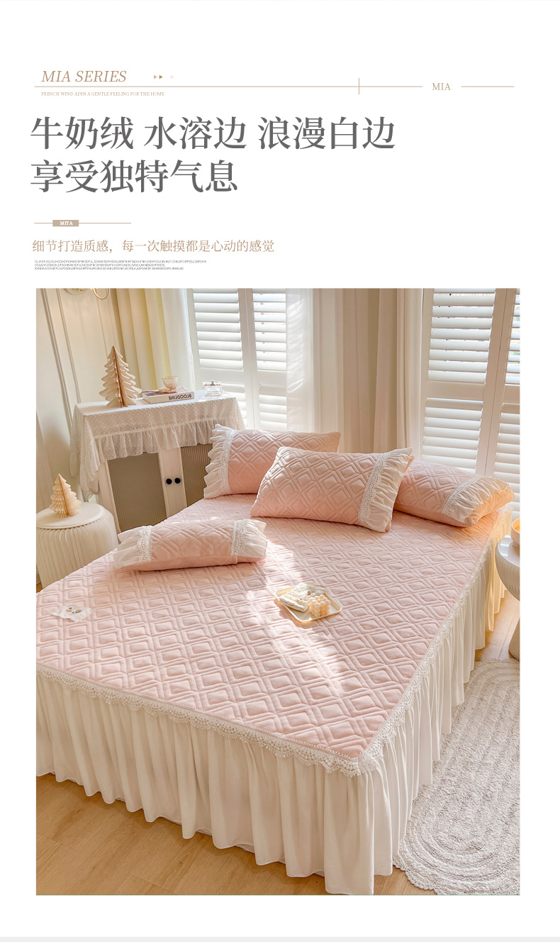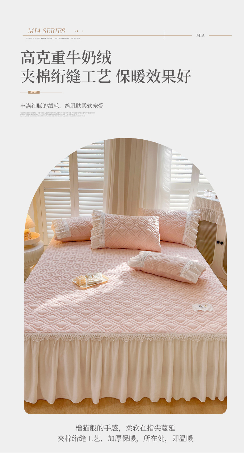 商品名称:乐朵家居 2024新款夹棉牛奶绒床裙-米娅 米娅-粉玉