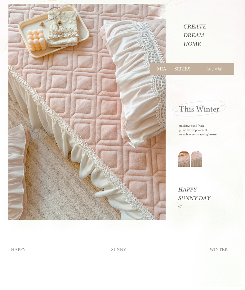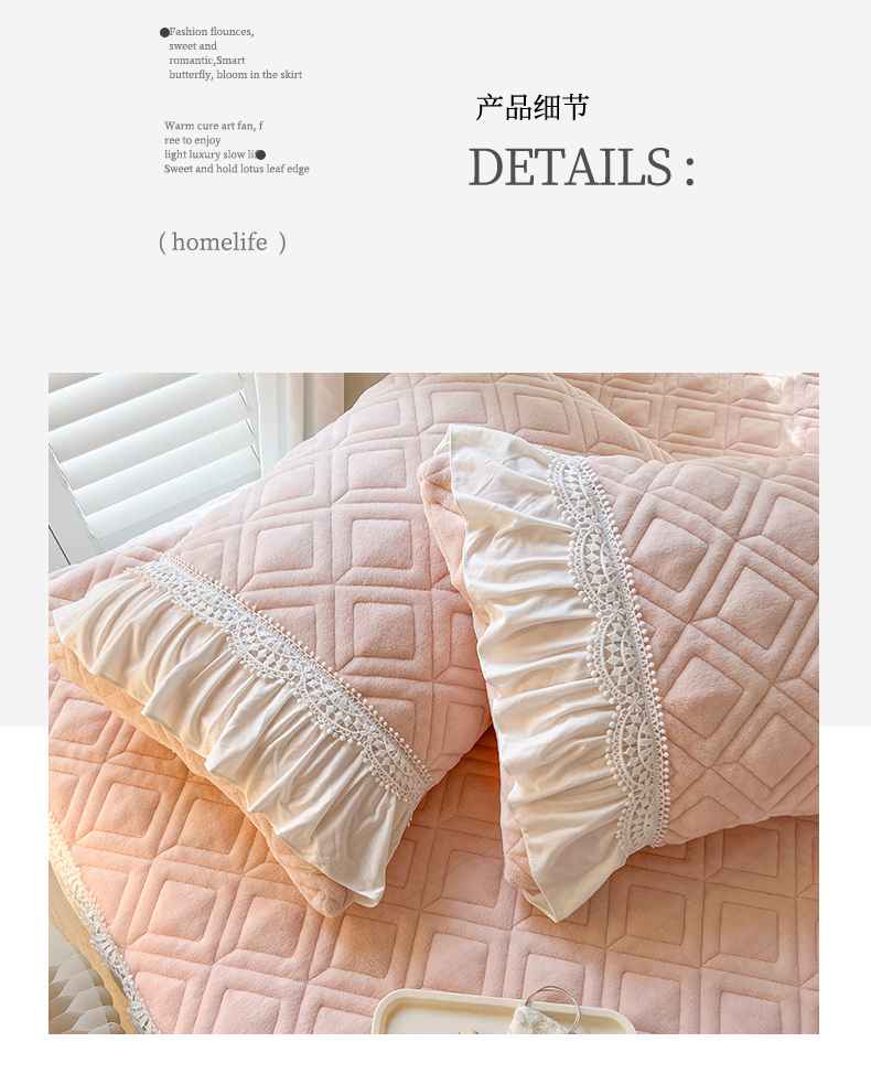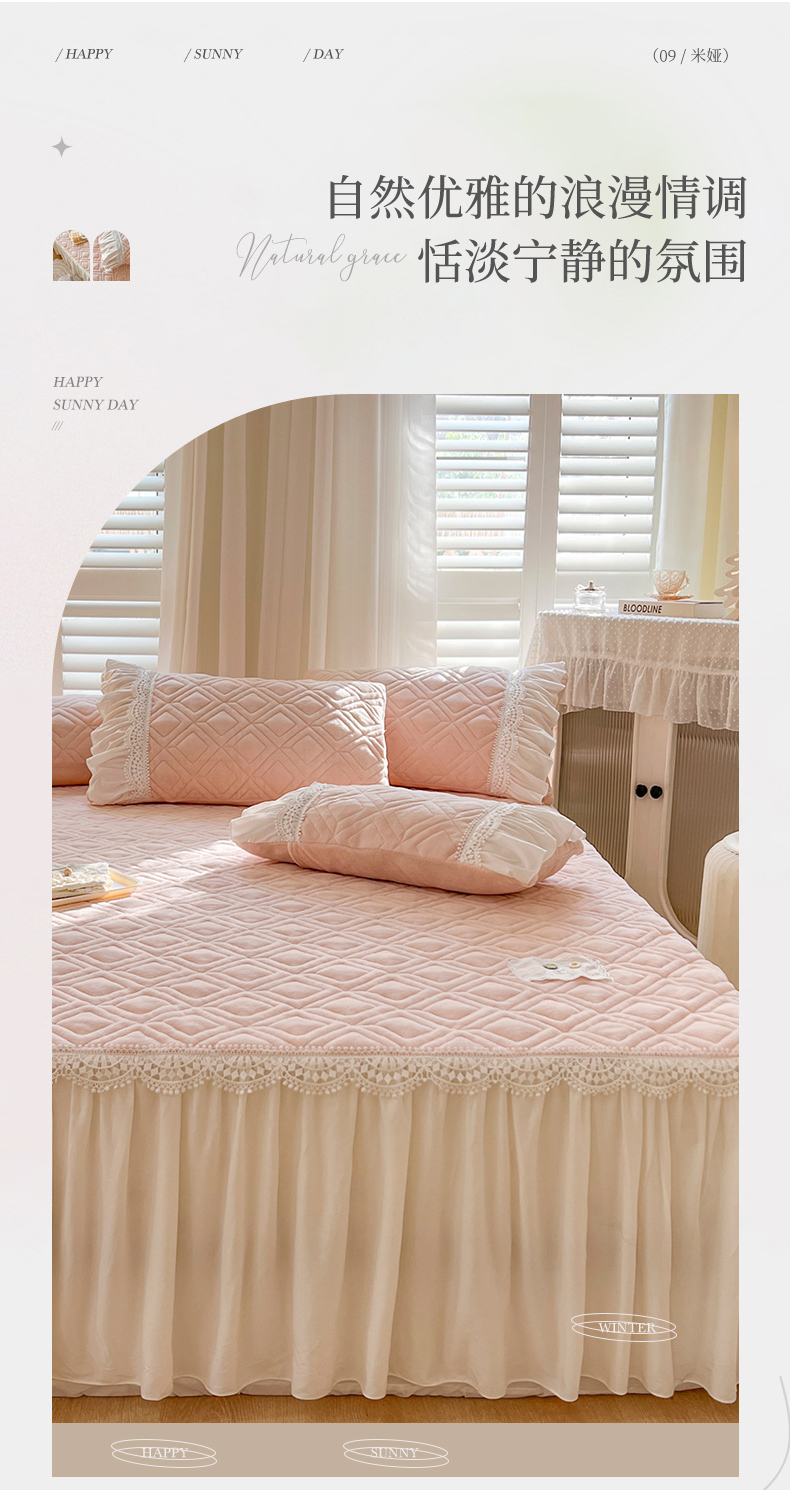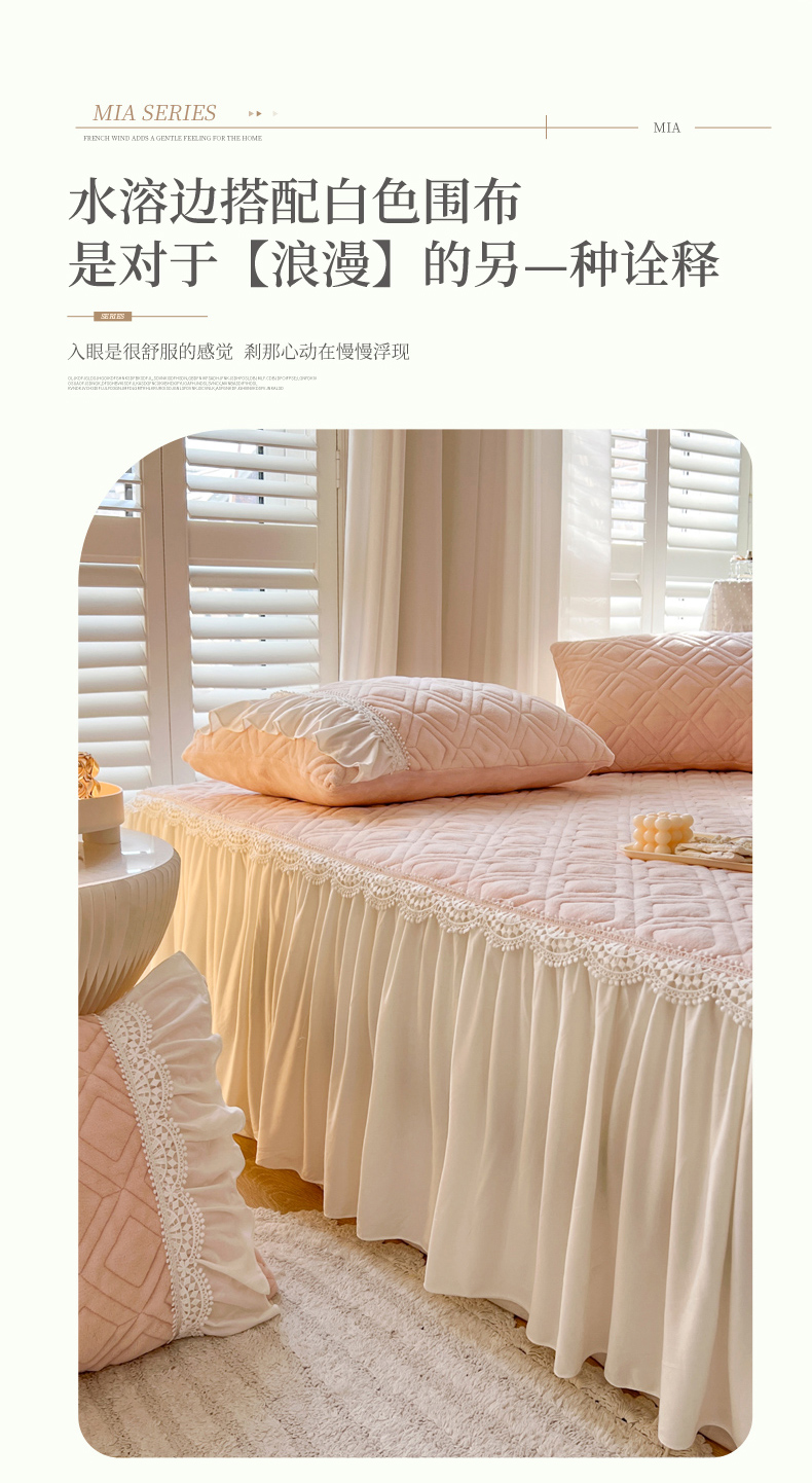 商品名称:乐朵家居 2024新款夹棉牛奶绒床裙-米娅 米娅-粉玉