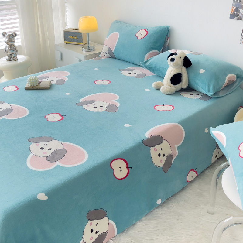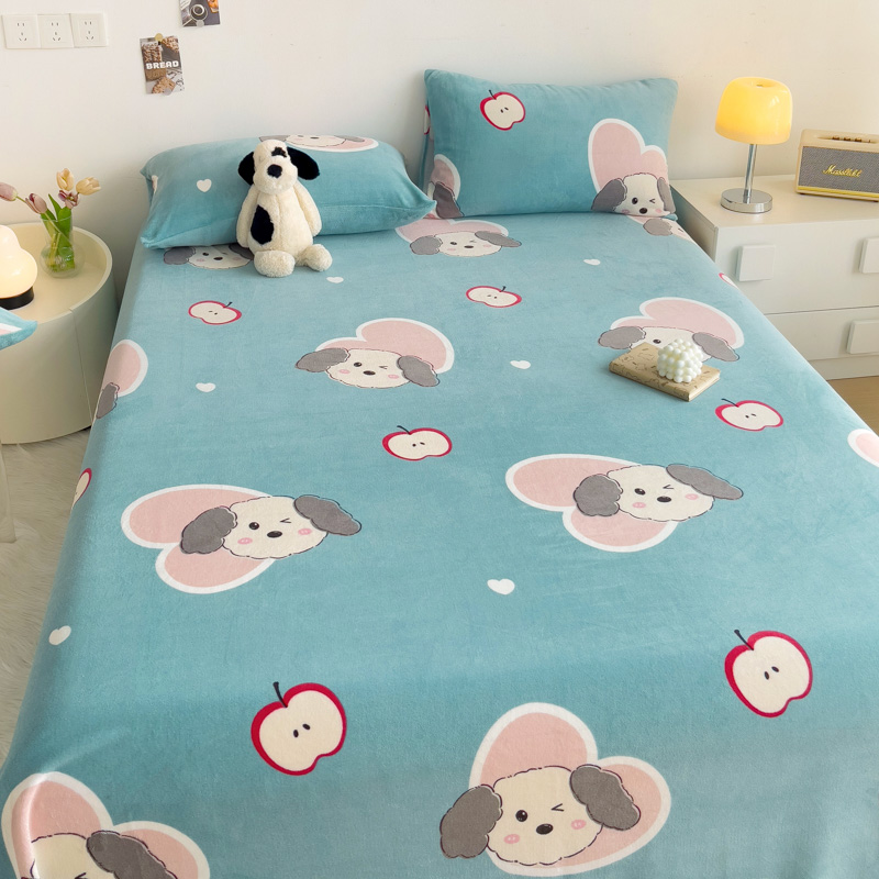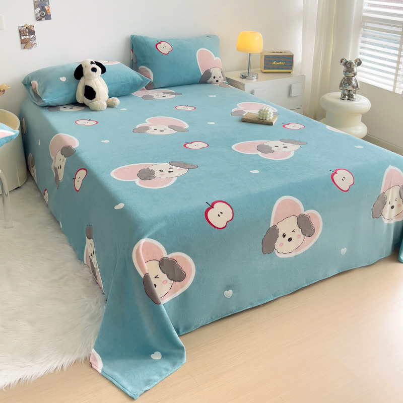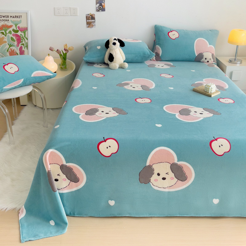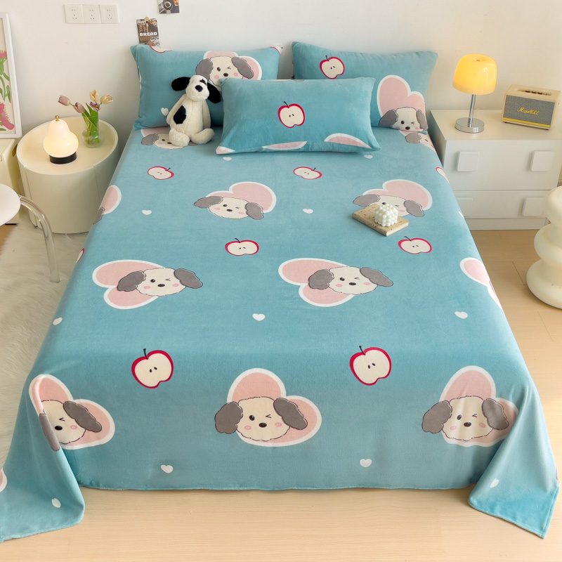 艾橙家纺 2024新款A类加厚牛奶绒印花床单 呆萌狗