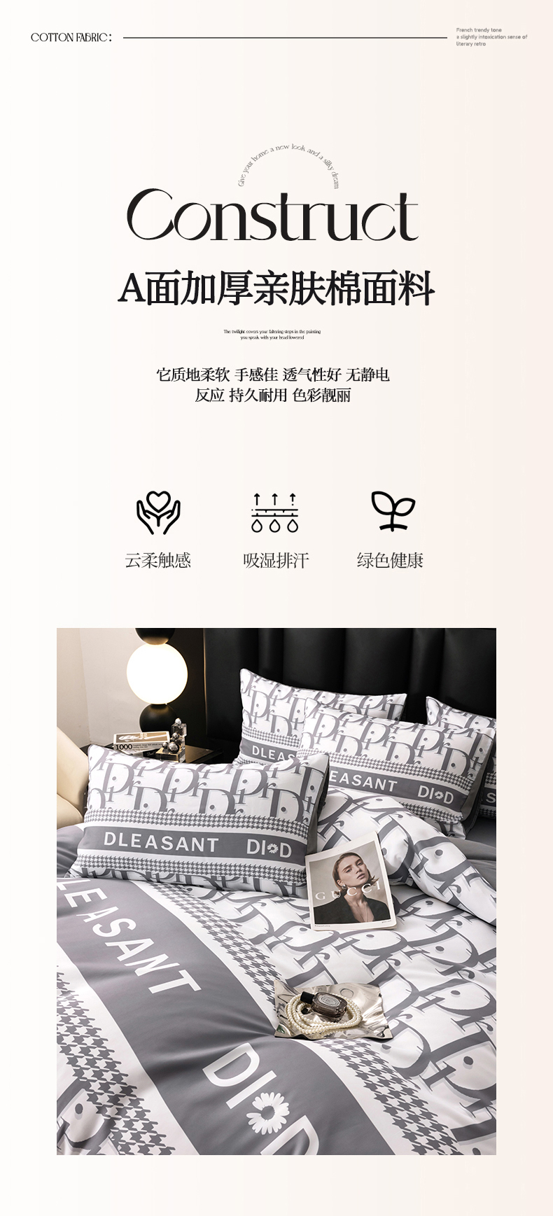 (总)色鬼布艺高端家居主号 2025新款轻奢亲肤纯棉数码印花网红热款四件套,豹纹香,白金V,白香花,大H,黑白迪,黑白V,灰迪,咖古,克莱因,慕斯小姐,山茶花,星空
