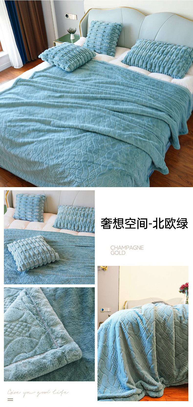 商品名称:尚品绵羊毛毯 2025新款轻奢高档仿皮草婚庆盖毯双层加厚毛毯-奢想空间 奢想空间-北欧绿