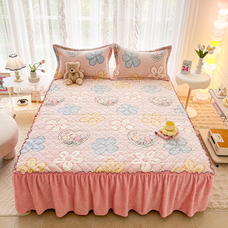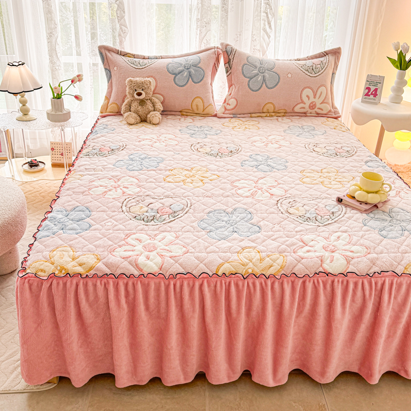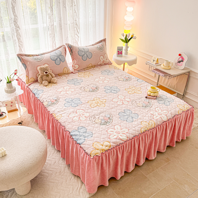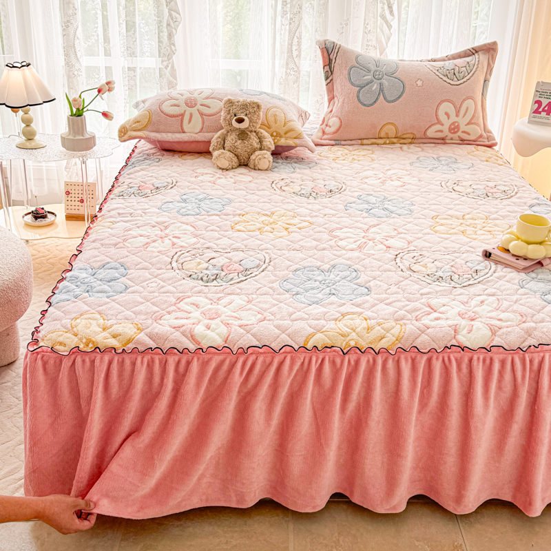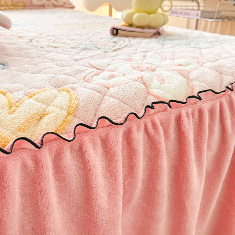 恋佳居 2025新款雪花绒夹棉绗缝床裙 花海
