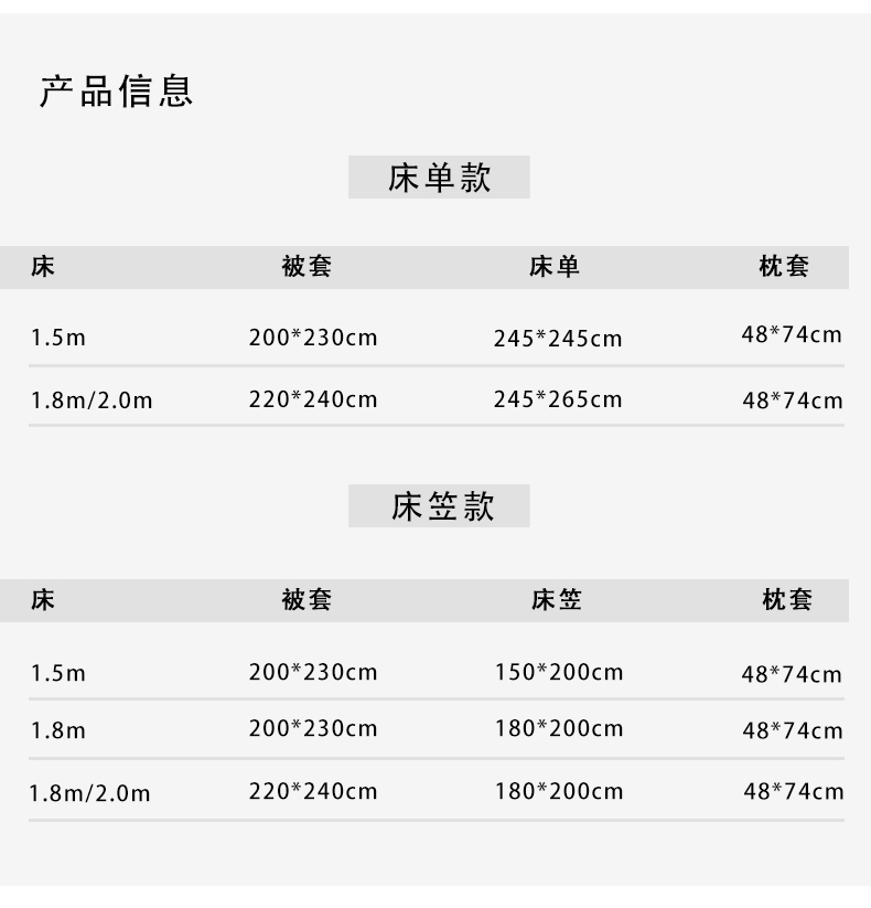1.8m被套加大床笠款四件套 | ¥230.00 |