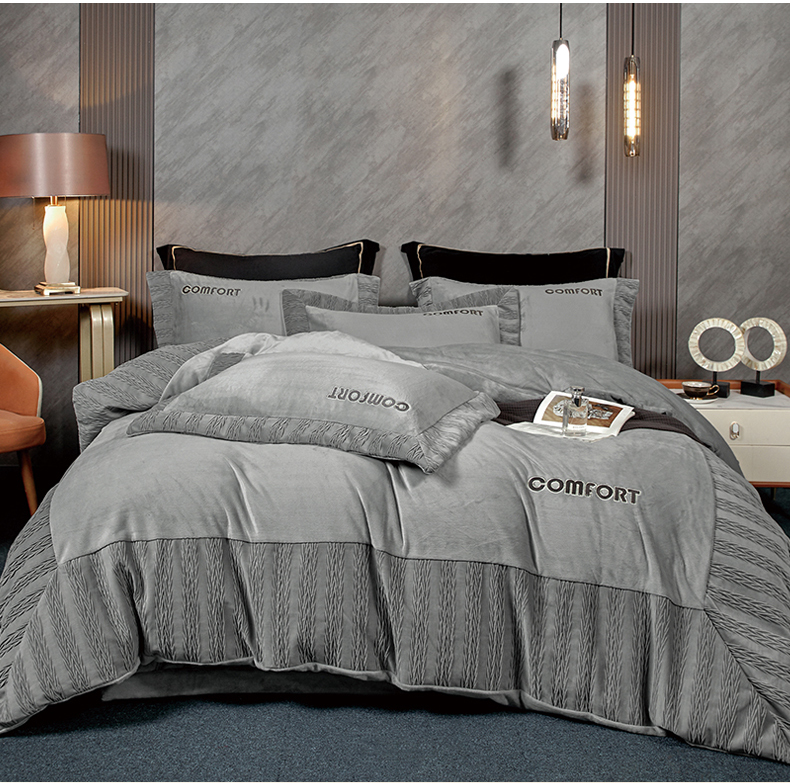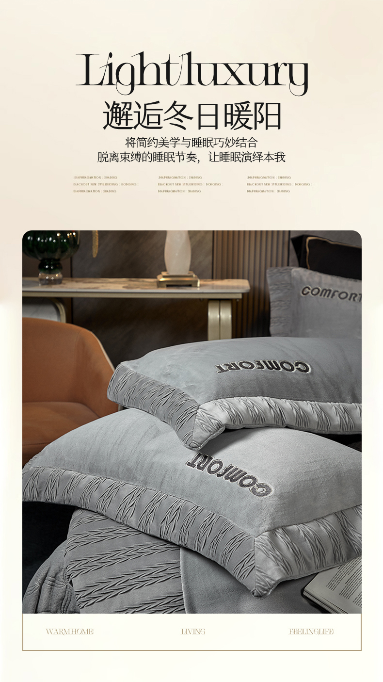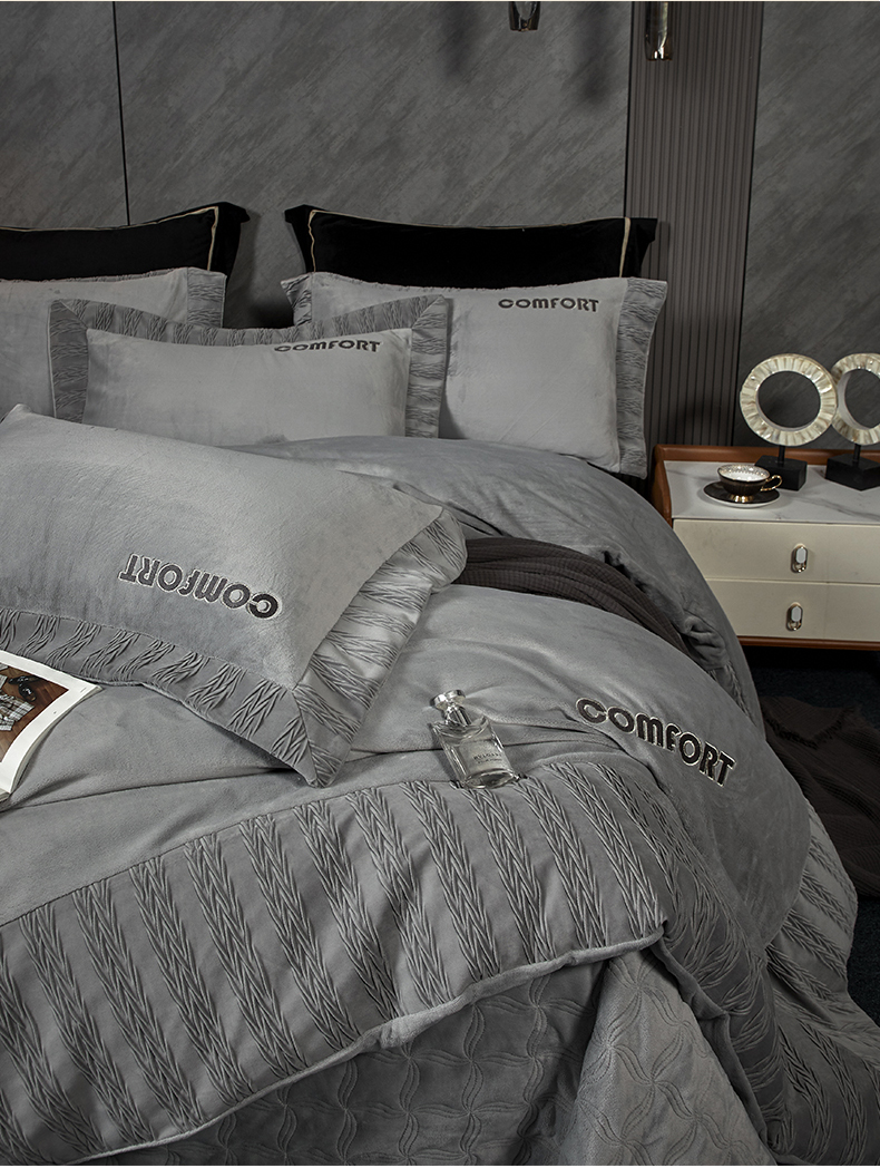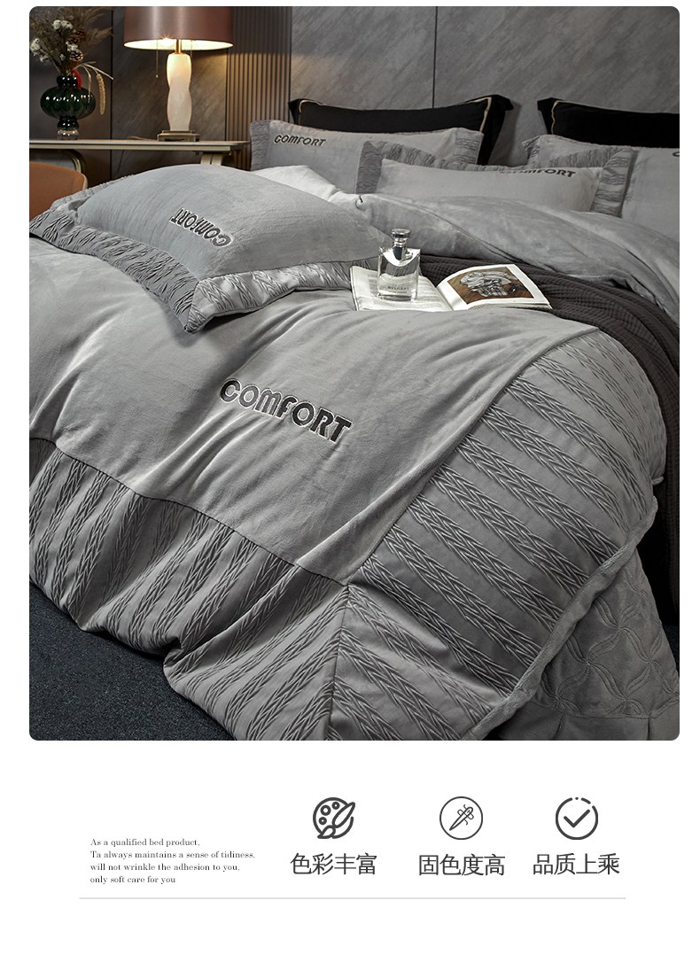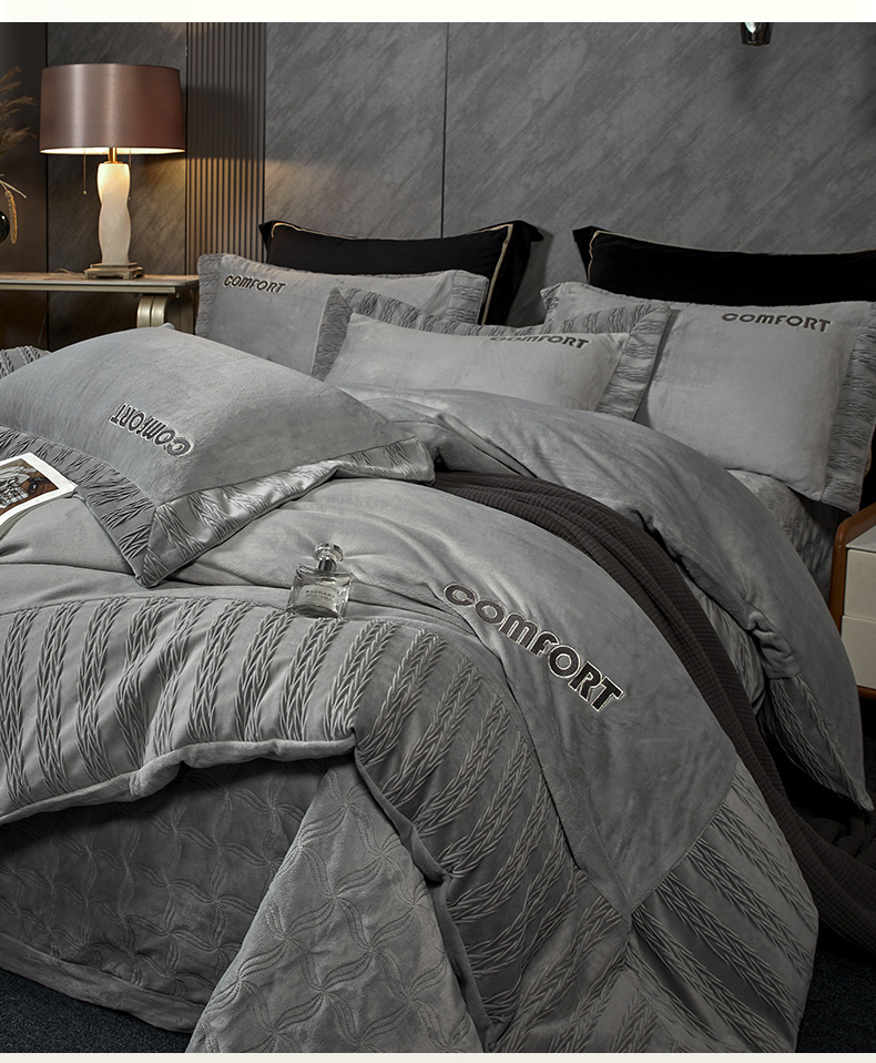 商品名称:2024新款高克重牛奶绒刺绣四件套-巴黎印象 巴黎印象-阴天灰